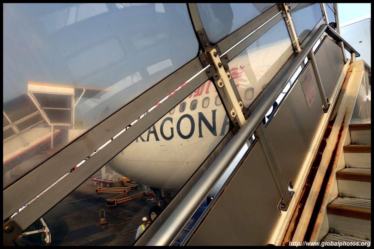 Gate 521 was a bus gate and the entire bus gate area was busy with many of the airline's flights departing out of there. I suppose HKIA has outgrown its capacity already and the new extension is quickly needed. A huge line snaked out of Economy and I walked up to the Marco Polo line for quicker access to the bus. As expected, bus departures are not the best experience although it didn't take too long to reach the plane.
