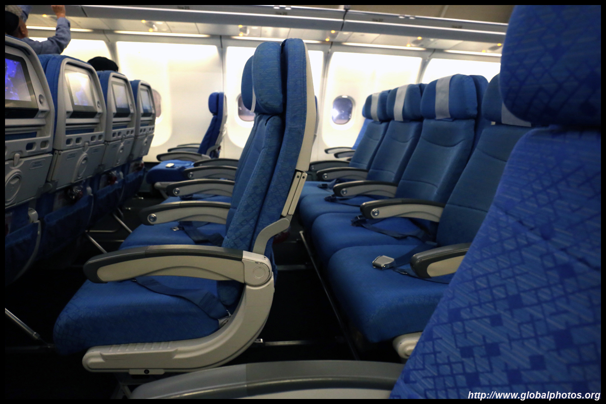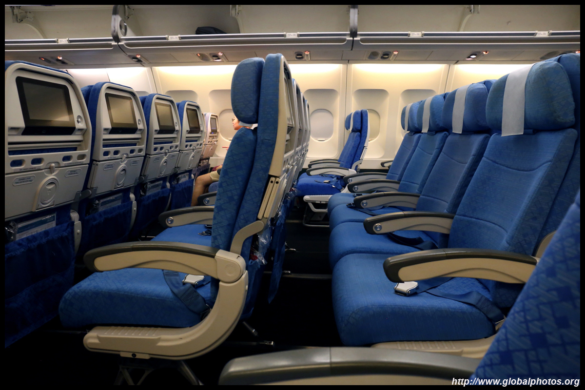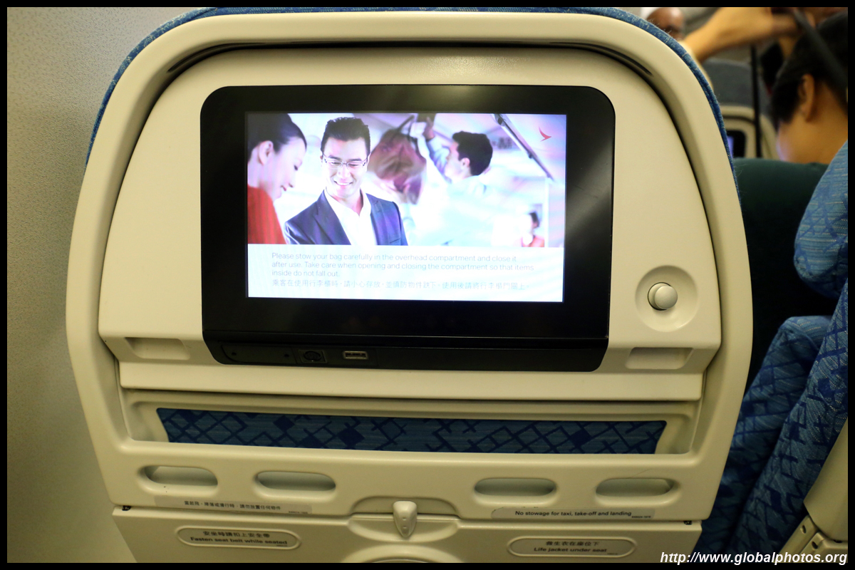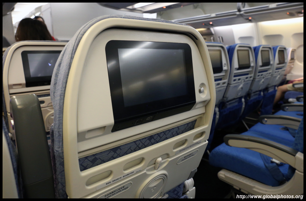 I believe I was the 2nd bus out and there were many empty seats when I boarded. The interior looked dated although the PTV was a touch-screen. The plane filled up some more and the widebody had a very decent loading for the short hour flight.