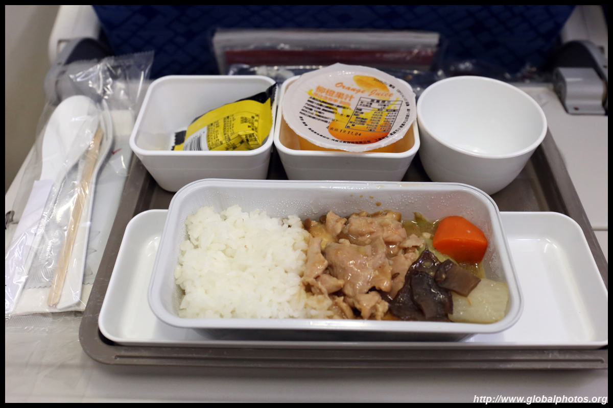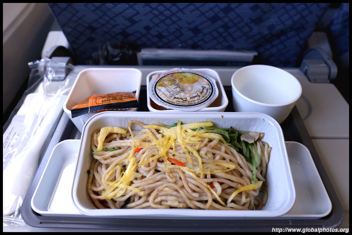 Cathay's catering has improved on these short flights in recent years, offering a hot meal and not just a sandwich. Since it was breakfast time, we all received a chicken noodle, although the pieces of chicken were a bit hard to find.