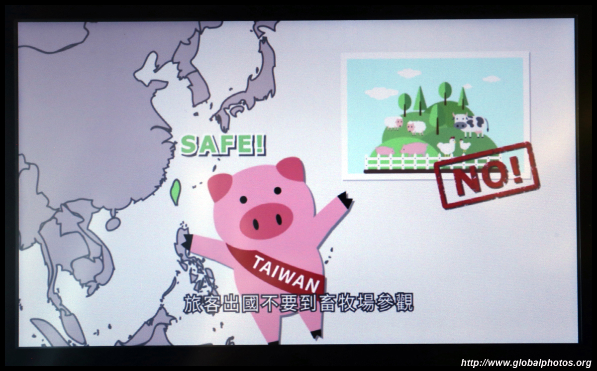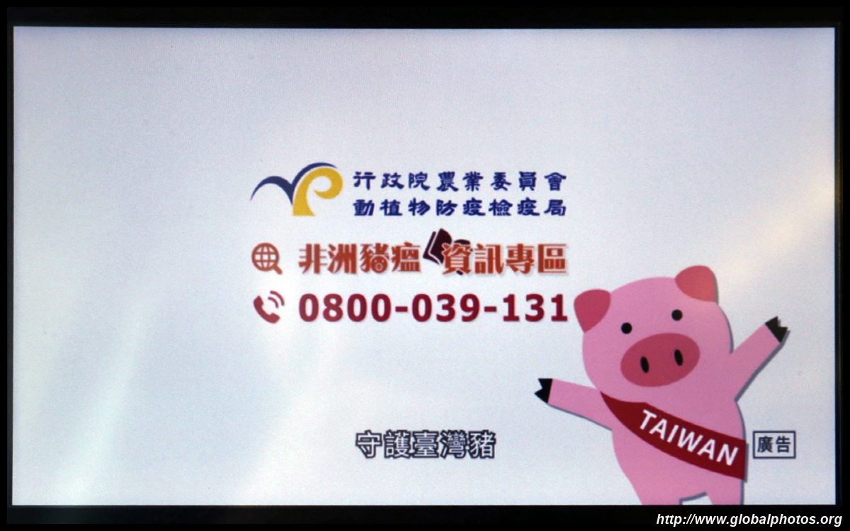 The flight was otherwise uneventful and the weather forecast for Kaohsiung was hazy and hot. As we descended, a warning video on swine flu played on the screens. Don't bring remnants of your meal into Taiwan.