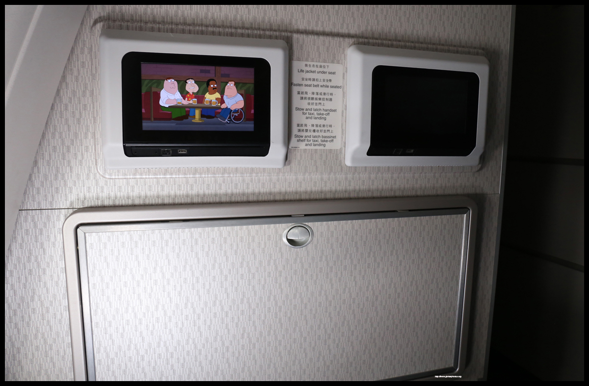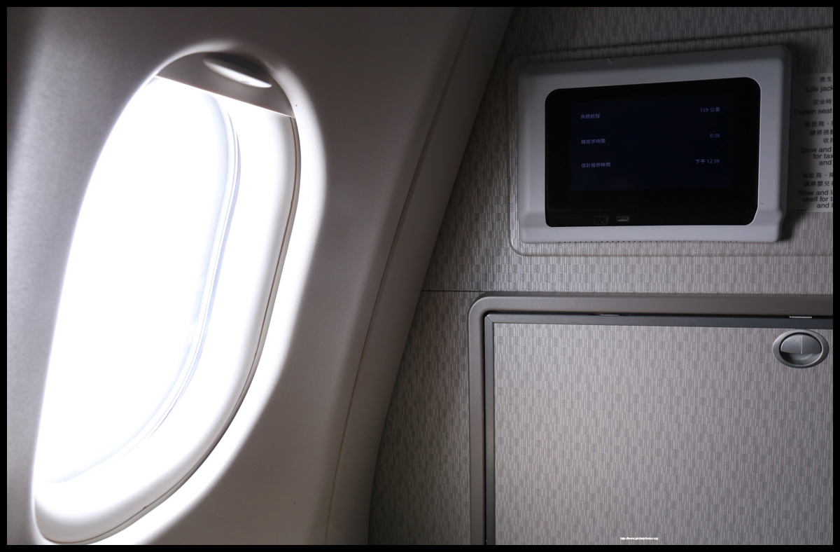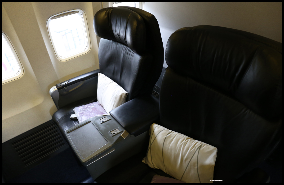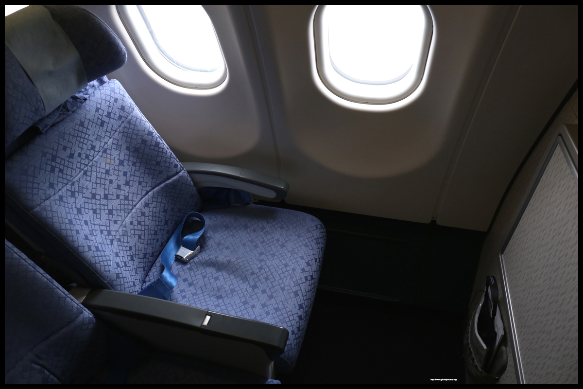 With little to see outside, I turned my attention away from the window, comfortable in my cattle class front row seat. However, it didn't offer that much extra legroom, as a wall gets in the way of my feet extending into the Business Class seat ahead of me. I liked having 2 windows at my disposal though.