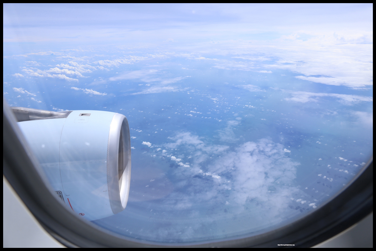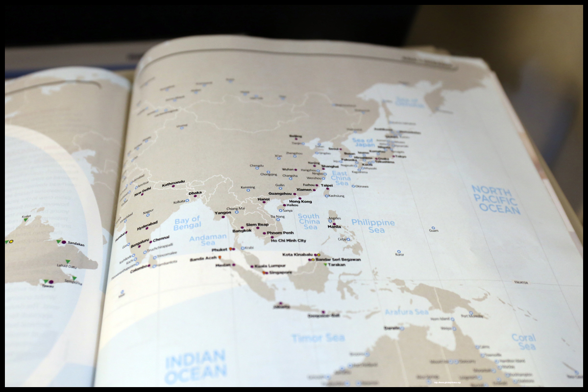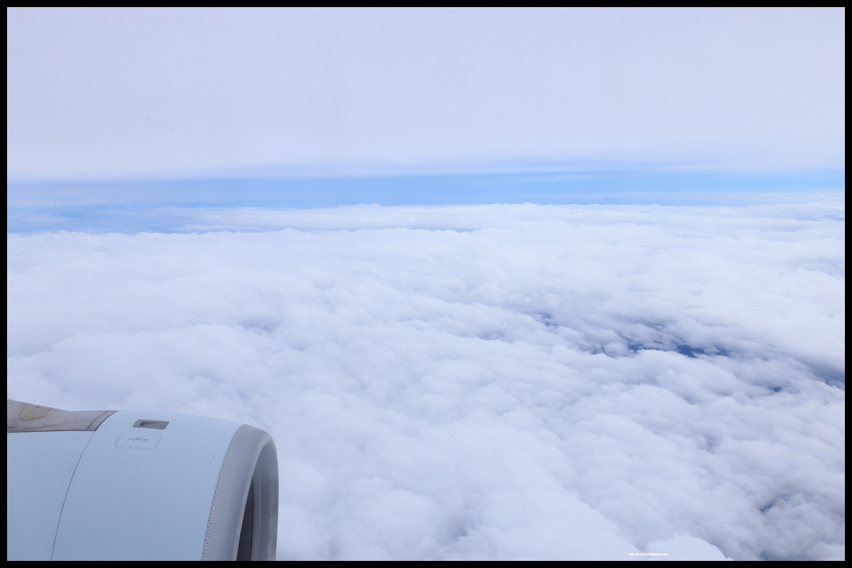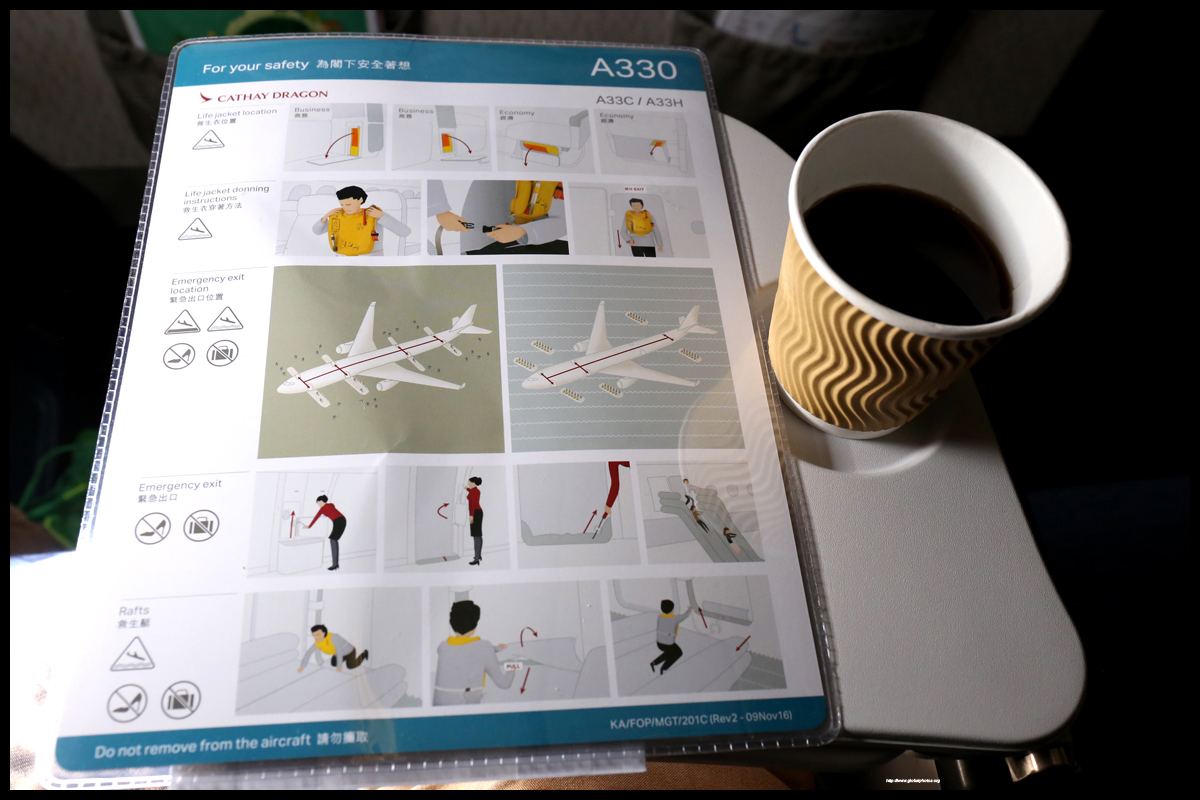 With little to see outside, I turned my attention away from the window, comfortable in my cattle class front row seat. However, it didn't offer that much extra legroom, as a wall gets in the way of my feet extending into the Business Class seat ahead of me. I liked having 2 windows at my disposal though.