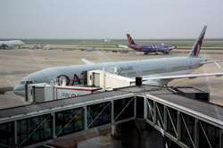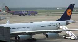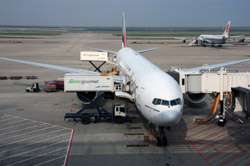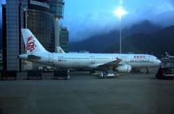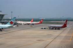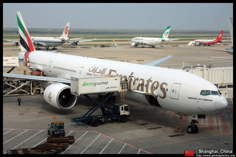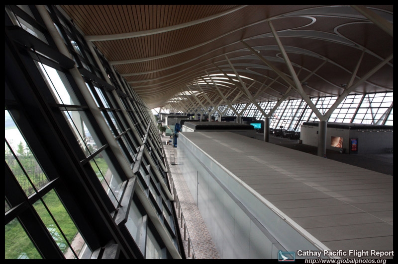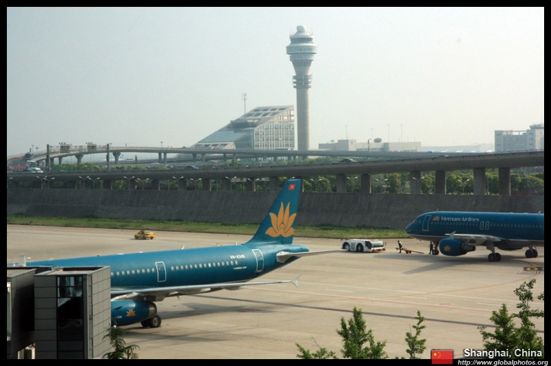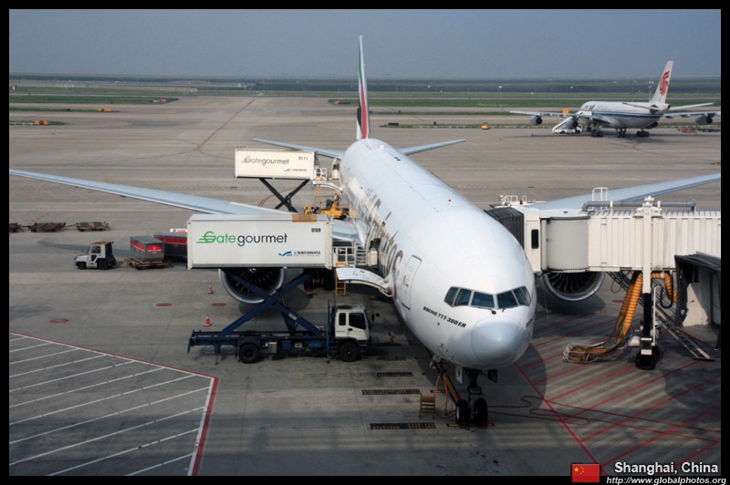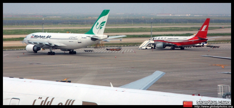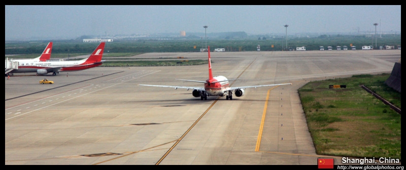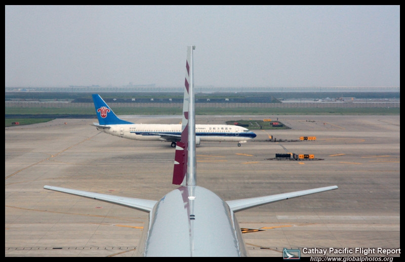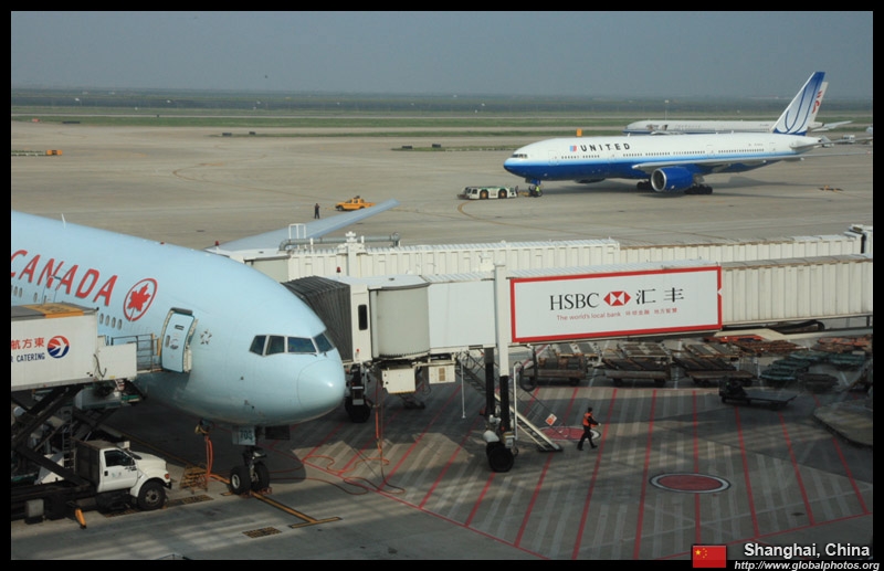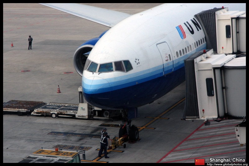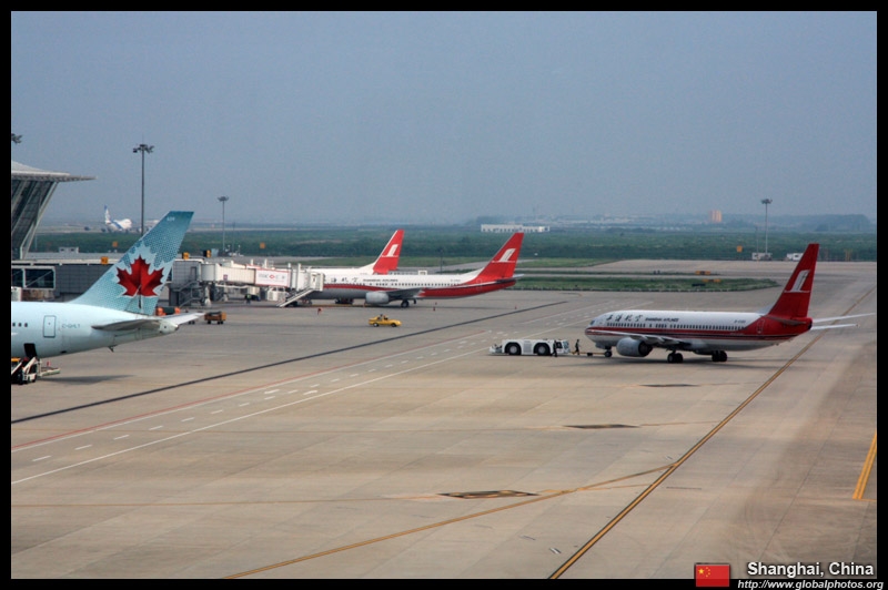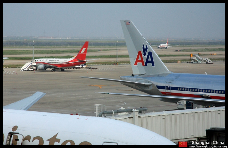 Pudong is a decent plane spotting airport, but since the windows slope outwards and there is an annoying safety bar in the way, I had to go underneath the bar to bend in an awkward way to get to the window surface. Otherwise, a bad glare would result.