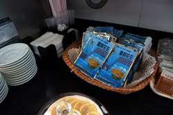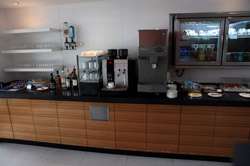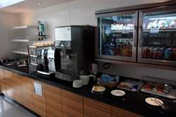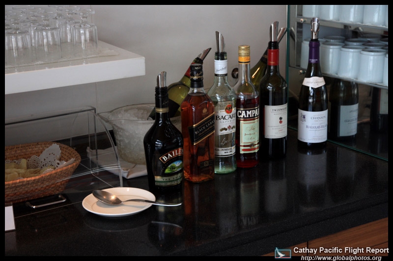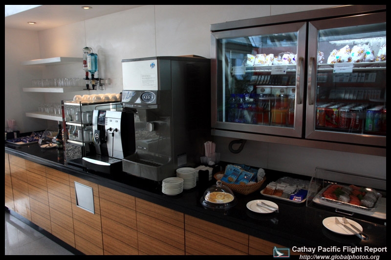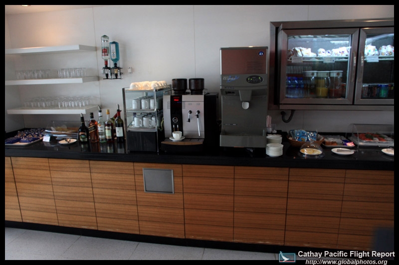 I was travelling in Business Class today, so I headed upstairs to the Cathay Pacific Lounge for a snack and to explore the lounge a bit. Just past the entrance, there was a self-serve bar with a huge magazine and newspaper rack. The selection was extensive.