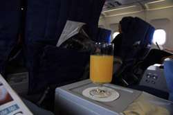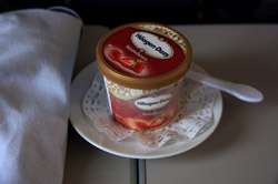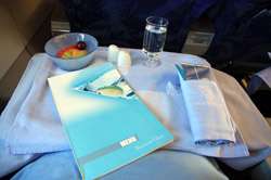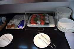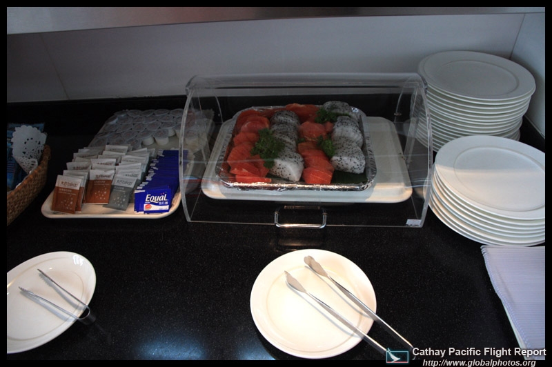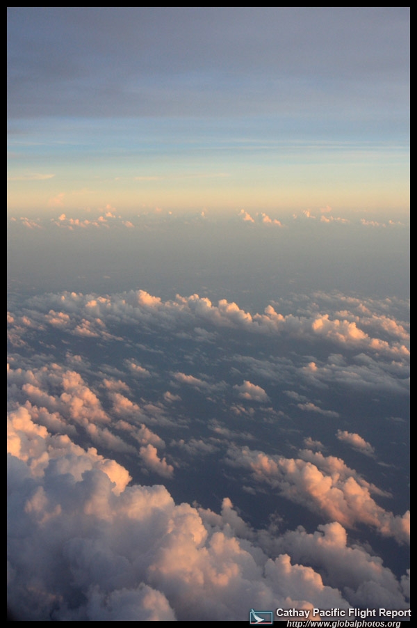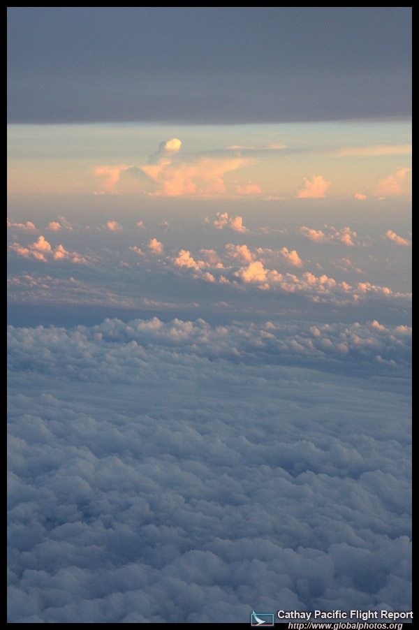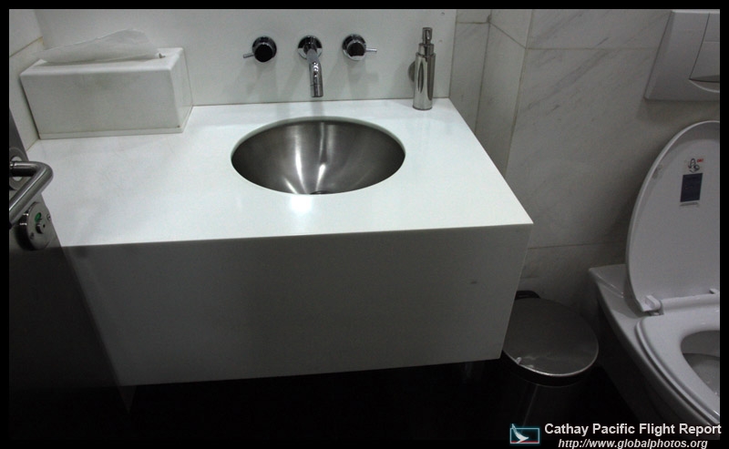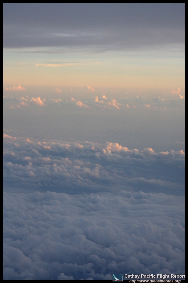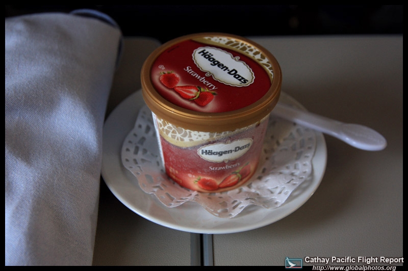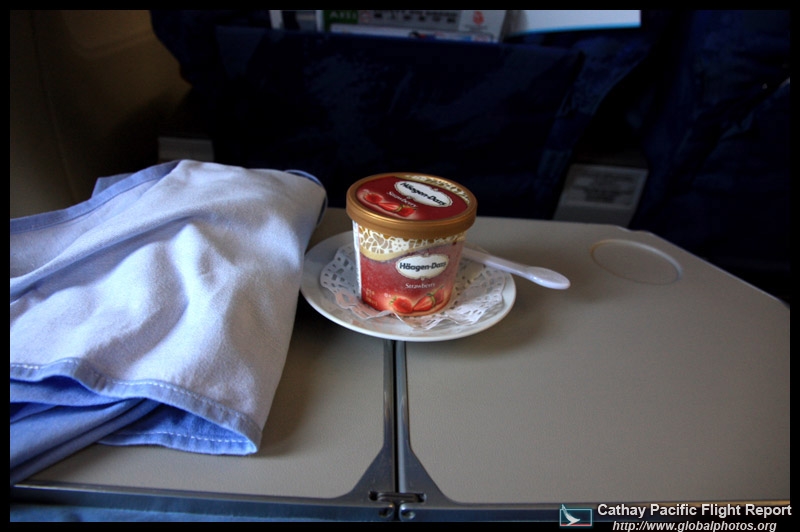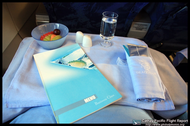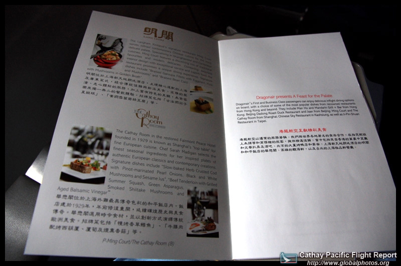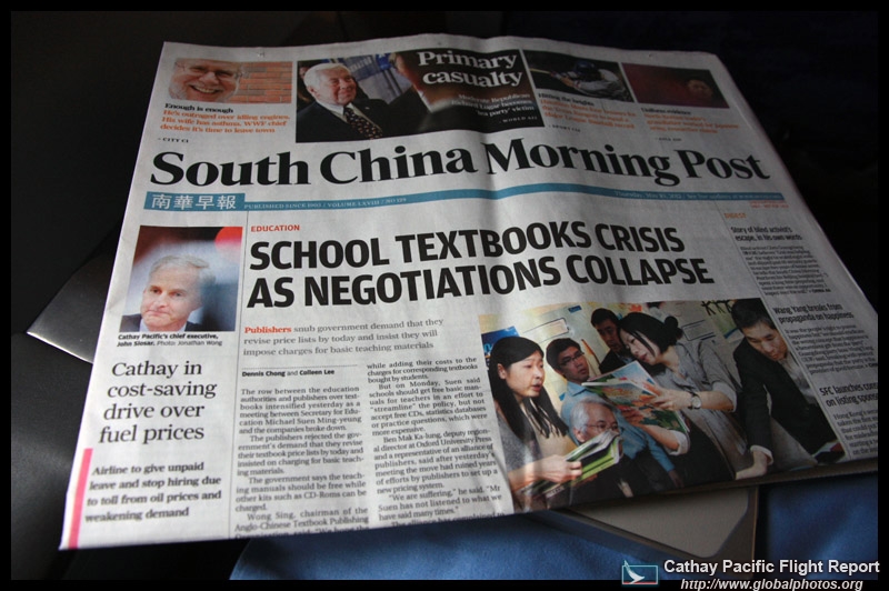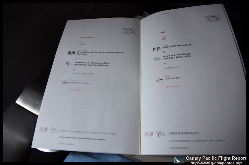 Business Class was full today. The seats are comfortable and wide, unlike Cathay's claustrophobic herringbone layout. The seats faced the front, which meant easy access to the window, but a little more troublesome to reach the aisle for the lavatory. The catering was not downsized though. The food tasted quite good and the portions were sufficient.
