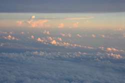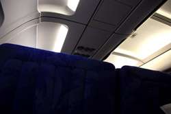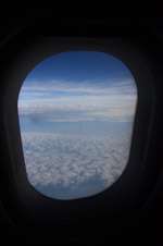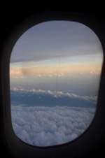 The lights dimmed and the window shades drawn down. This was a bit weird as it as a late afternoon flight.