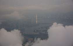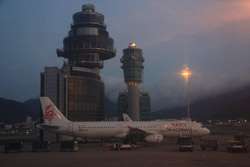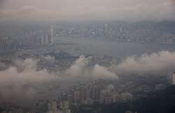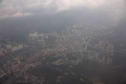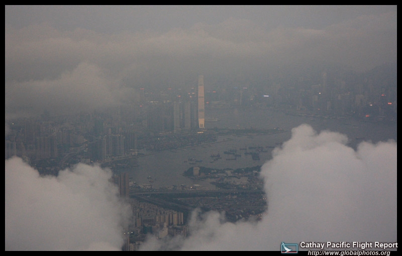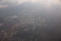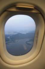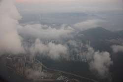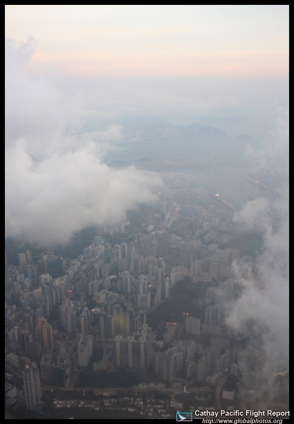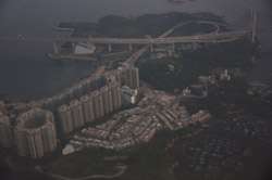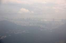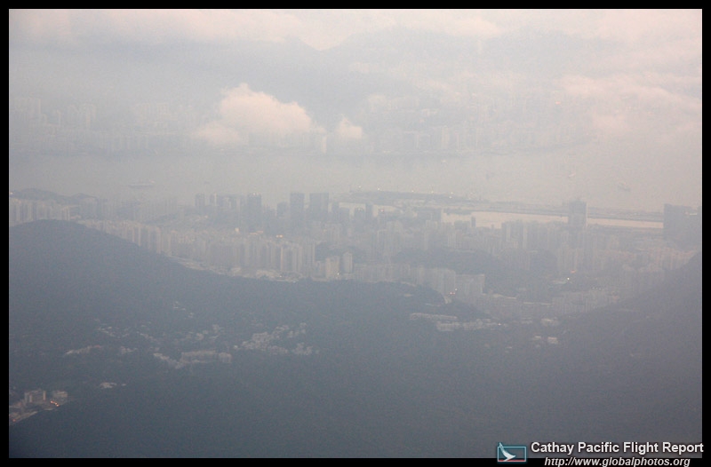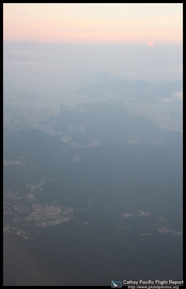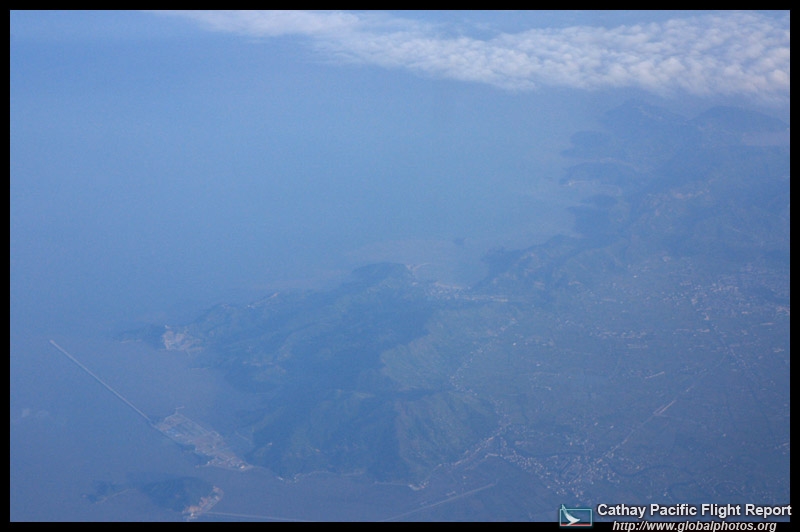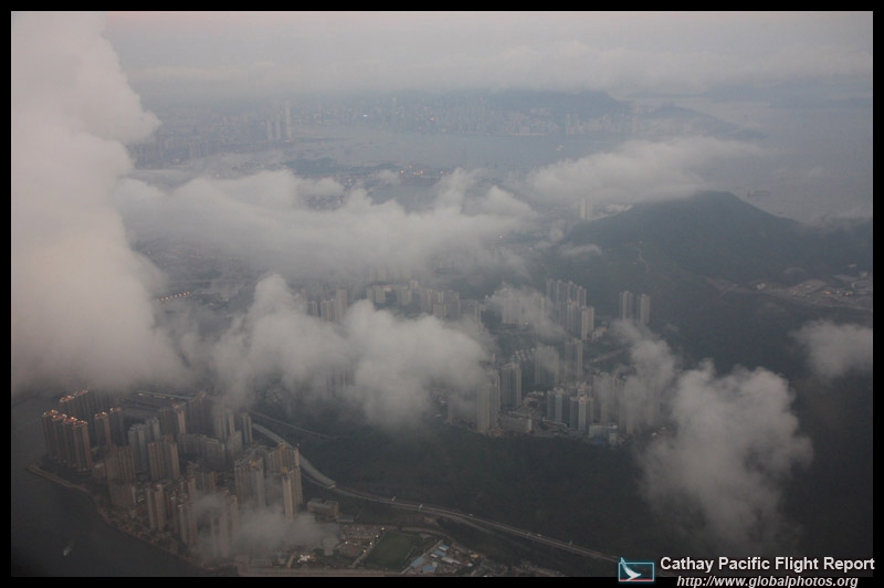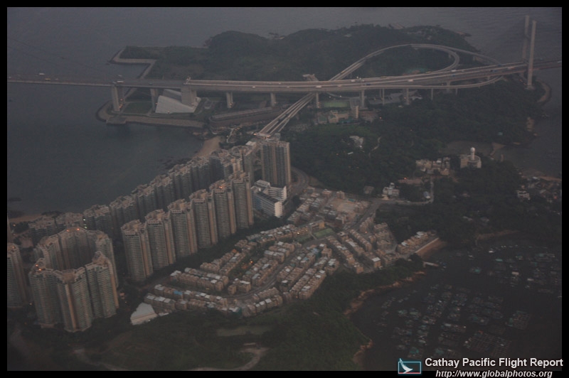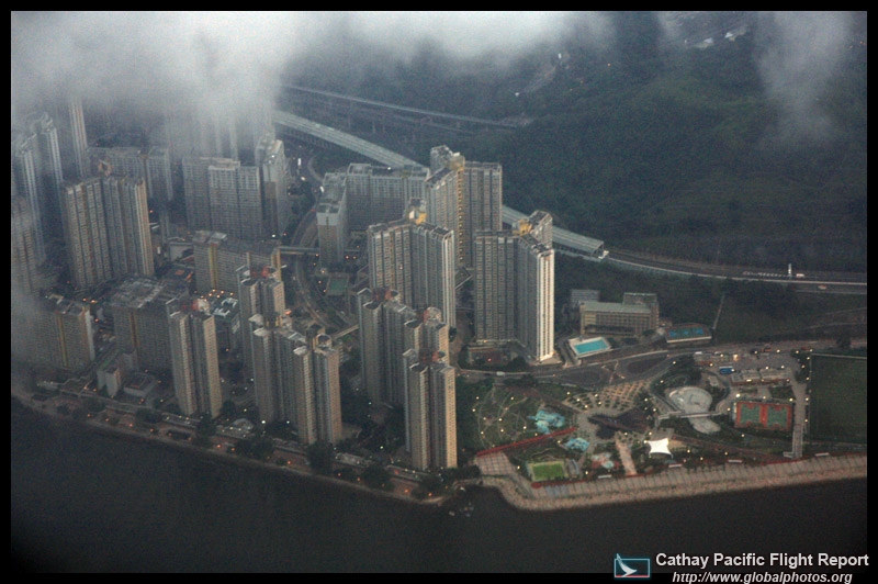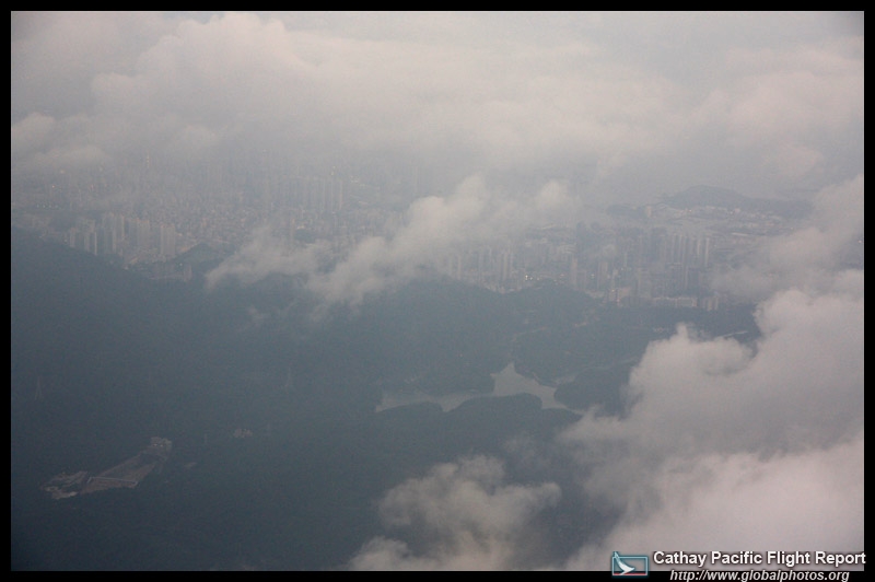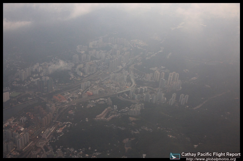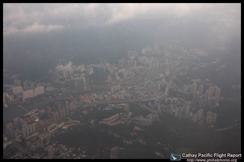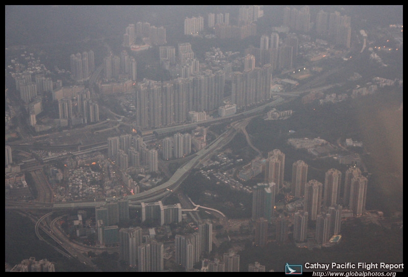 We approached the airport from the east, flying above the city along the way. Luckily I chose a left window seat. The suburb of Shatin soon came into view.