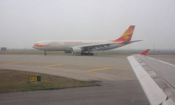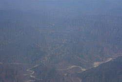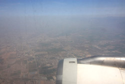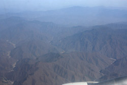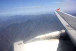 The plane was not equipped with any inflight entertainment whatsoever, so I looked out the window to pass the time. Too bad the window was dirty though. Soon, the mountains near Xian came into view.