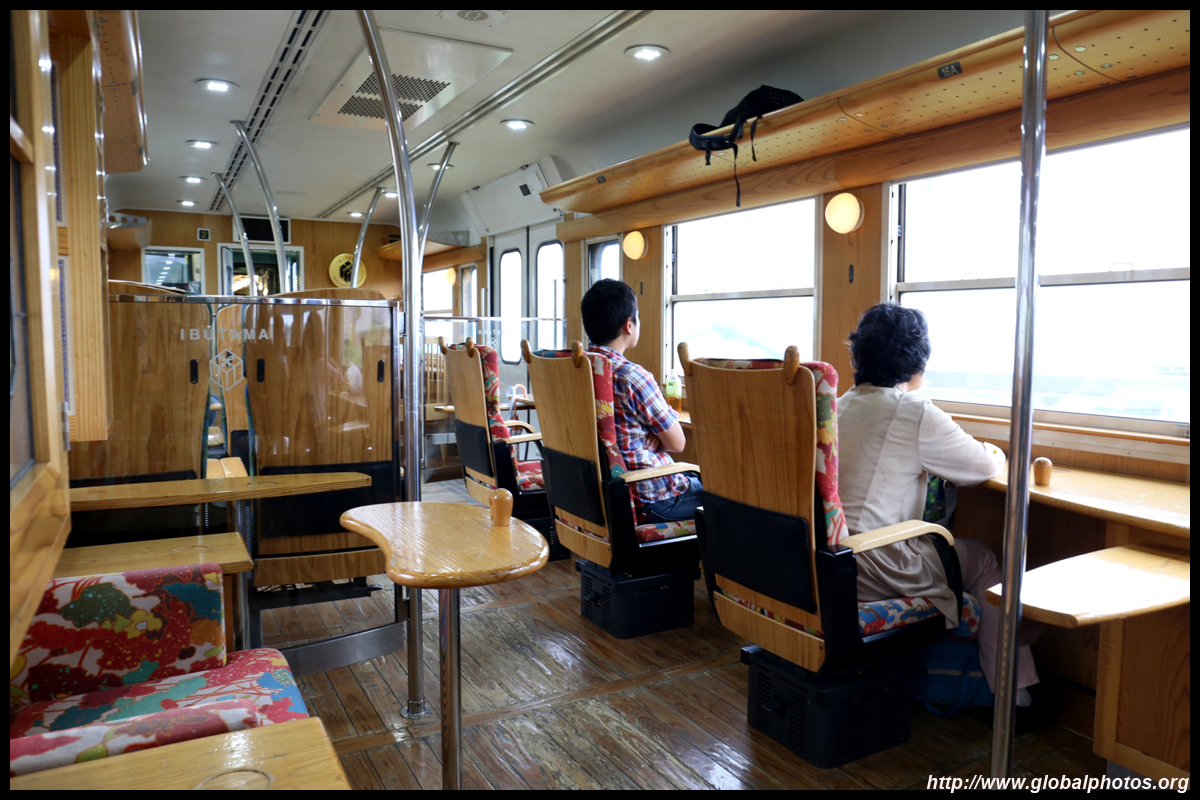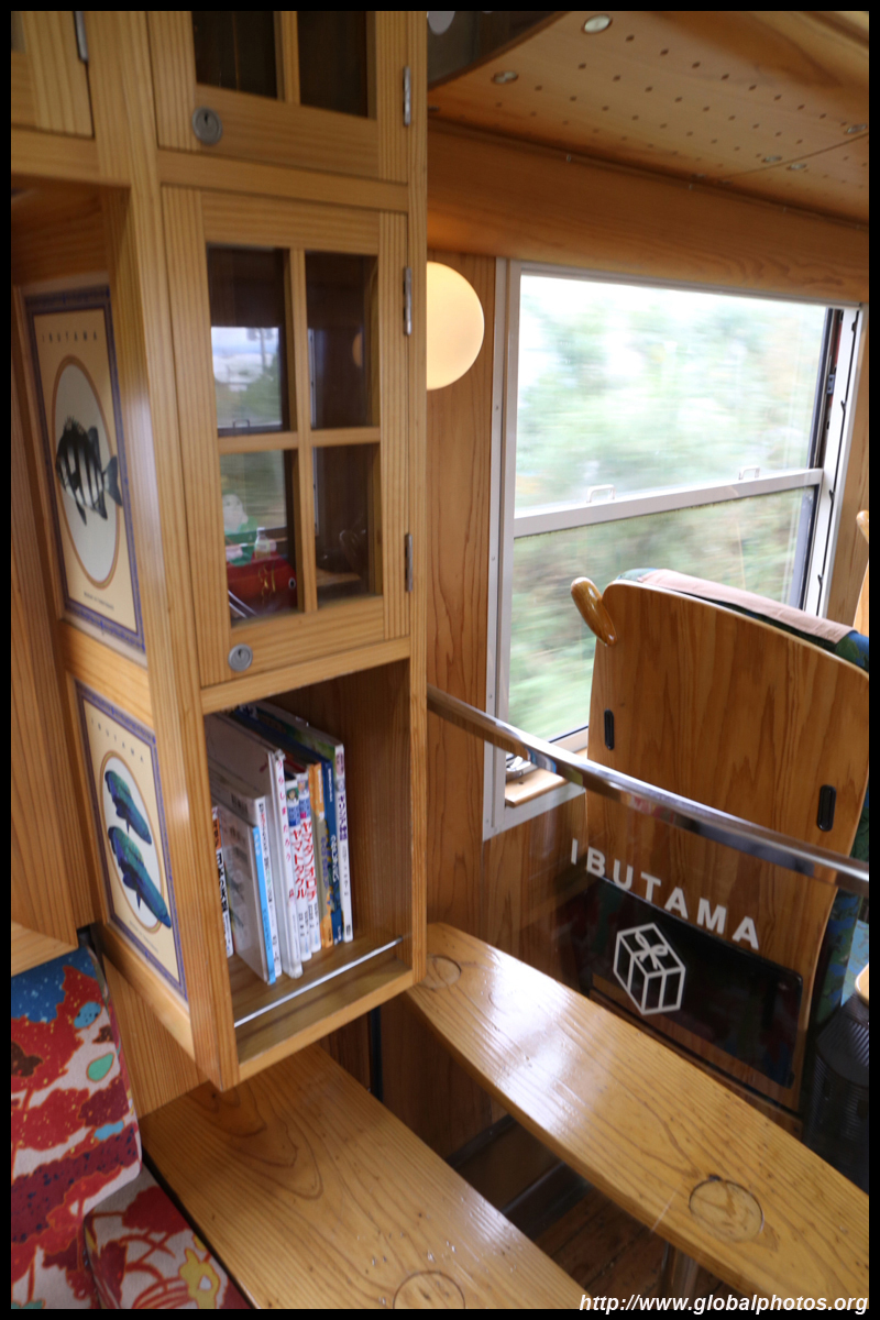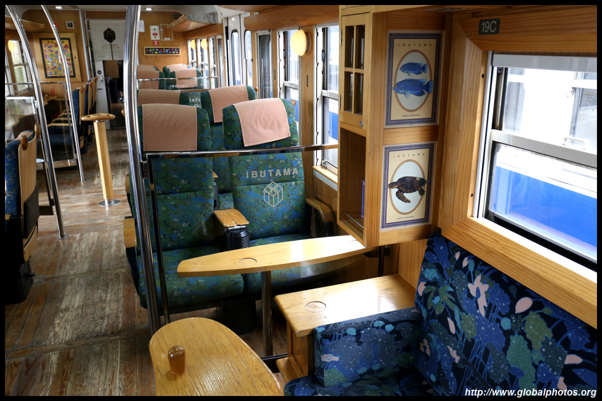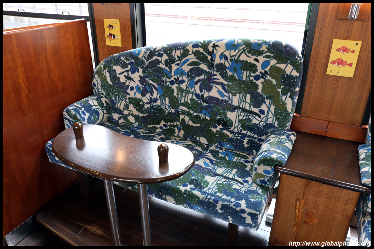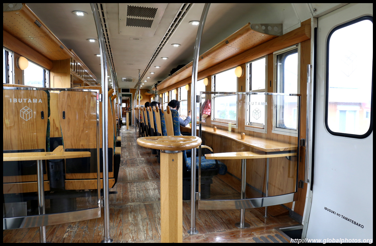 Perhaps the best part of the day was the train ride leaving town. The Limited Express Ibusuki no Tamatebako is comfortably-decorated with window-facing bar seats, cedar wood furnishings, sofas, and even a special section for kids.