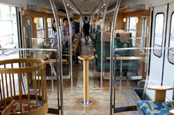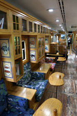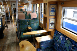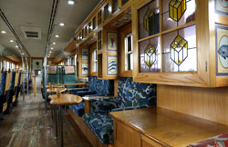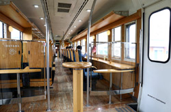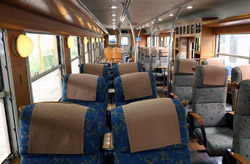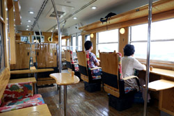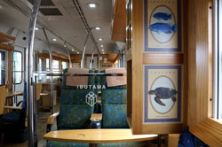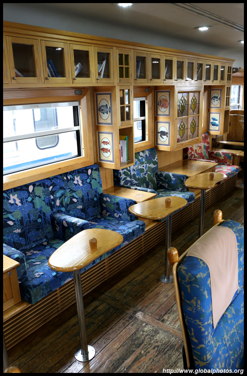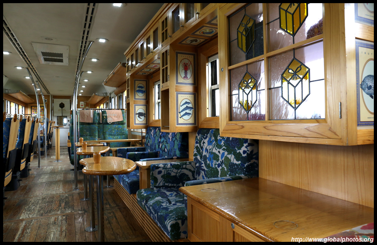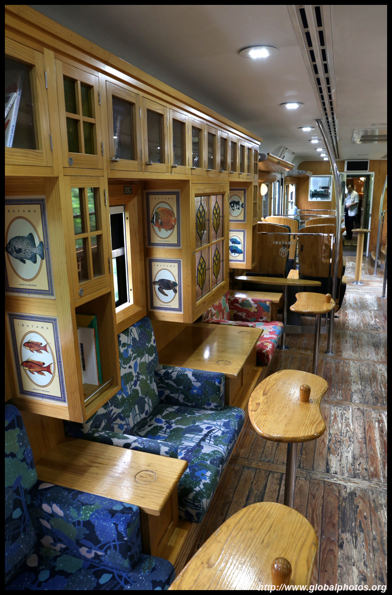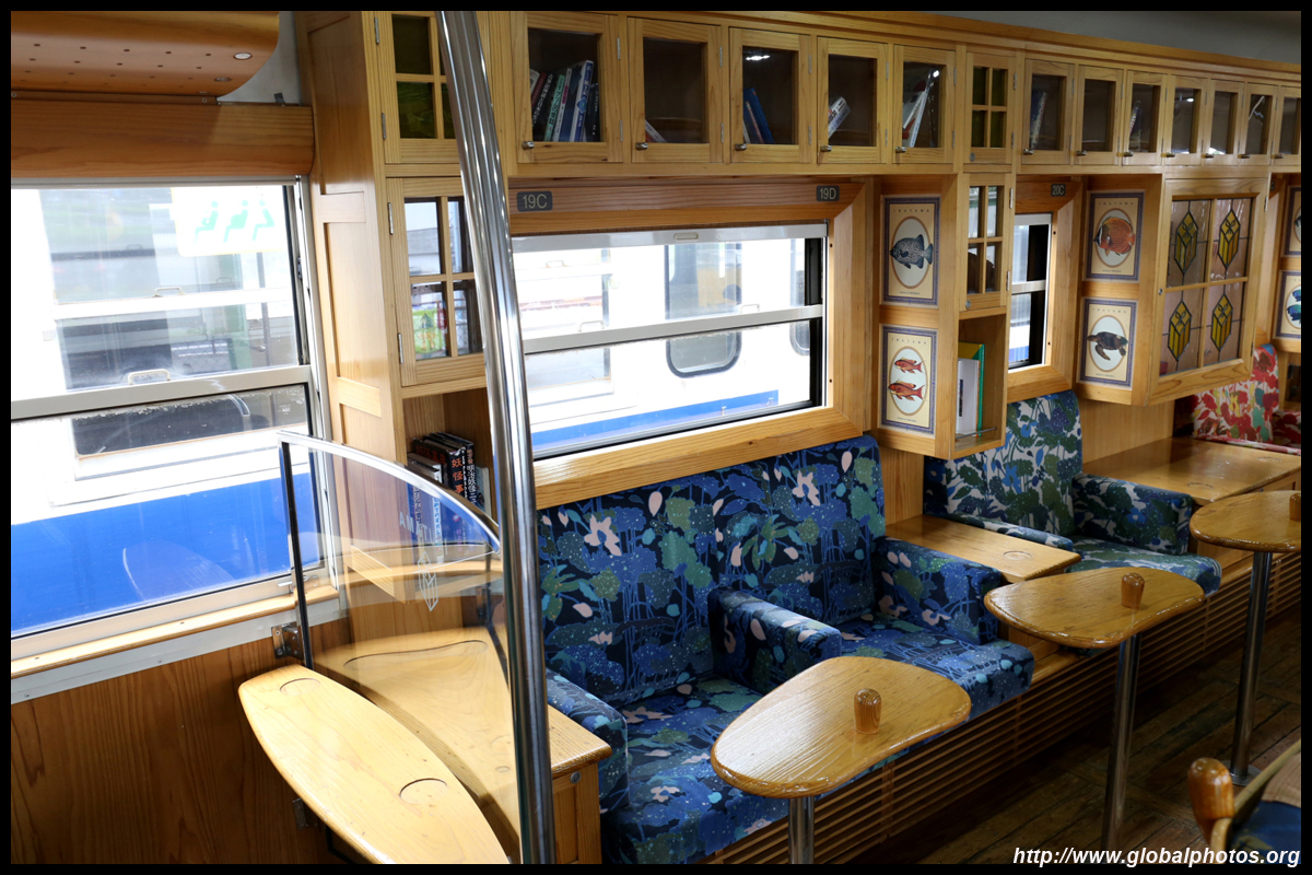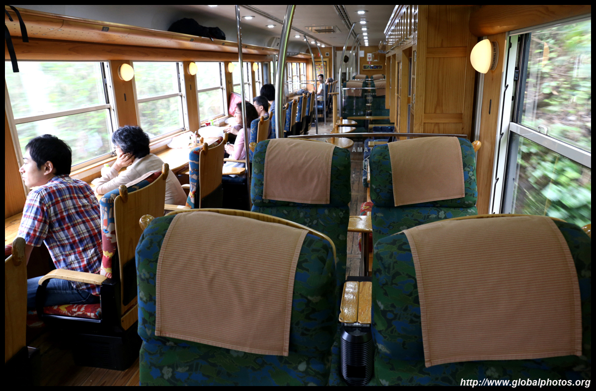 Perhaps the best part of the day was the train ride leaving town. The Limited Express Ibusuki no Tamatebako is comfortably-decorated with window-facing bar seats, cedar wood furnishings, sofas, and even a special section for kids.