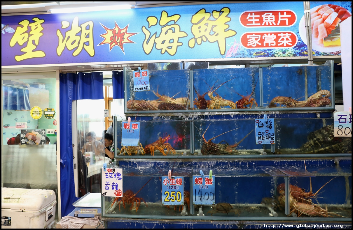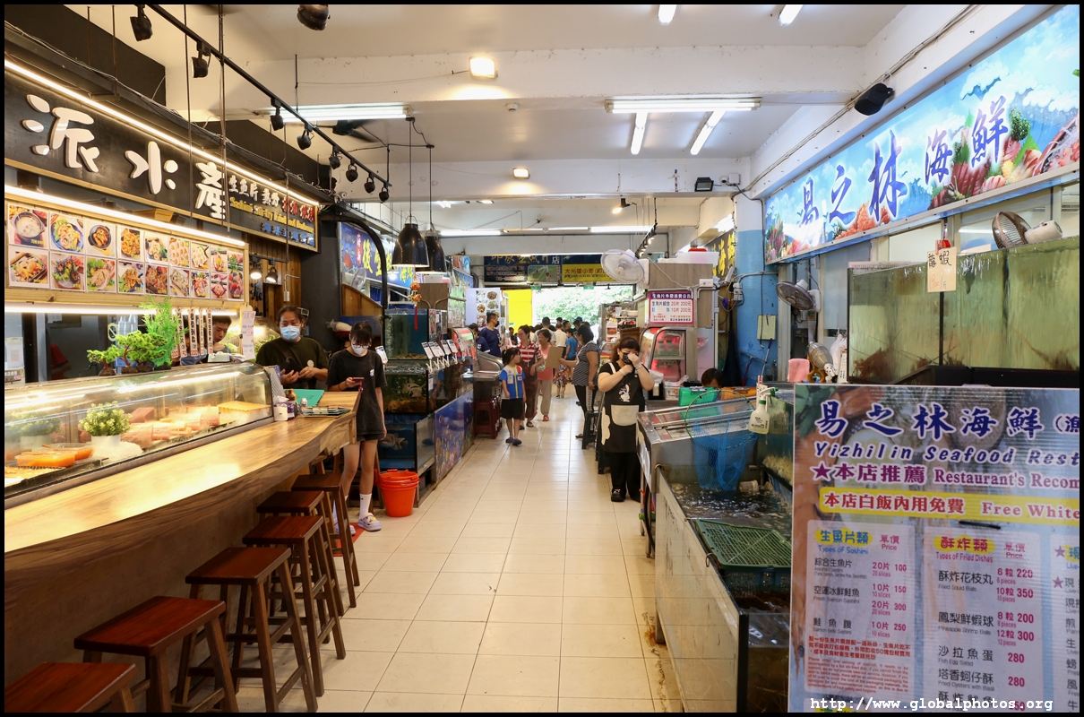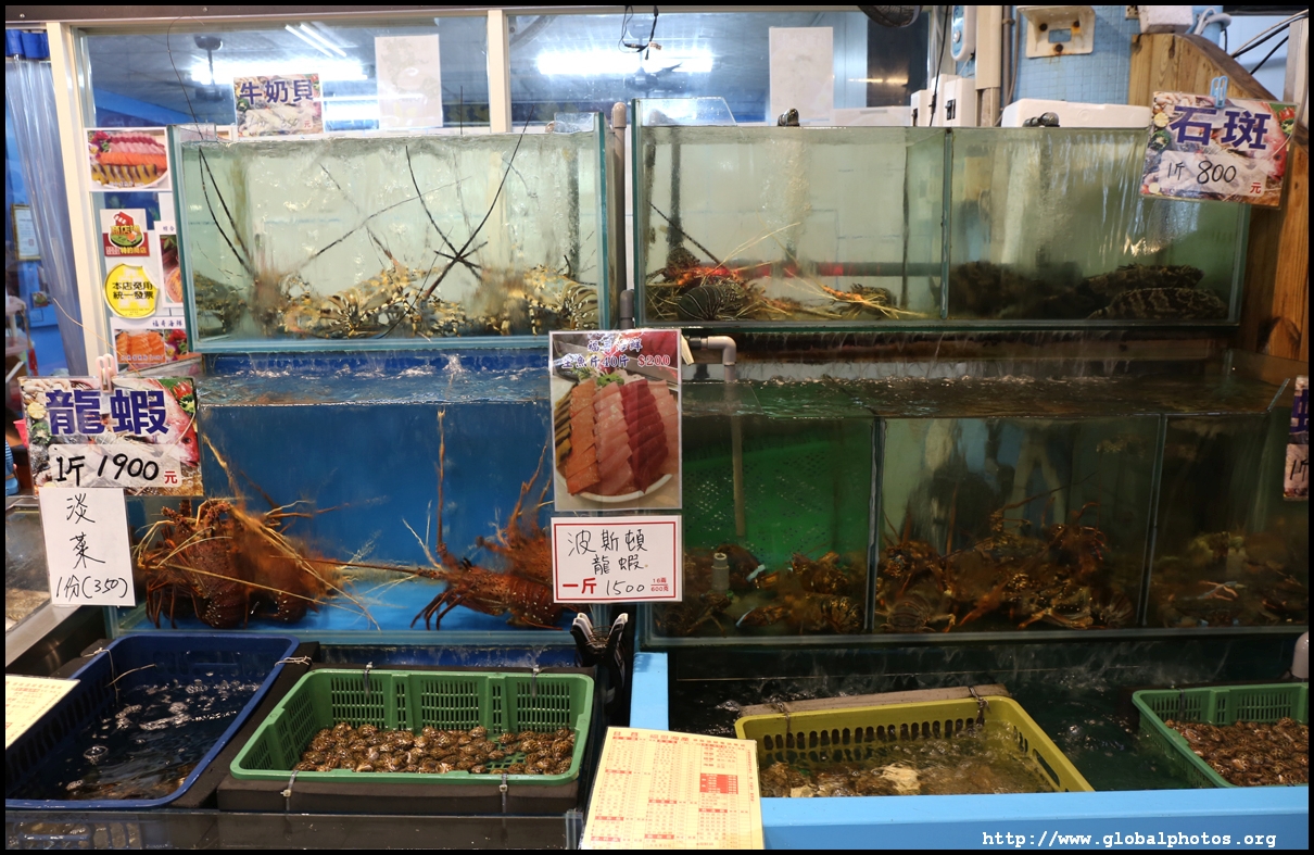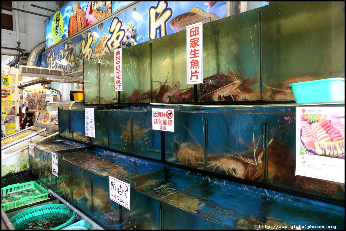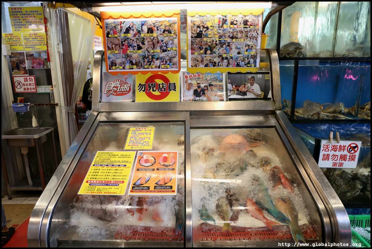 The market area is not large with a row of fresh seafood shops and restaurants behind them and also upstairs.