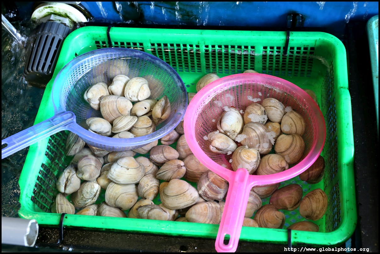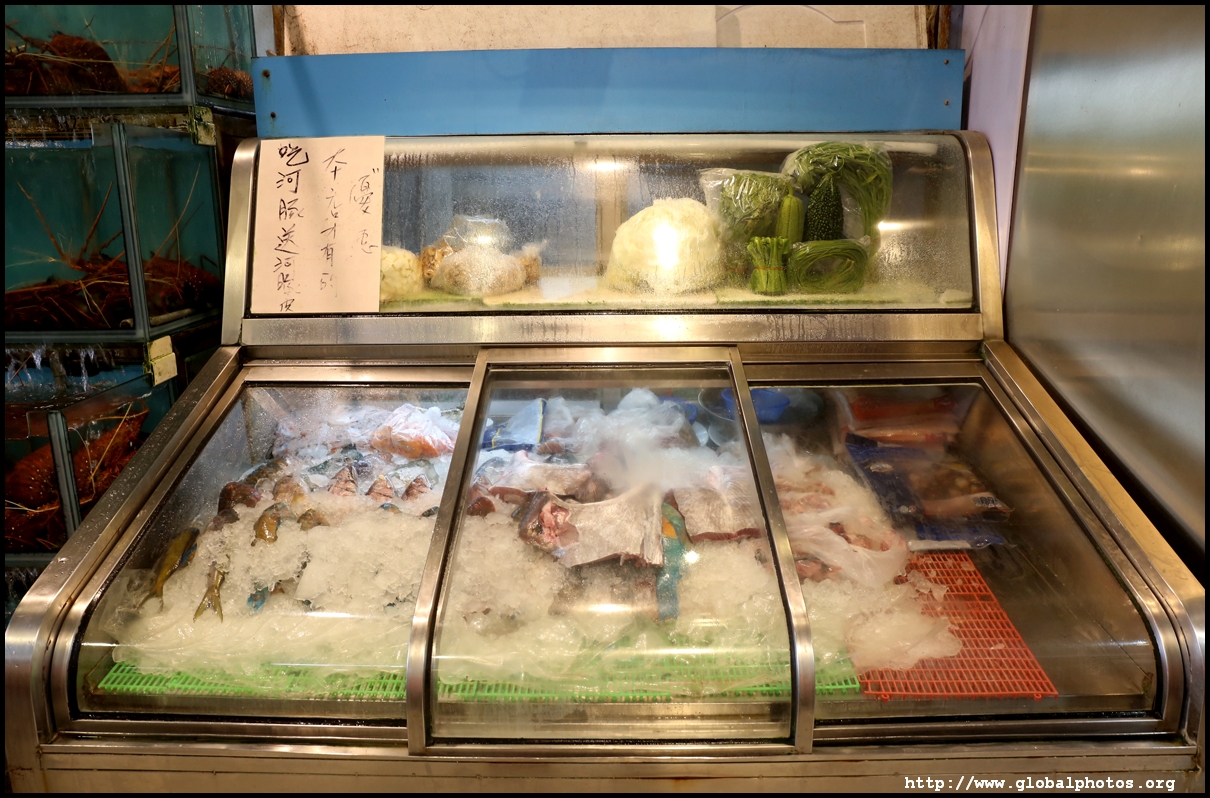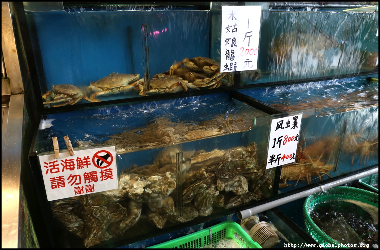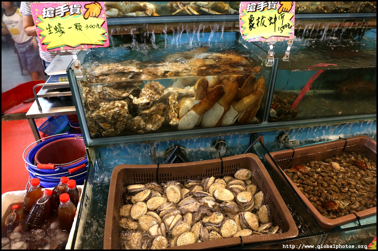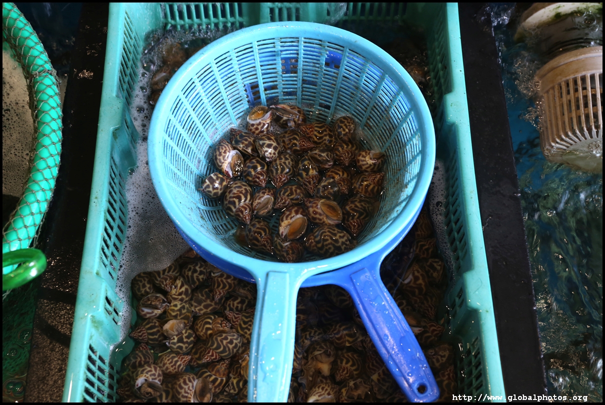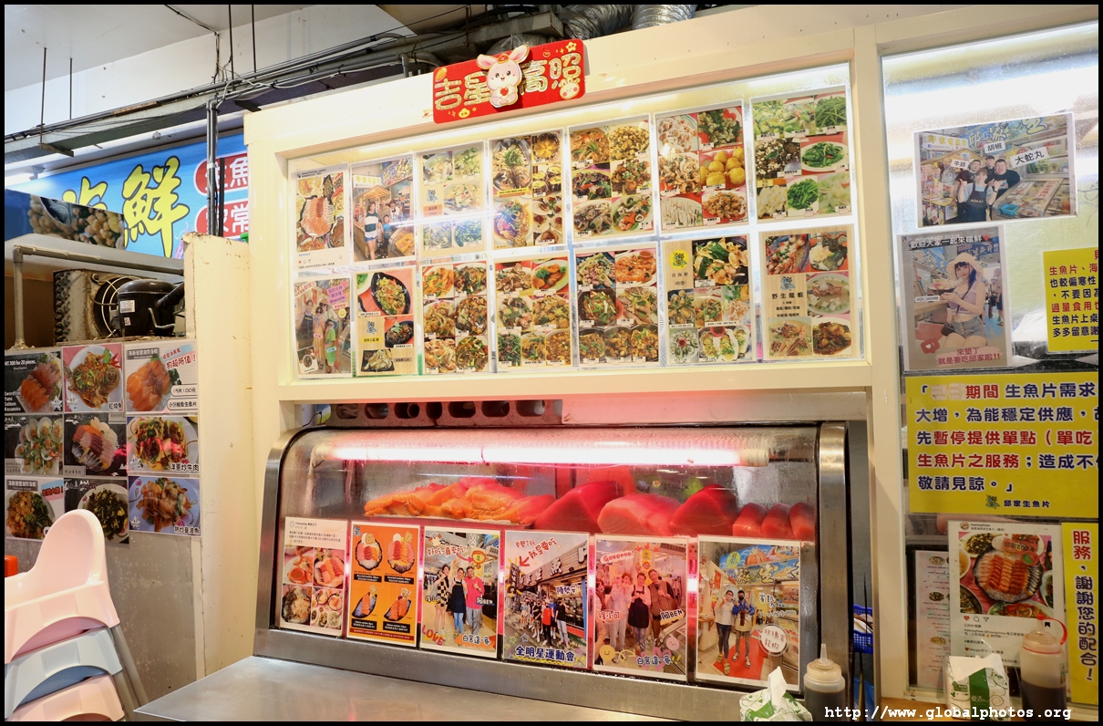The market area is not large with a row of fresh seafood shops and restaurants behind them and also upstairs.