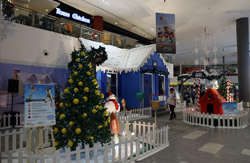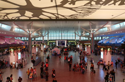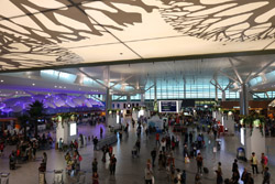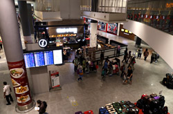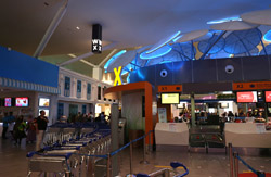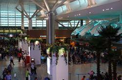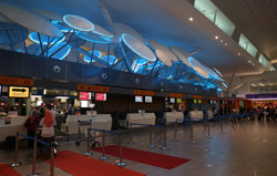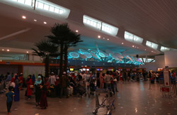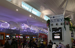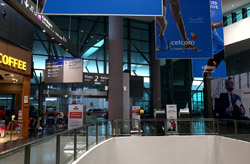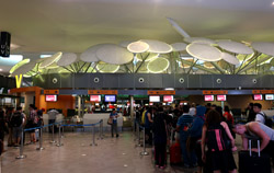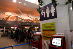 The mall exits to an open but covered area that stretched a few door spaces and you enter inside again for the check-in counters. Not sure why this small area was exposed instead of being a continuous air-conditioned building.