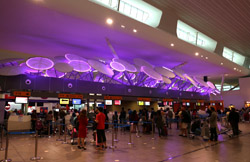The terminal is simple but simple decorations also give a much more pleasant atmosphere. The building was bursting with people already so perhaps it is time to think of an expansion? KLIA2 opened in 2014 and can handle 45 million passengers a year.