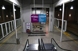 You need to take a few sets of escalators up to reach the departures area. I suppose people tend to travel with hand luggage only so should not need to find an elevator, which didn't seem visible along the way.