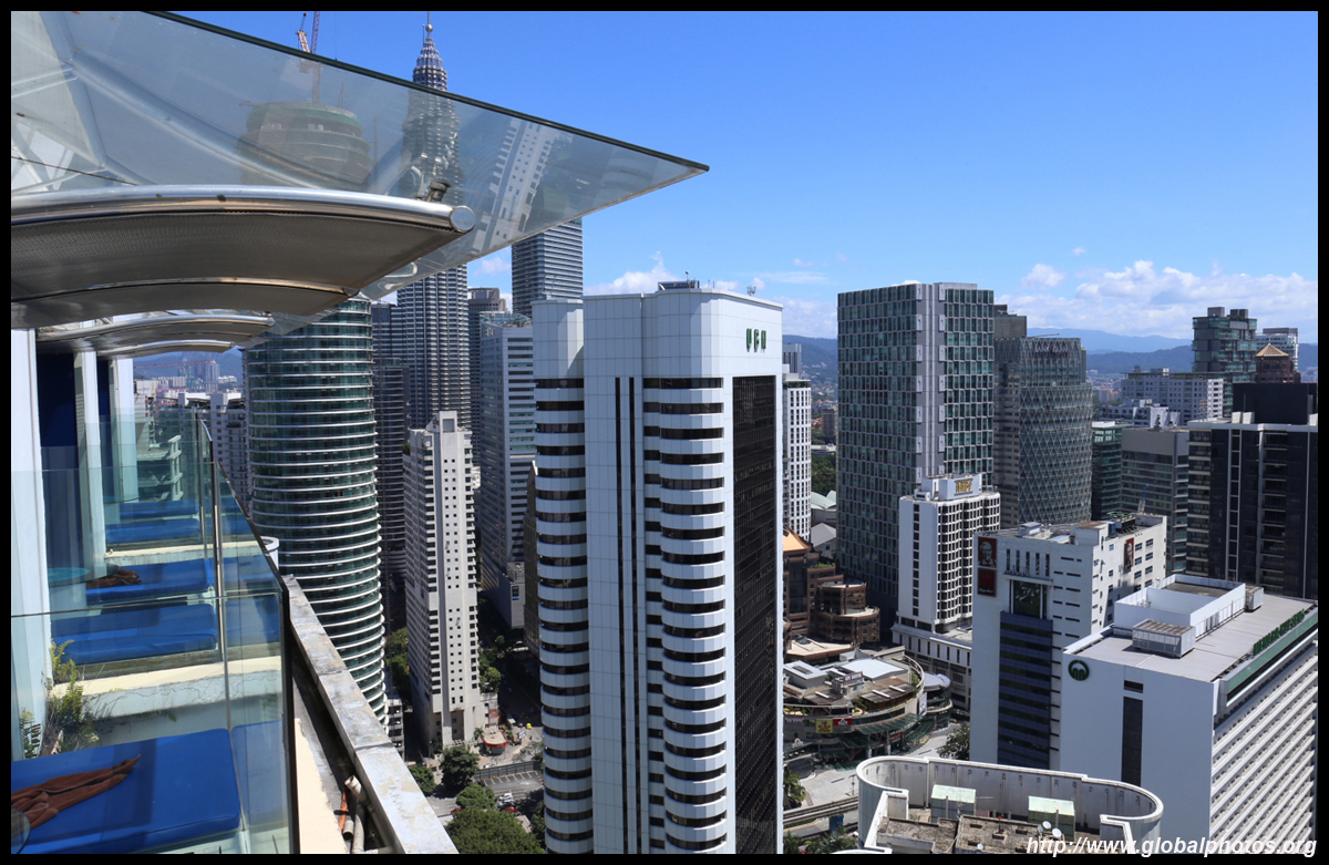 The Pacific Regency Hotel has a nice rooftop pool offering views on 3 sides. It is not very tall but offers an economical alternative to paying for Menara KL next door.