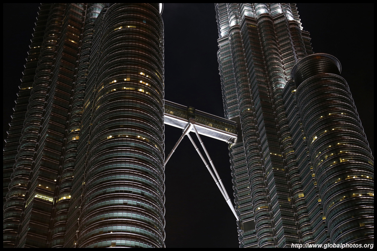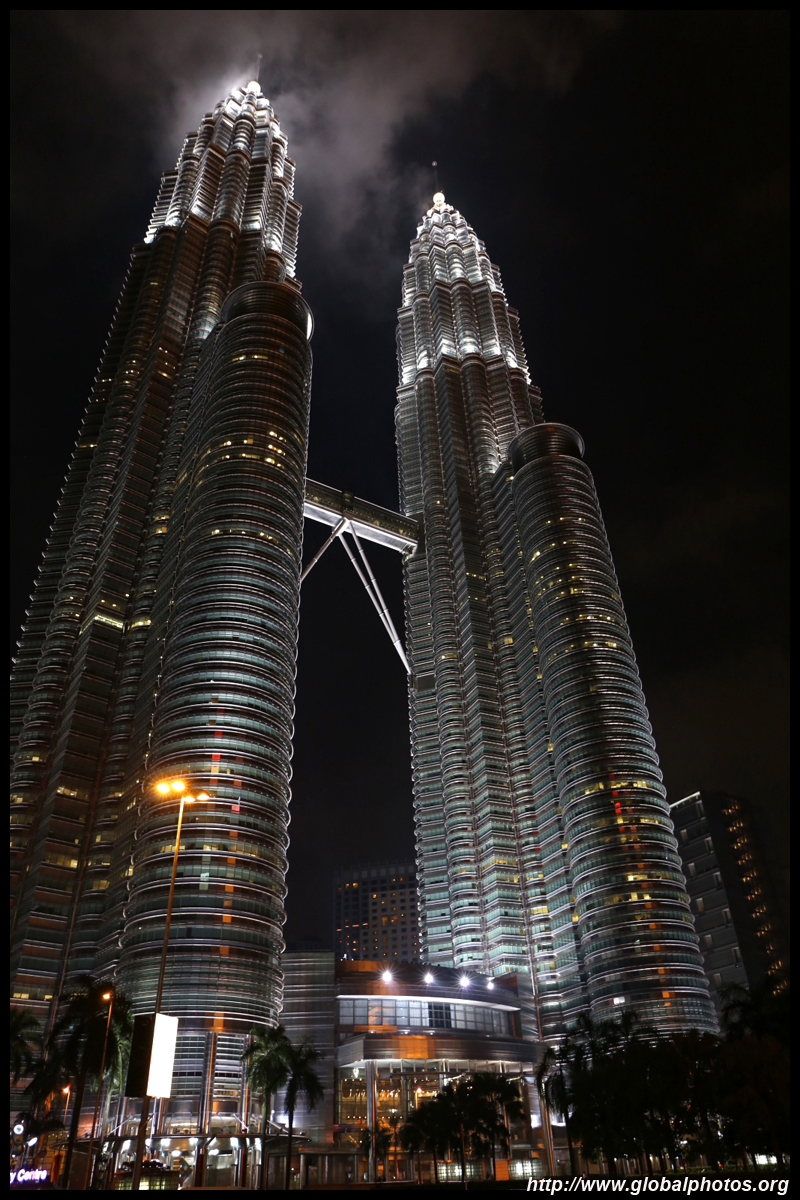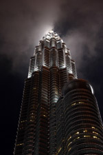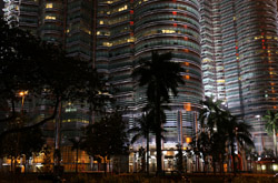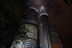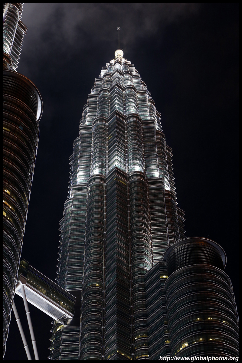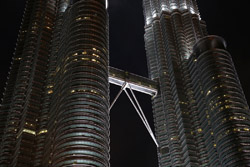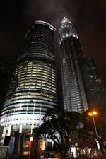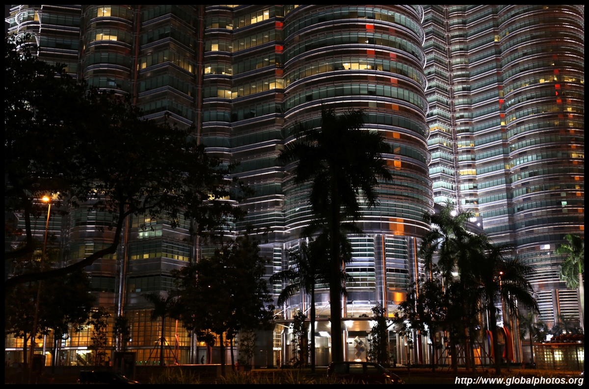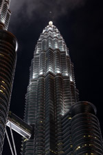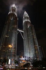The Petronas Towers are nicely lit up at night in a classic, elegant way.