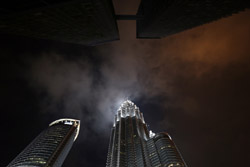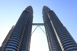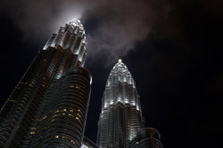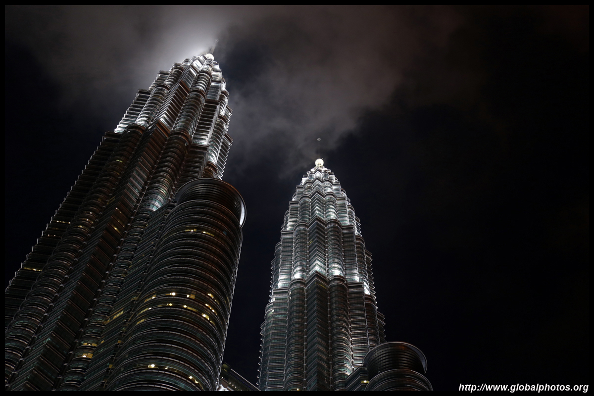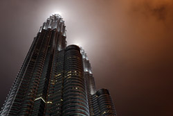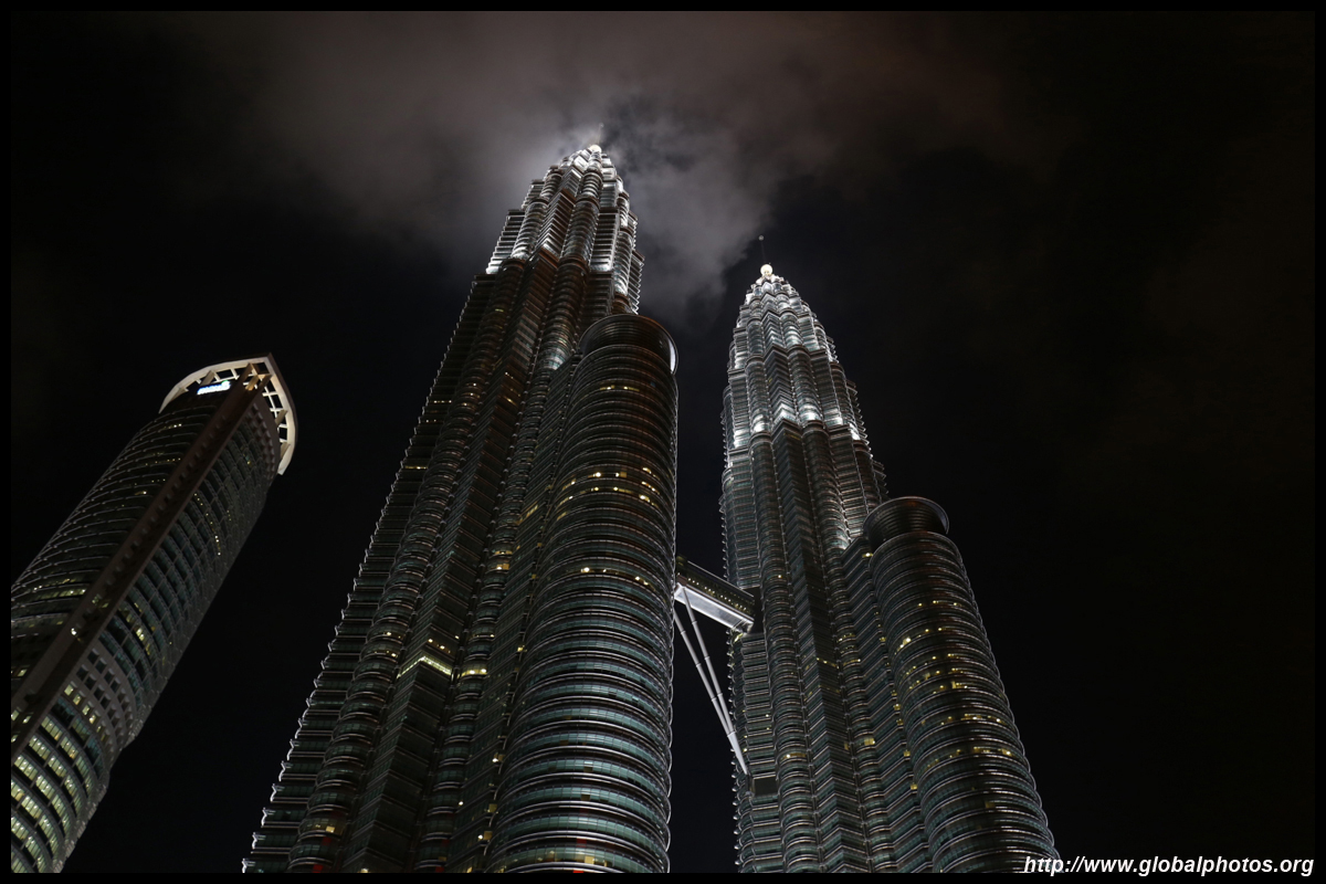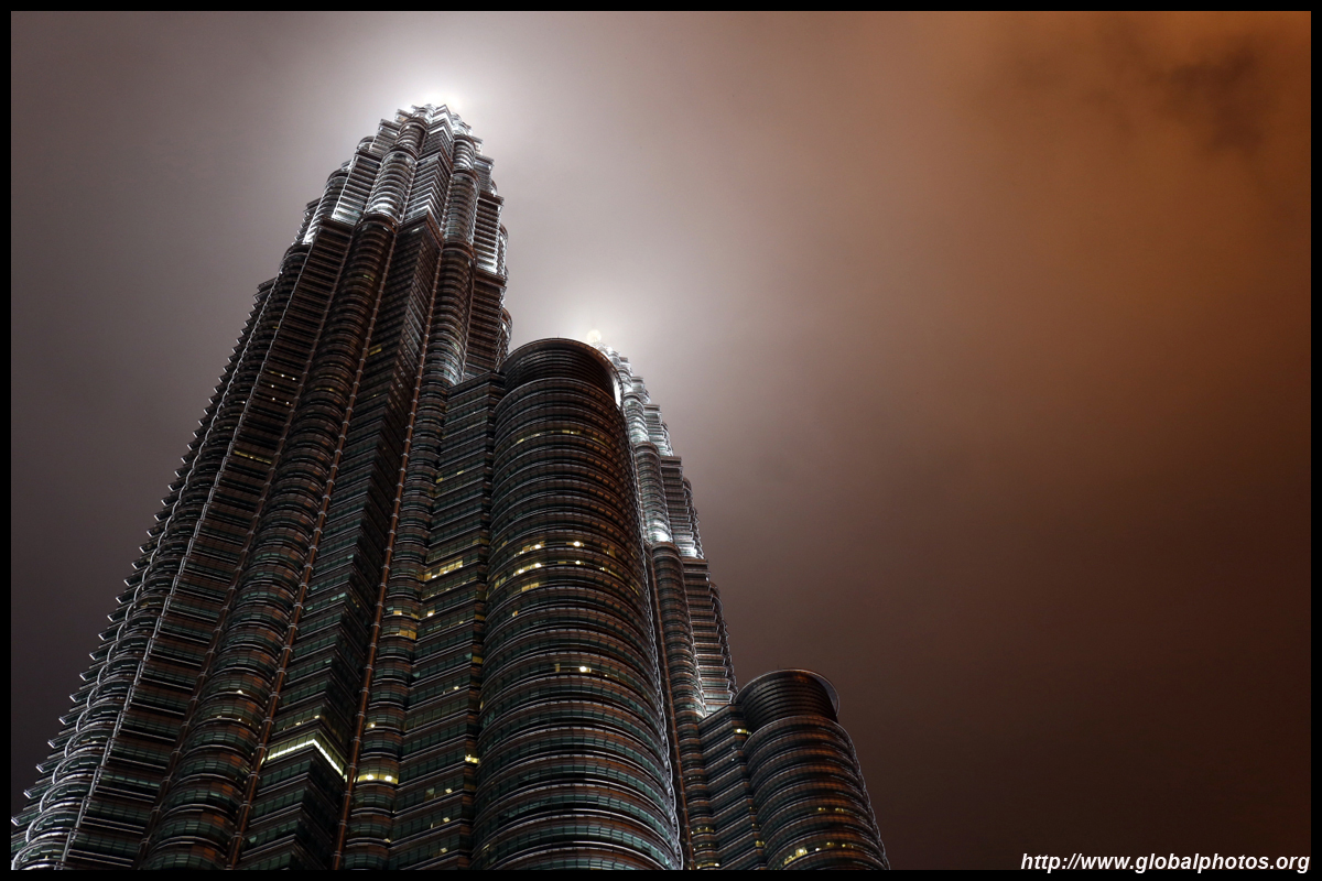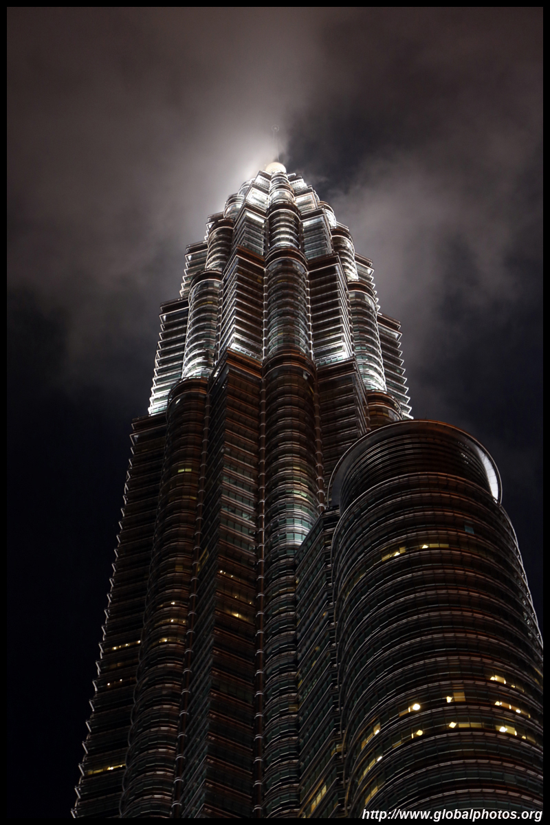 The Petronas Towers are nicely lit up at night in a classic, elegant way.