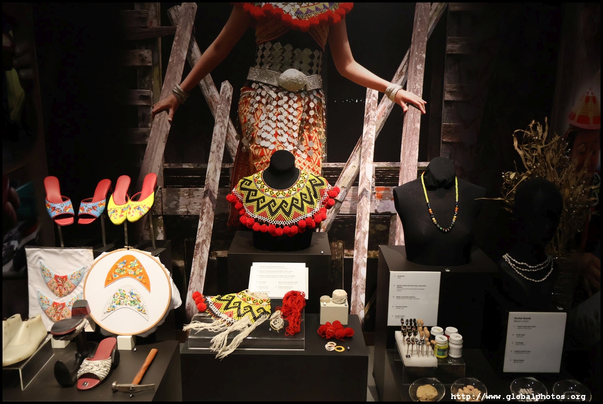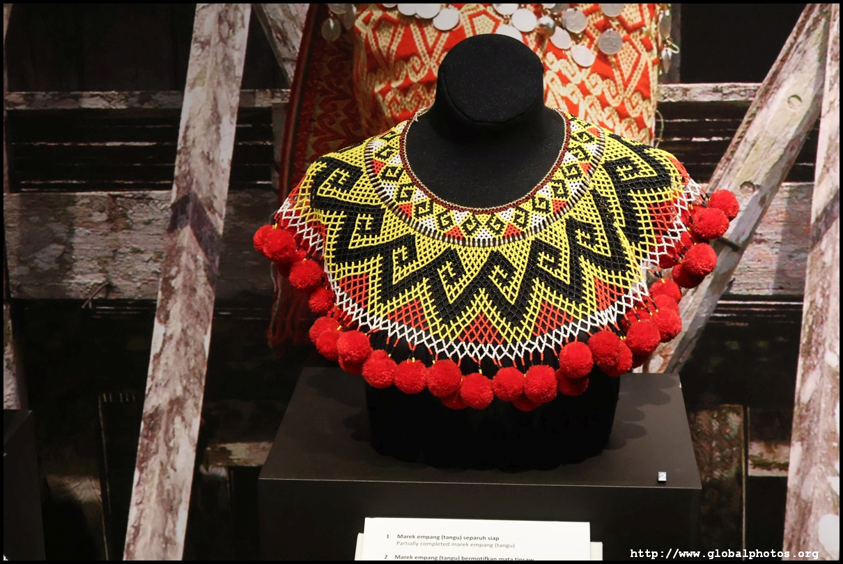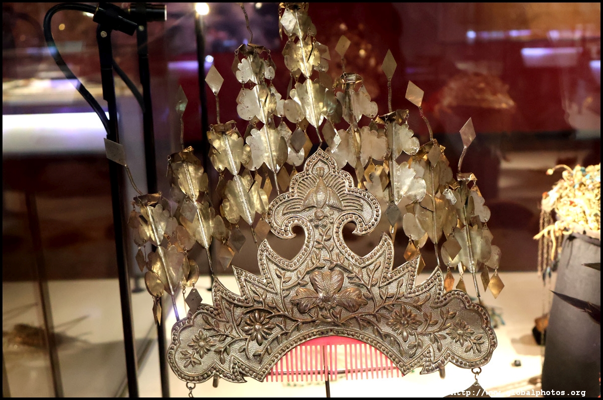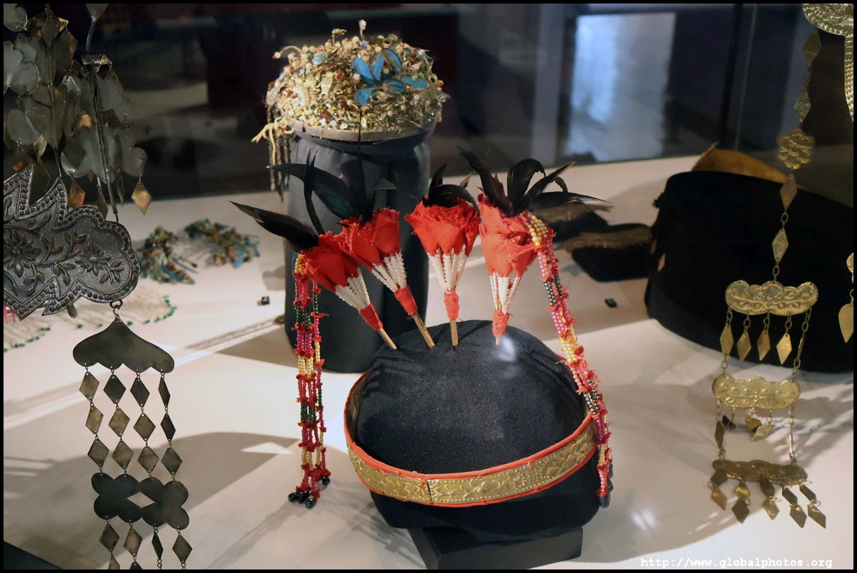 The National Textile Museum occupies a historic building from the late 1890s just off Merdeka Square. The iconic red and white exterior was designed by A. B. Hubback and served as the Federated Malay States Railway's headquarters in 1905, followed by the Selangor Public Works Department in 1917. It last served the Water Works, Central Bank, and Agriculture Bank before it was handed to the Urban Development Authority in 1981, eventually becoming a museum.After paying 5 ringgit admission, I entered a very retro space and had the exhibits almost entirely to myself. To the right of the entrance is the Pelangi gallery, which showcases fabrics from Malaysia's different ethnic groups. On the right is a Peranakan wedding robe made of silk that is typical of Ming Dynasty fashion. On the left is an early 19th century knee pad for a Peranakan groom that is made from velvet and embroidered with flower and fuit motifs. On the left is a pua kumbu, which is made of cotton and used as a sacred blanket on special occasions. On the left is a deer skin cloth with additional feathers attached on the back. On the right is a baju sungkit, a man's jacket made from cotton for ceremonial rites and gatherings. On the left is a traditional costume for a Rungus man from Kudat, Sabah. On the right is a Dastar cloth with a geometric pattern also from Sabah. On the right is a shawl batik from Semarang, Indonesia from around the 1880s. On the left is a batik sarong cloth worn by a Nyonya. The Pohon Budi Gallery runs through the origin of textiles with tools and various fabrics used in the country. Continuing upstairs, there are more exhibitions on offer. The Ratna Sari gallery consists of diamond, gold, and other jewels from the country's ethnic groups as well as indigenous communities. Let's start with tobacco boxes with intricate designs, includig floral motifs and other fine works. On the left is a tangkong, which is made of brass rings on rattan strings and worn around the hips. On the right is a sarempak, a boat-shaped head dress worn by Bajau and Iranun women from Sabah. This Nyonya wedding crown has glass baubles, butterfly, and phoenix decorations. On display are traditional costumes from various ethnic groups. On the left is a head dress made from woven bloth worn by Malay men for prayers and special occasions. On the right, the head dress is made from rattan, beads, and goat hair worn by Orang Ulu men from Sarawak. On the right, the head gear is made from palm leaves to be worn during special occasions by the Orang Asli. There are also many embroidered slippers on display from the Nyonya and Baba community in the early 20th century. This wooden clog on the left is worn by women from Kelantan, while the high-heel slippers on the right was worn by the Nyonya in Melaka during the 1940s.