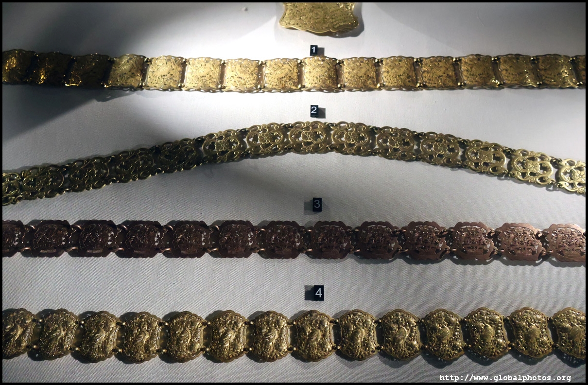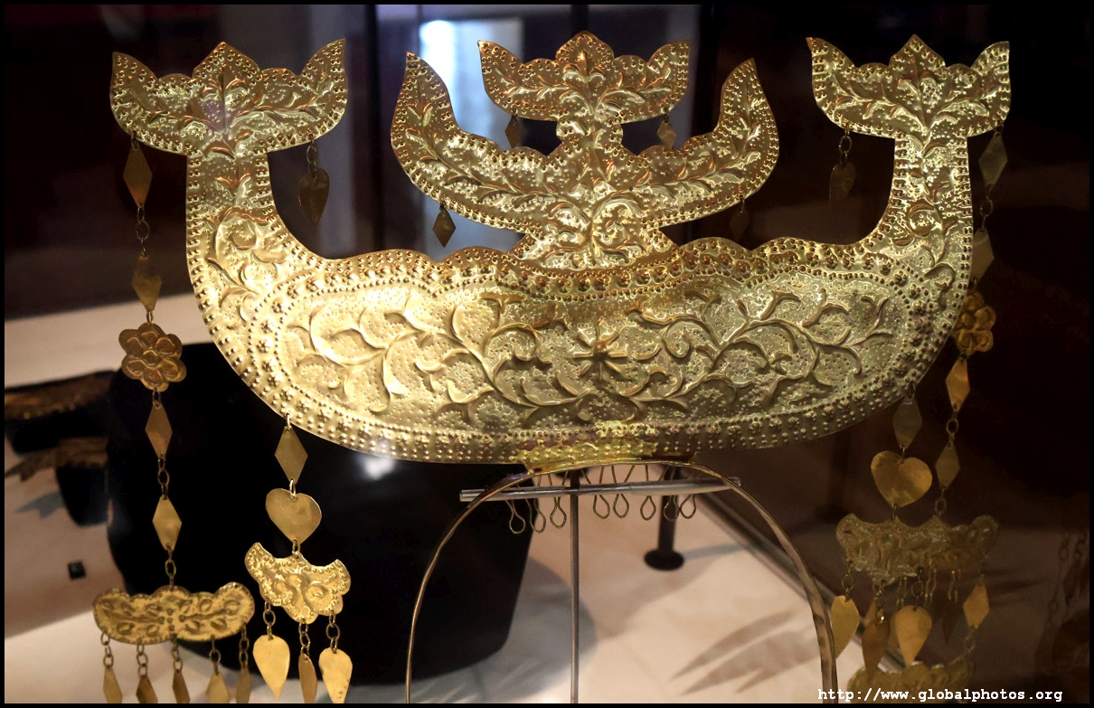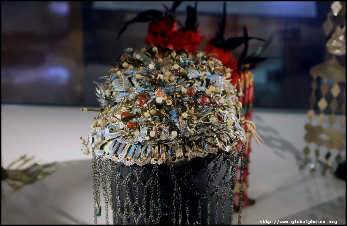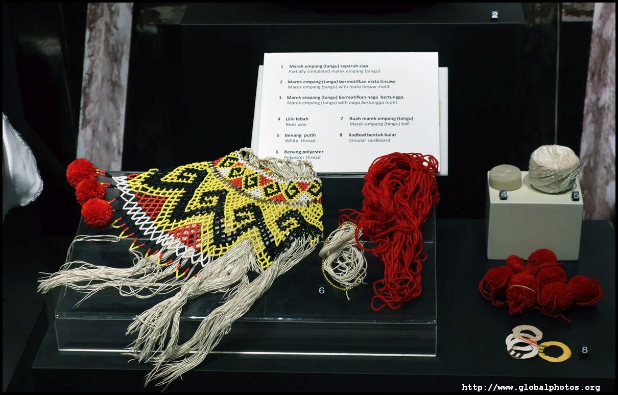The National Textile Museum occupies a historic building from the late 1890s just off Merdeka Square. The iconic red and white exterior was designed by A. B. Hubback and served as the Federated Malay States Railway's headquarters in 1905, followed by the Selangor Public Works Department in 1917. It last served the Water Works, Central Bank, and Agriculture Bank before it was handed to the Urban Development Authority in 1981, eventually becoming a museum.After paying 5 ringgit admission, I entered a very retro space and had the exhibits almost entirely to myself. To the right of the entrance is the Pelangi gallery, which showcases fabrics from Malaysia's different ethnic groups. On the right is a Peranakan wedding robe made of silk that is typical of Ming Dynasty fashion. On the left is an early 19th century knee pad for a Peranakan groom that is made from velvet and embroidered with flower and fuit motifs. On the left is a pua kumbu, which is made of cotton and used as a sacred blanket on special occasions. On the left is a deer skin cloth with additional feathers attached on the back. On the right is a baju sungkit, a man's jacket made from cotton for ceremonial rites and gatherings. On the left is a traditional costume for a Rungus man from Kudat, Sabah. On the right is a Dastar cloth with a geometric pattern also from Sabah. On the right is a shawl batik from Semarang, Indonesia from around the 1880s. On the left is a batik sarong cloth worn by a Nyonya. The Pohon Budi Gallery runs through the origin of textiles with tools and various fabrics used in the country. Continuing upstairs, there are more exhibitions on offer. The Ratna Sari gallery consists of diamond, gold, and other jewels from the country's ethnic groups as well as indigenous communities. Let's start with tobacco boxes with intricate designs, includig floral motifs and other fine works. On the left is a tangkong, which is made of brass rings on rattan strings and worn around the hips. On the right is a sarempak, a boat-shaped head dress worn by Bajau and Iranun women from Sabah. This Nyonya wedding crown has glass baubles, butterfly, and phoenix decorations. On display are traditional costumes from various ethnic groups. On the left is a head dress made from woven bloth worn by Malay men for prayers and special occasions. On the right, the head dress is made from rattan, beads, and goat hair worn by Orang Ulu men from Sarawak. On the right, the head gear is made from palm leaves to be worn during special occasions by the Orang Asli. There are also many embroidered slippers on display from the Nyonya and Baba community in the early 20th century. This wooden clog on the left is worn by women from Kelantan, while the high-heel slippers on the right was worn by the Nyonya in Melaka during the 1940s.