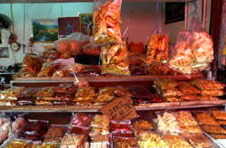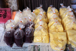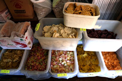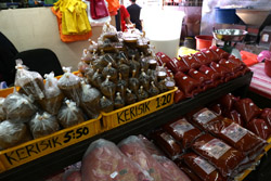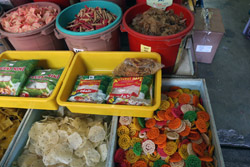 Across town, Chow Kit is mostly a grocery market, the largest of its kind in the city. It has a long history going back to 1955 with a wide assortment of items on offer from raw ingredients to cooked foods.