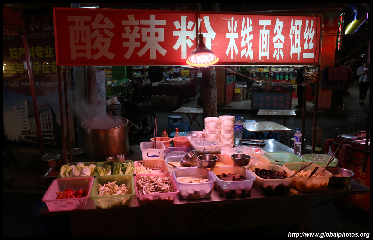 Chinese cities boast lively street markets. At night, streets transform into night markets featuring all sorts of foods prepared in many different ways.