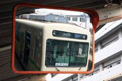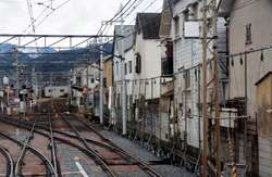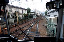 These trains weave through residential areas at street-level, passing by people's windows and patiently-waiting cars.