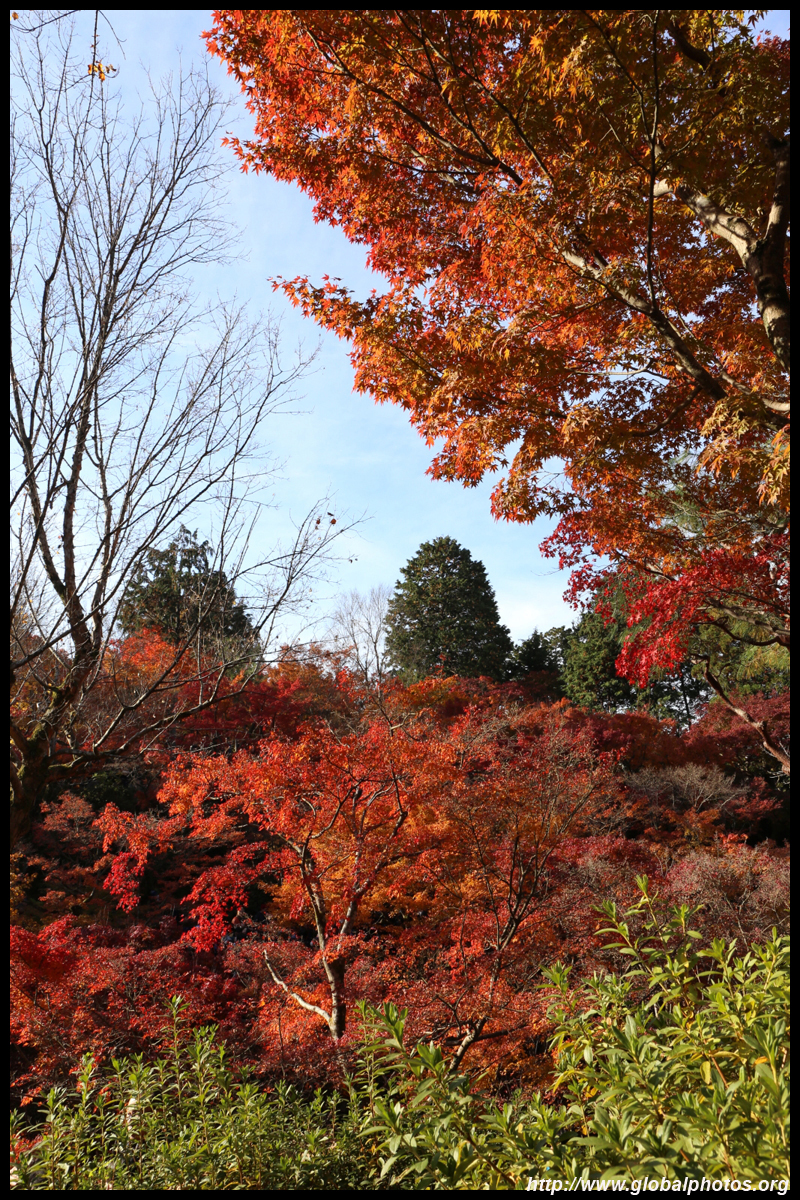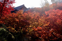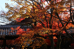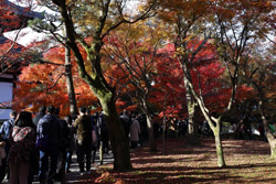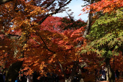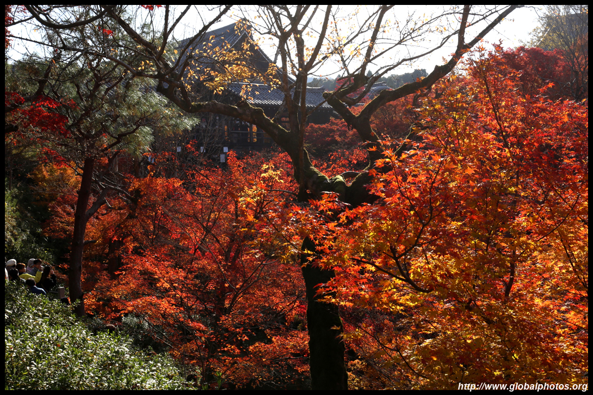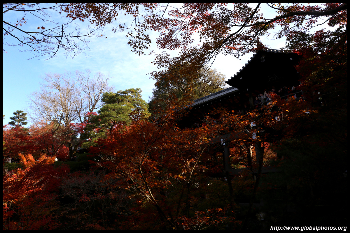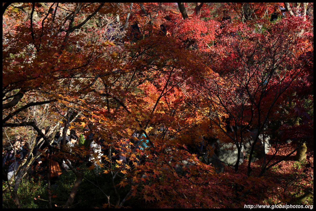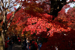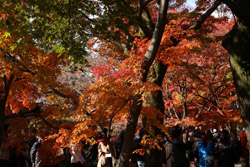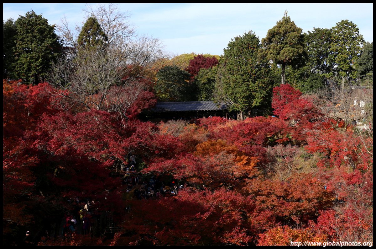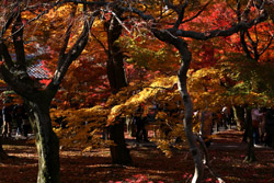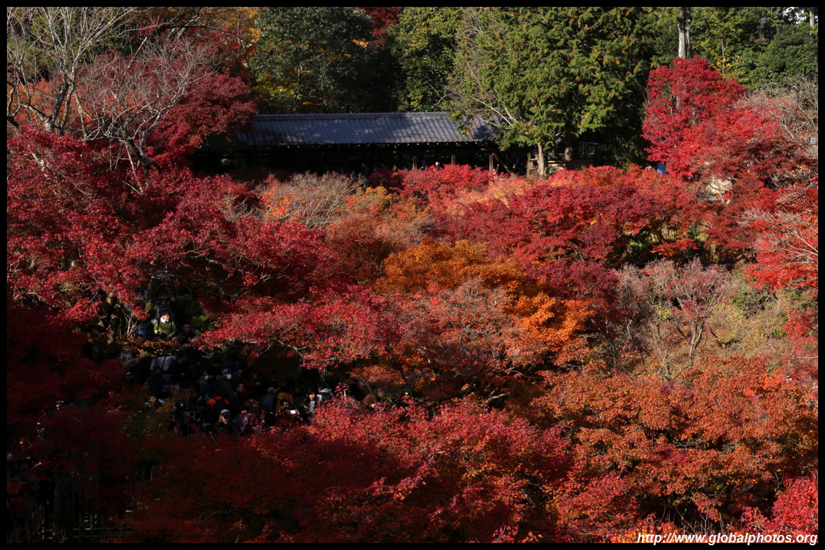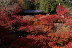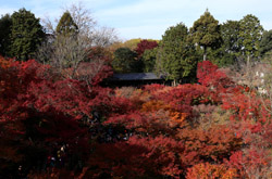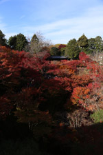 Kyoto has many locations to see fall foliage amidst a temple setting. My first stop of the day was Tofukuji, whose river valley and small slopes offer a fairly unique experience when the vegetation turns fiery red.