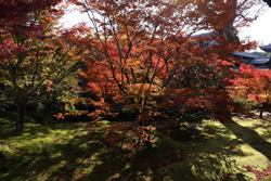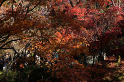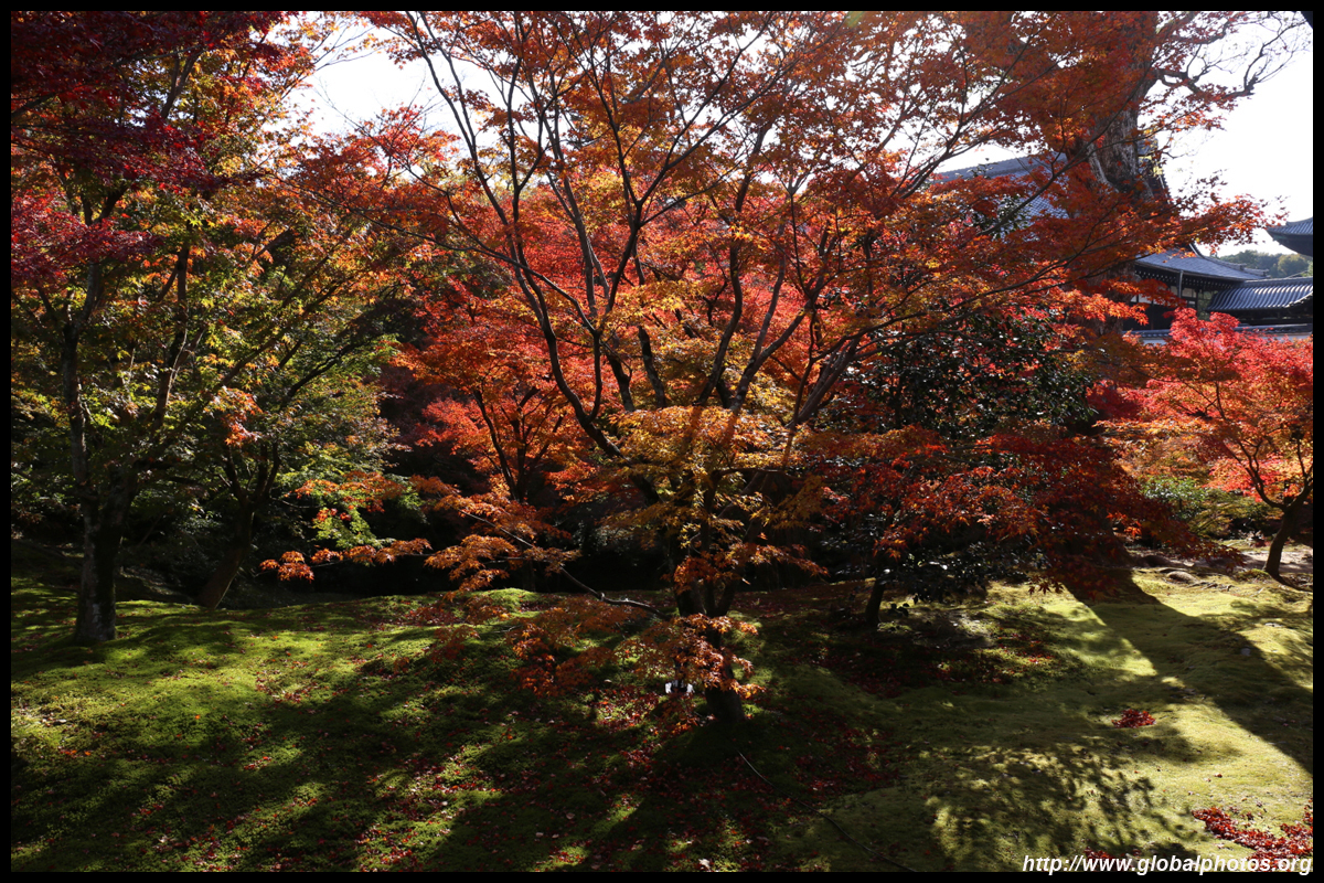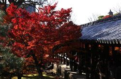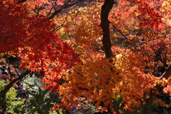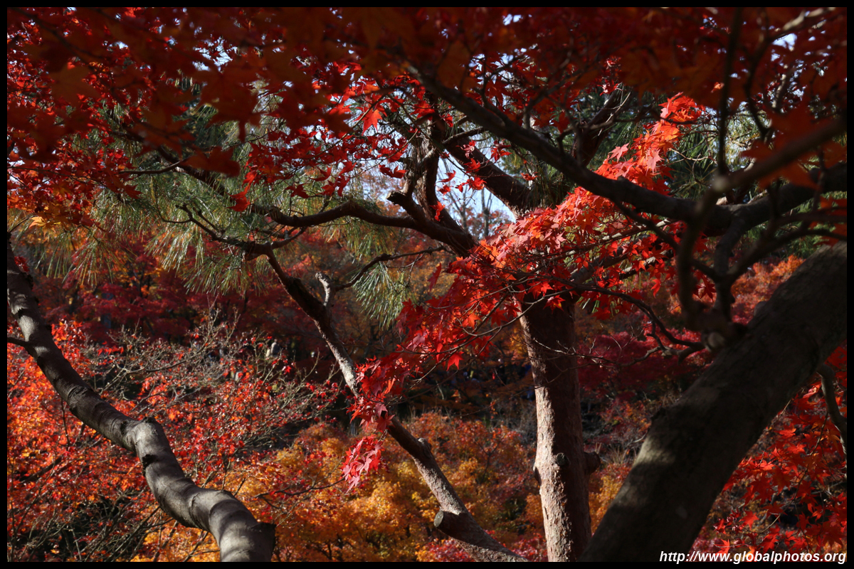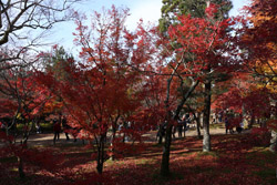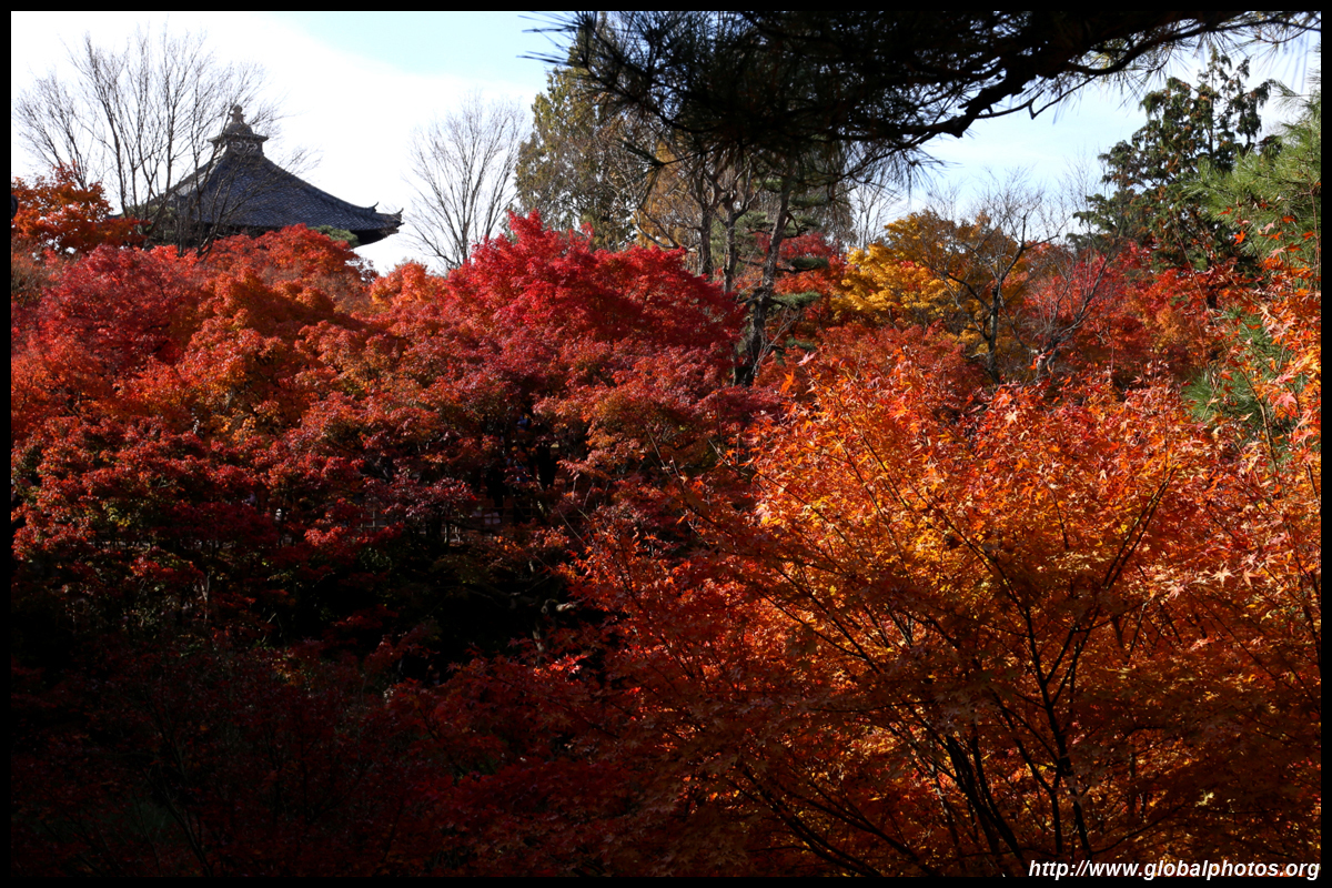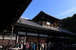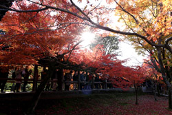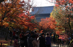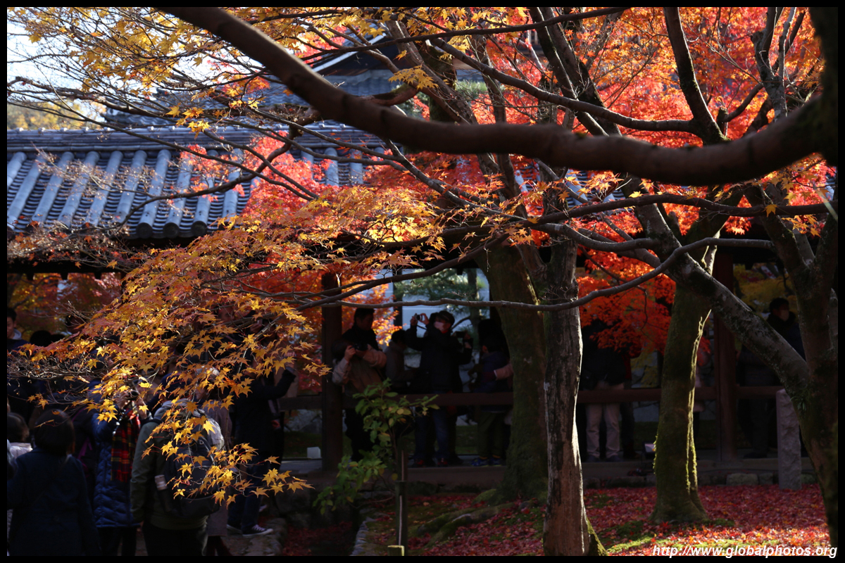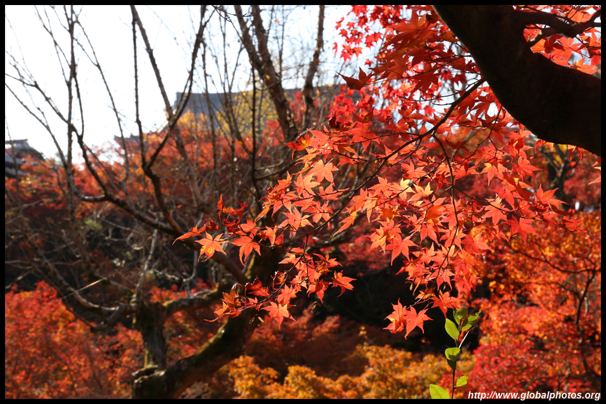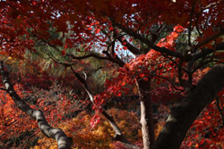 Kyoto has many locations to see fall foliage amidst a temple setting. My first stop of the day was Tofukuji, whose river valley and small slopes offer a fairly unique experience when the vegetation turns fiery red.