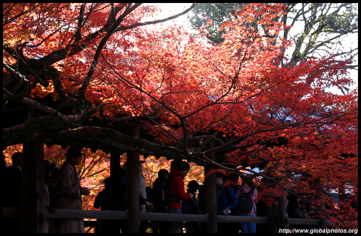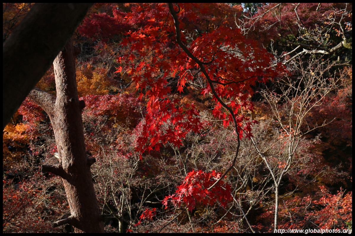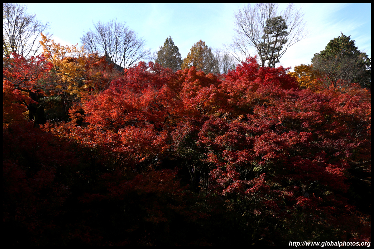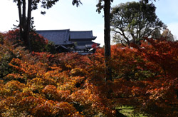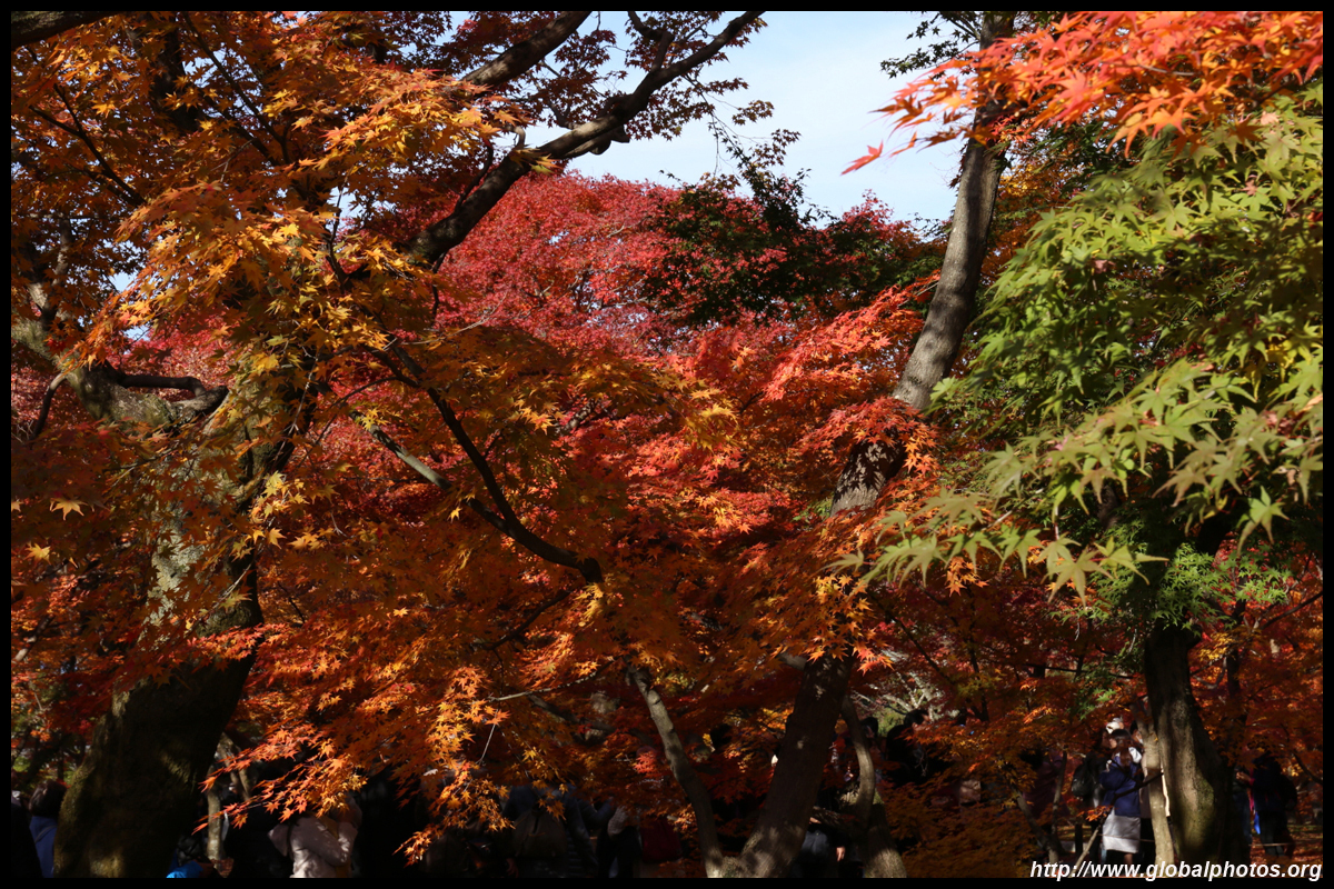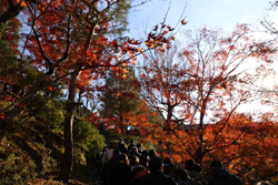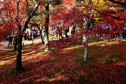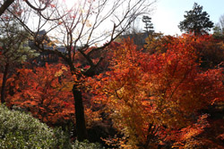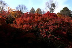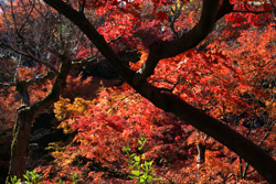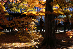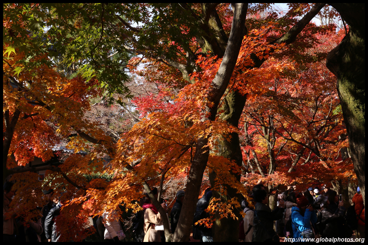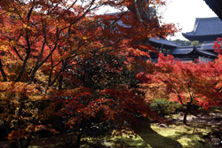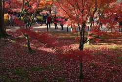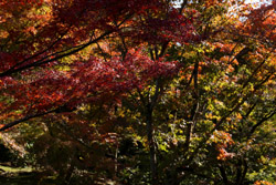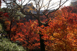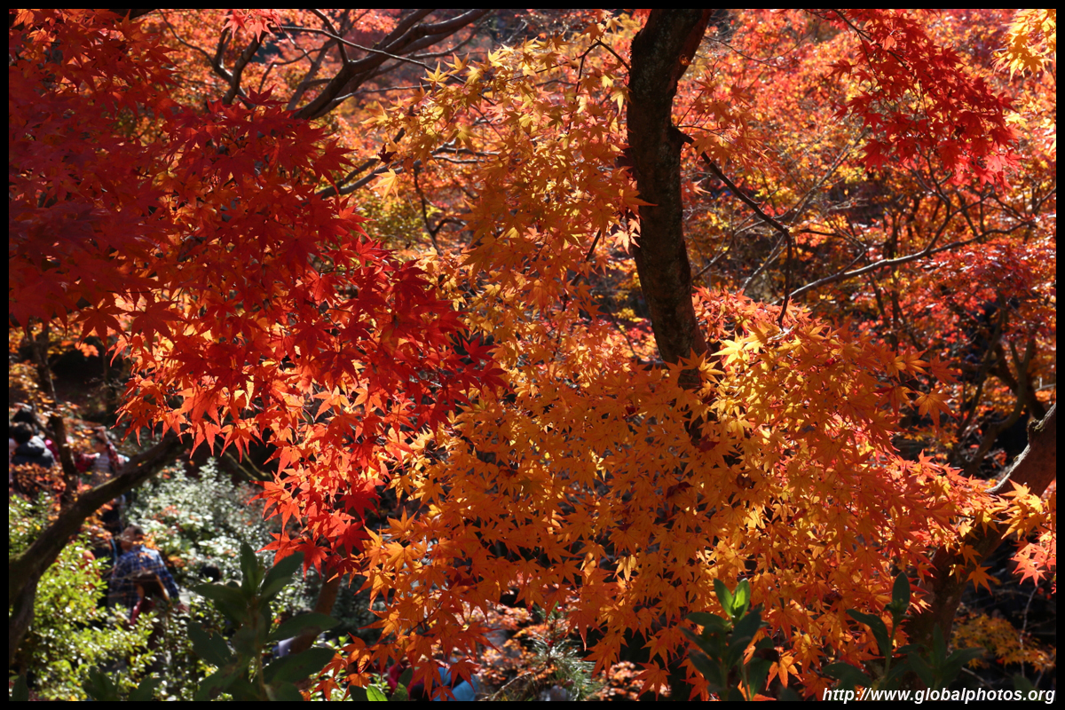 Kyoto has many locations to see fall foliage amidst a temple setting. My first stop of the day was Tofukuji, whose river valley and small slopes offer a fairly unique experience when the vegetation turns fiery red.