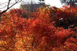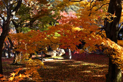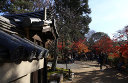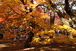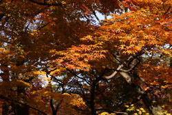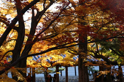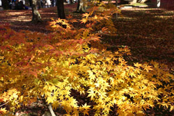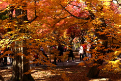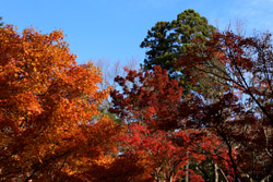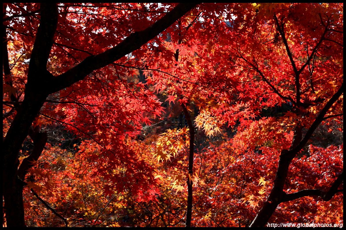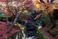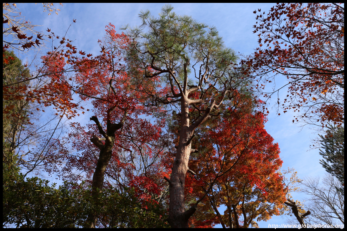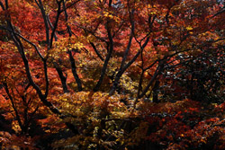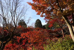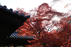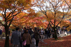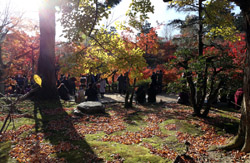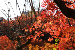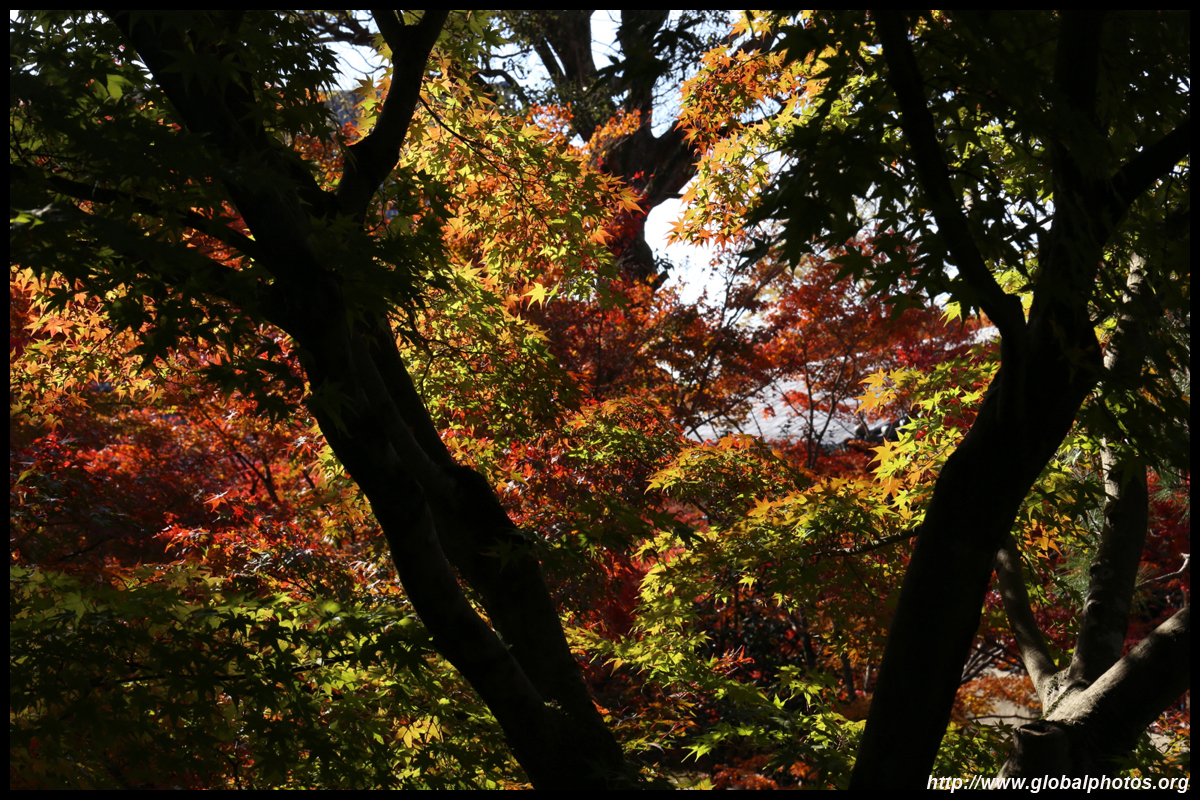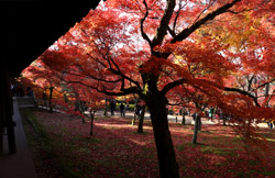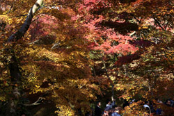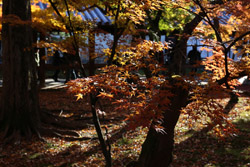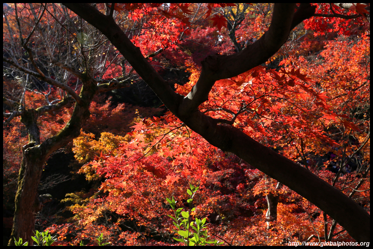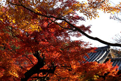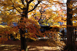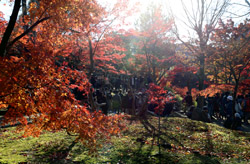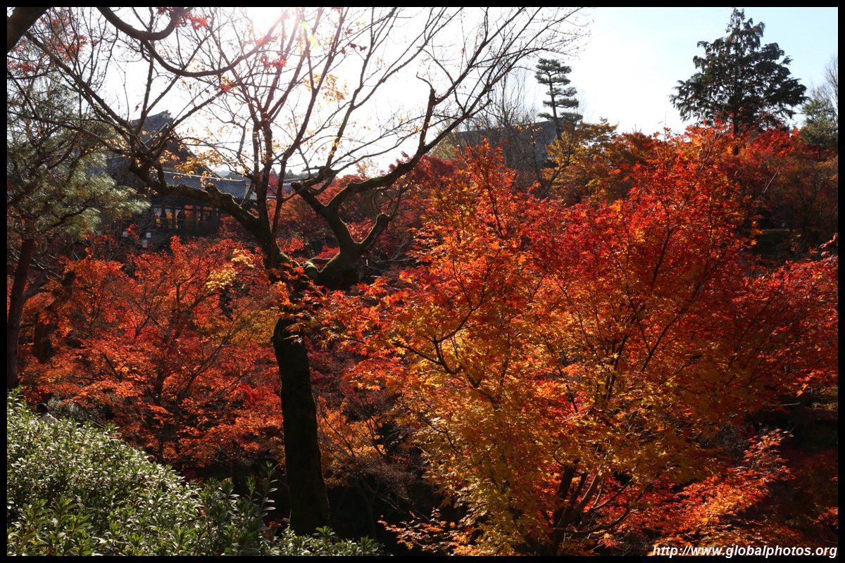 Kyoto has many locations to see fall foliage amidst a temple setting. My first stop of the day was Tofukuji, whose river valley and small slopes offer a fairly unique experience when the vegetation turns fiery red.