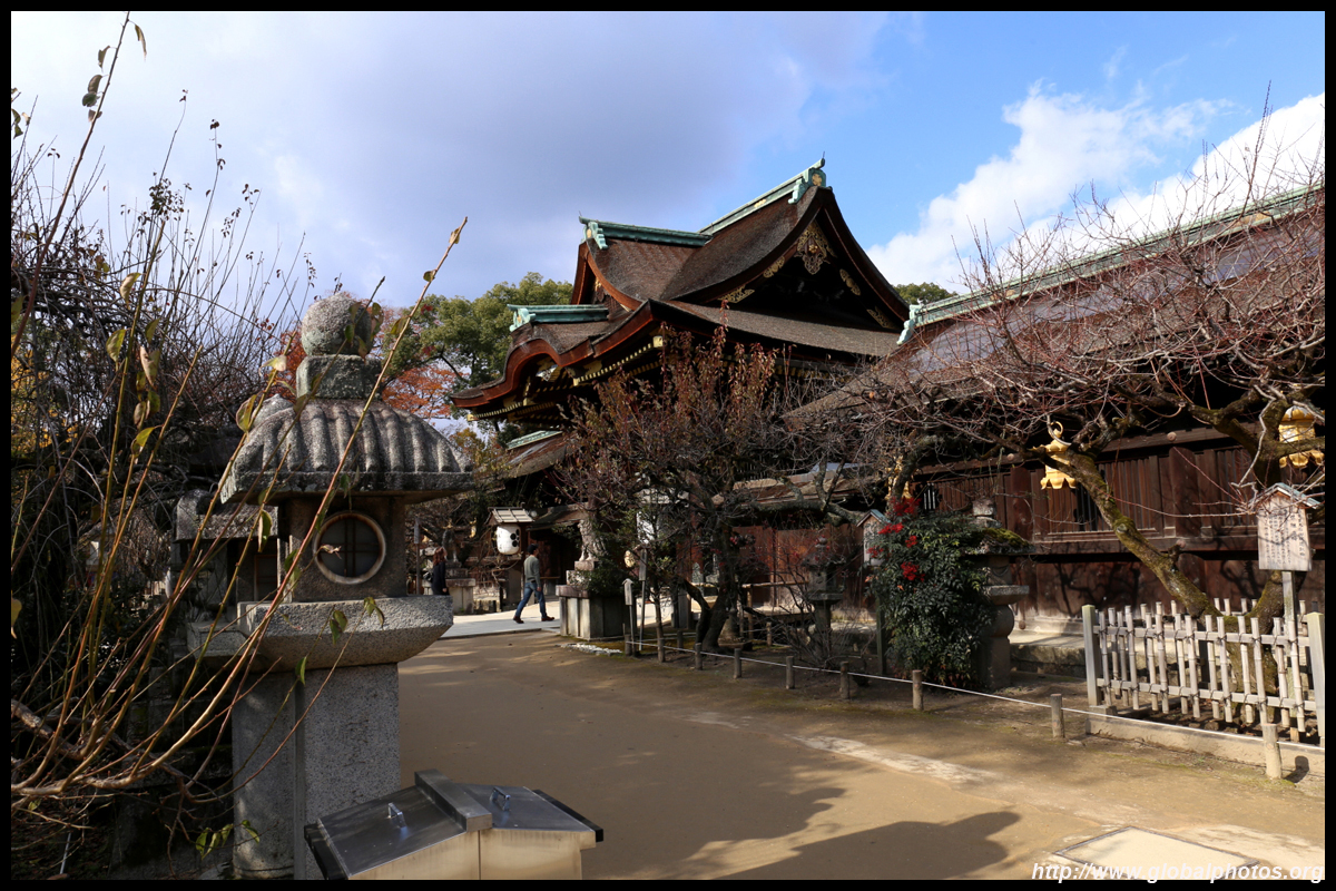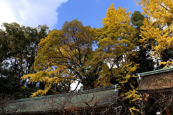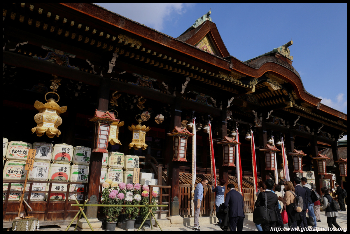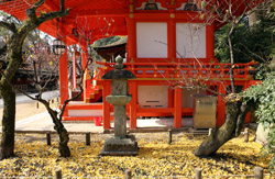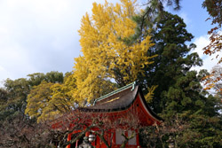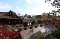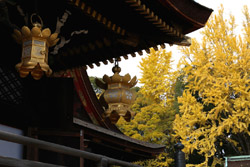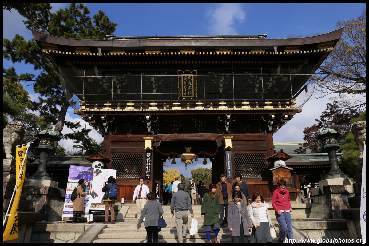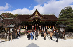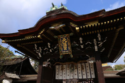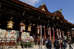 Kitano Tenmangu Shrine's history goes back over a thousand years, being the first shrine in the country where a person has been enshrined as a deity. Many students come here praying for good exam results. The present building dates from the early 17th century.