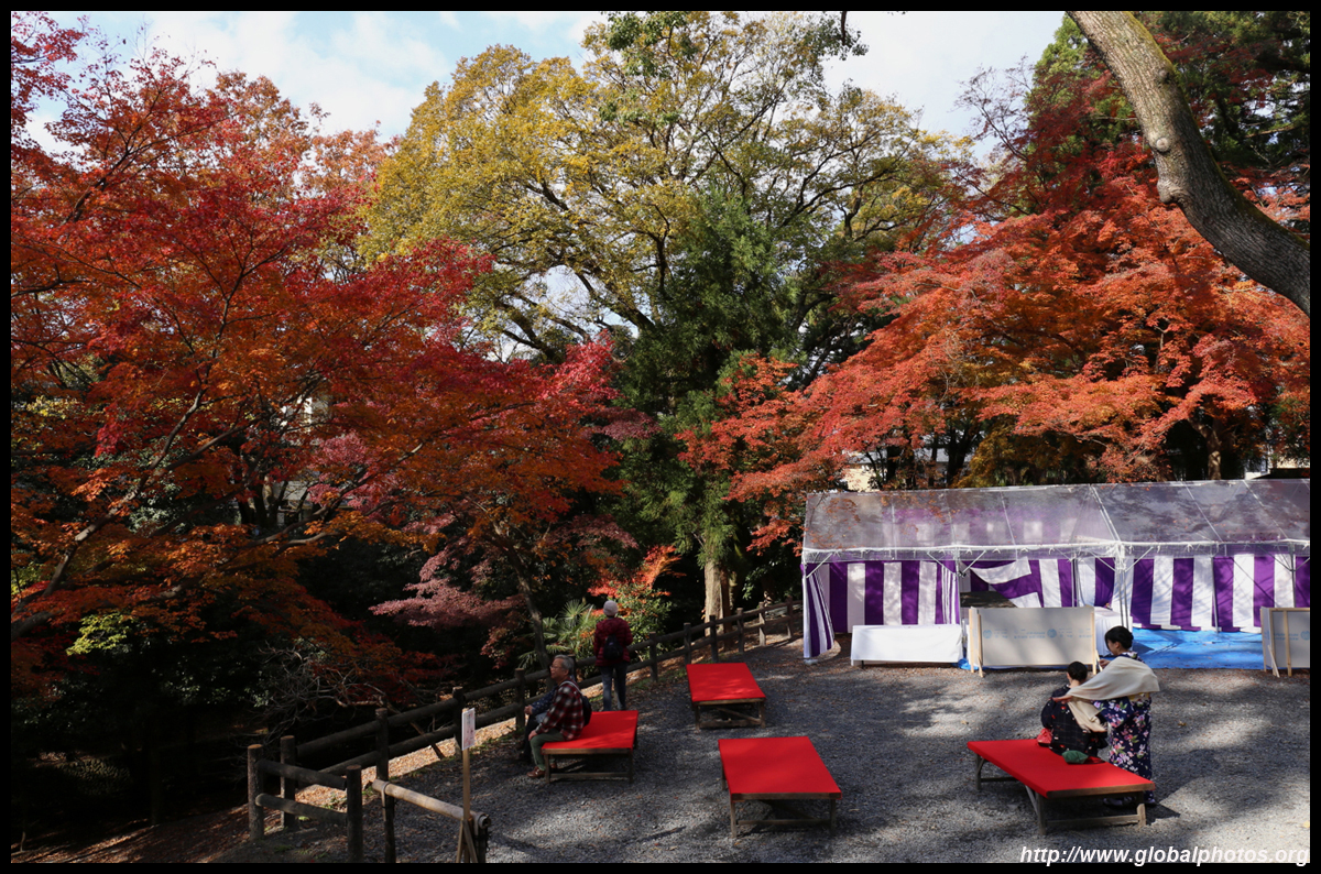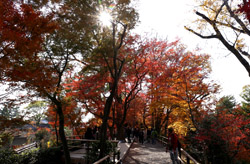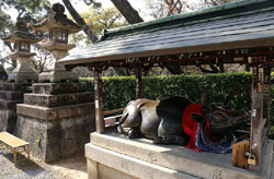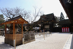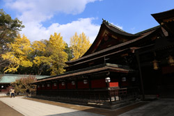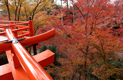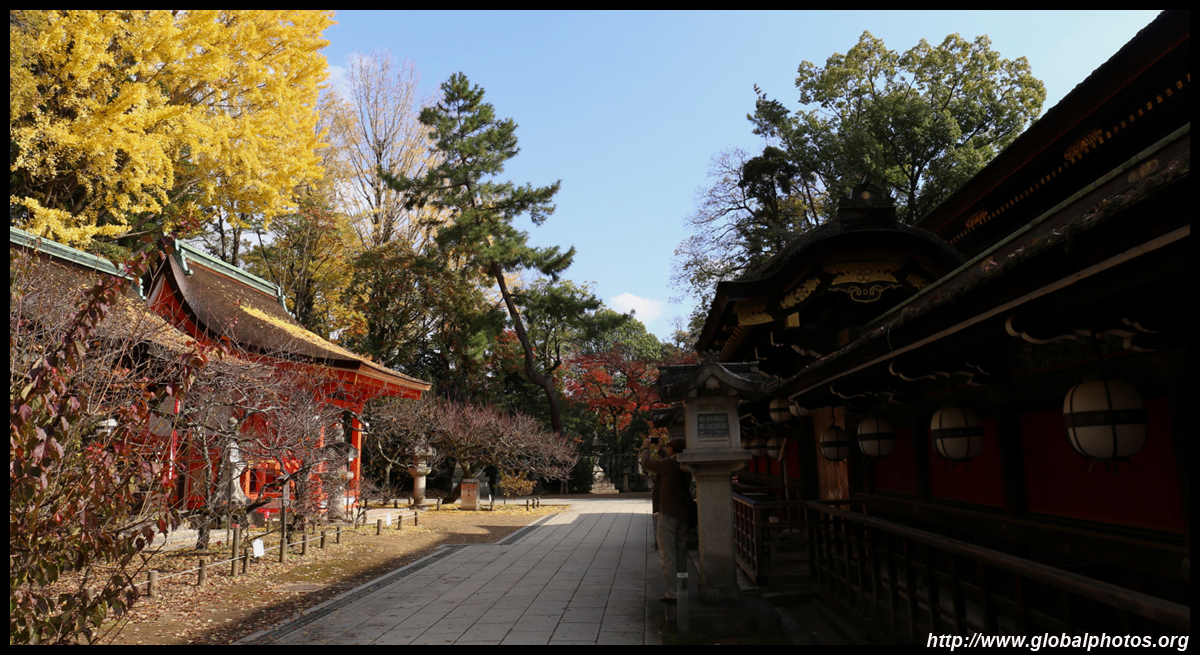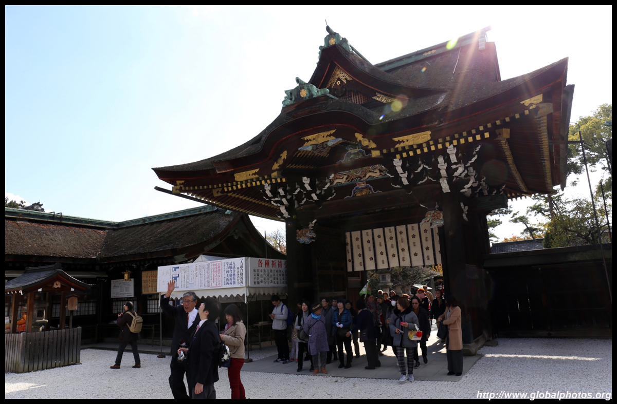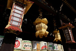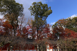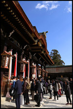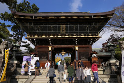 Kitano Tenmangu Shrine's history goes back over a thousand years, being the first shrine in the country where a person has been enshrined as a deity. Many students come here praying for good exam results. The present building dates from the early 17th century.