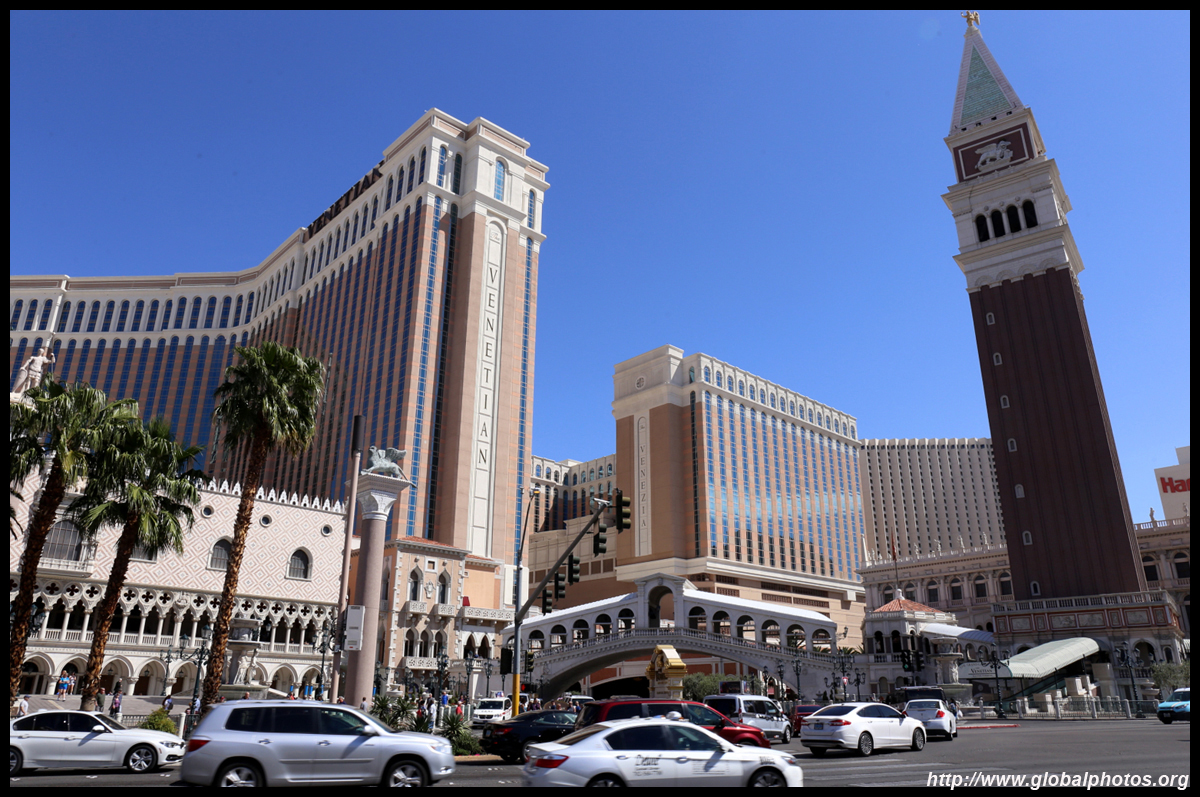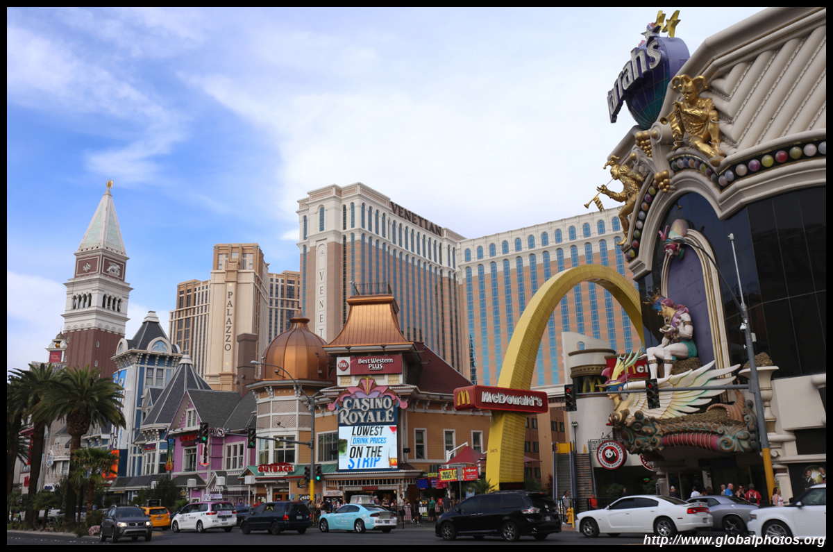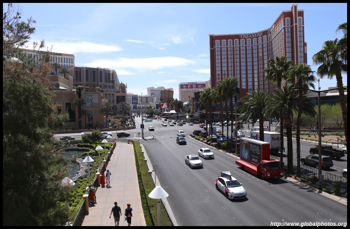 From here southwards, the casino resorts cluster more closely, and the sidewalks start to get quite busy. Traffic jams are also common along here during rush hour.