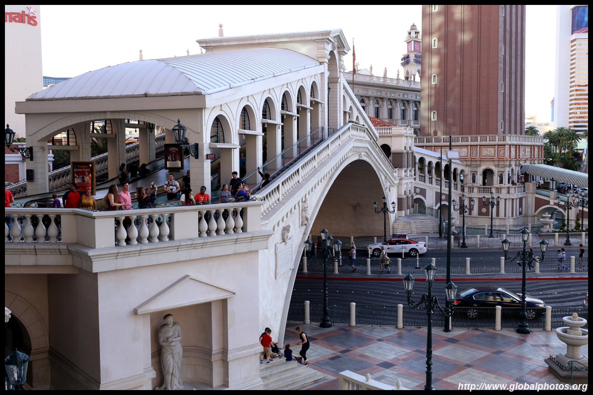 The first casino on the Strip opened in the northern stretches. None of those original casinos remain today, especially in this part of the Strip where an air of modernity radiates. Pedestrian bridges keep pedestrians exiting the Wynn from crossing busy streets to the Fashion Show Mall and the Palazzo next door.