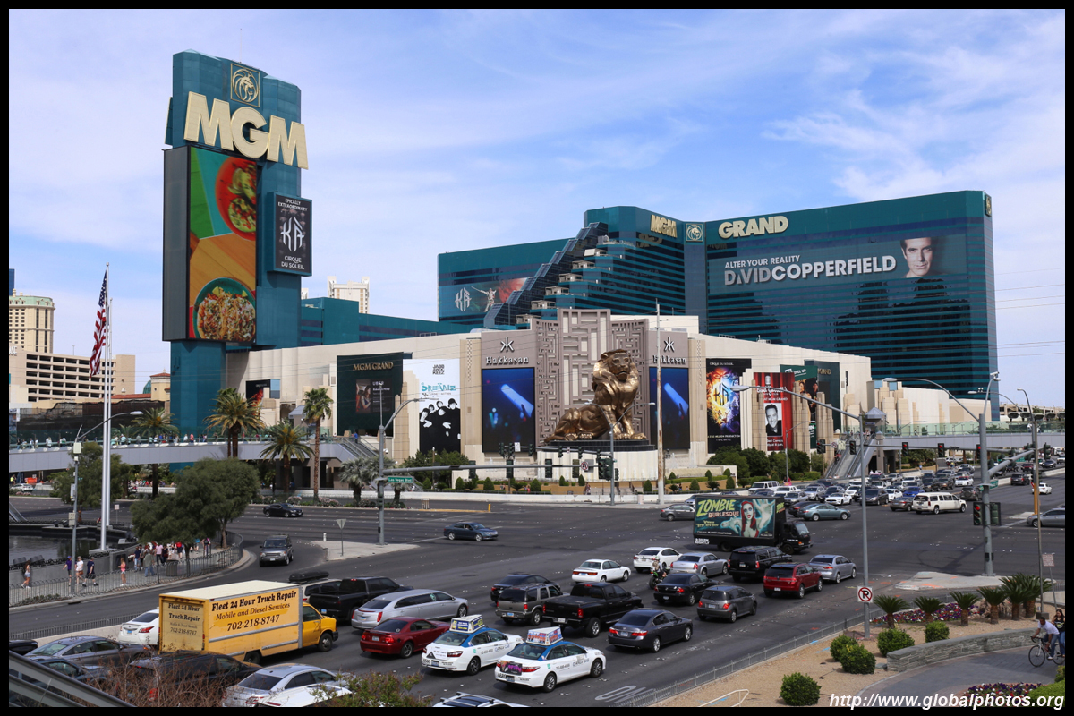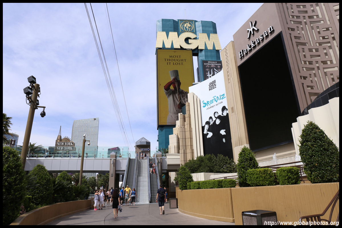 Across yet another pedestrian bridge is the MGM Grand, which has a 15m bronze lion that looks like it jumped out of a Hollywood film. This hotel has over 5000 rooms.
