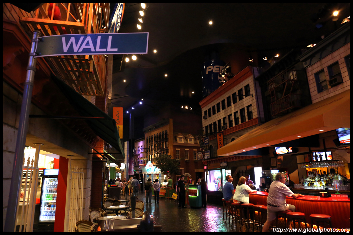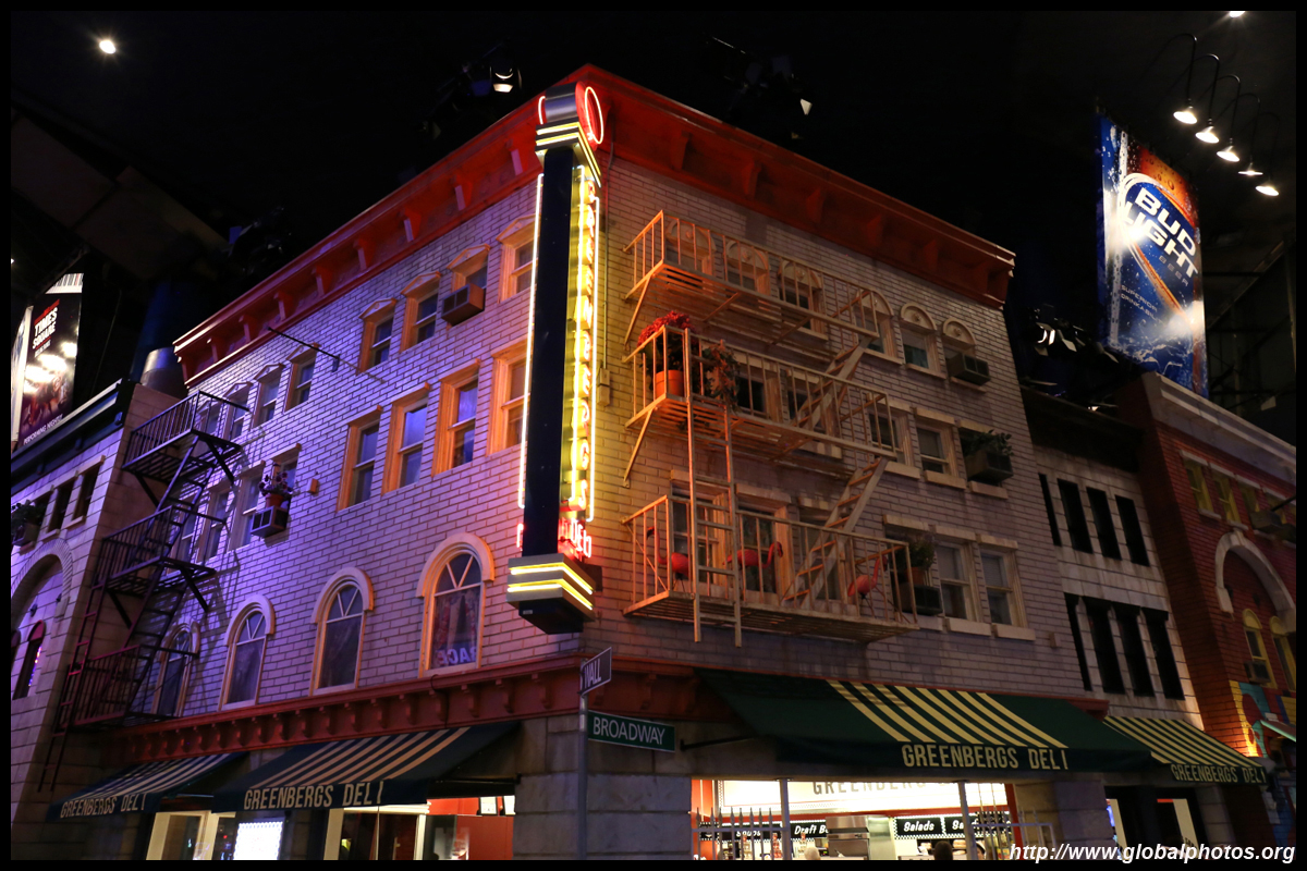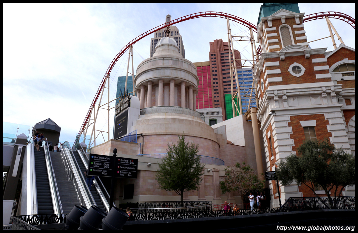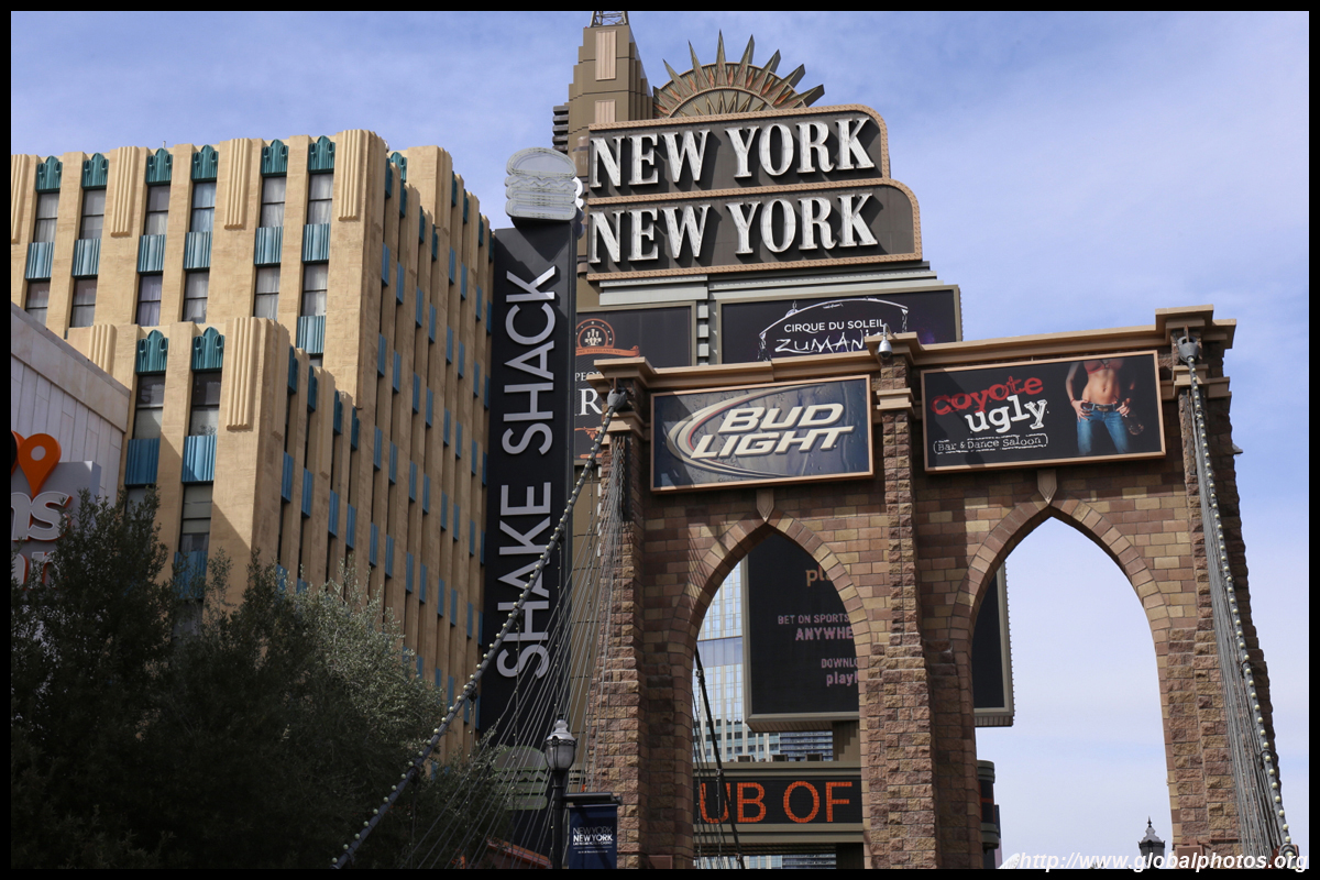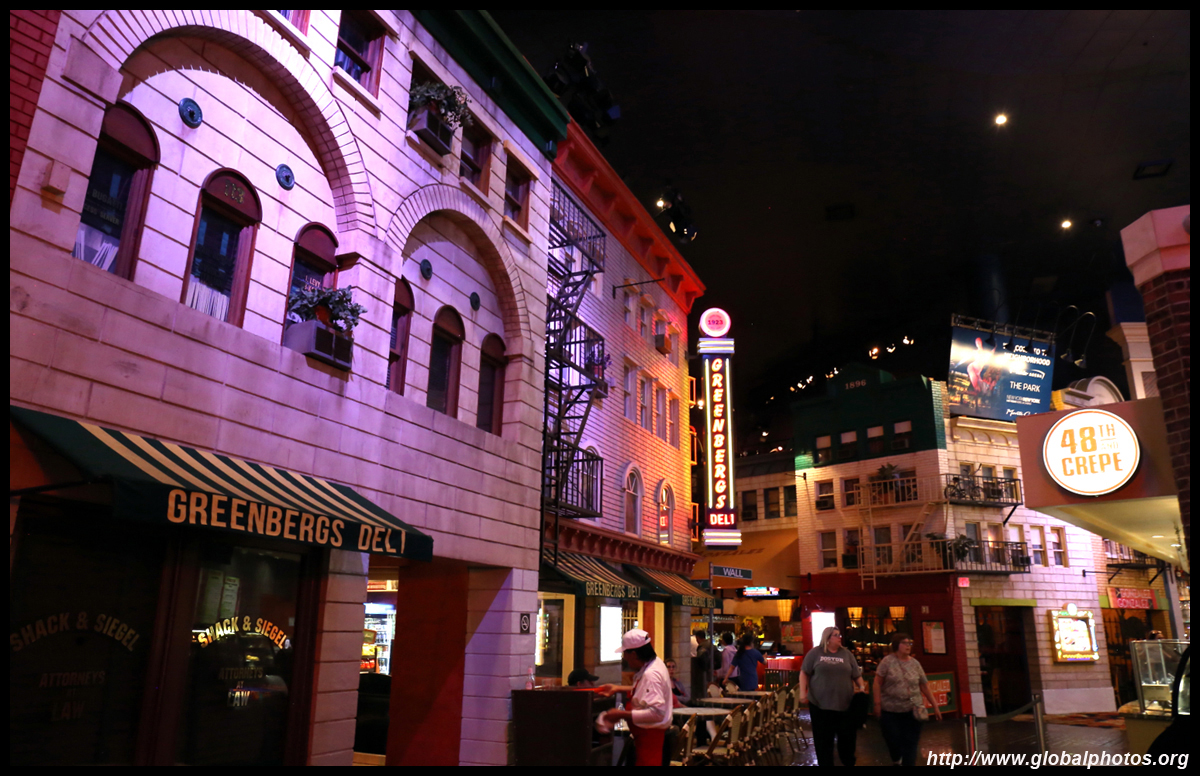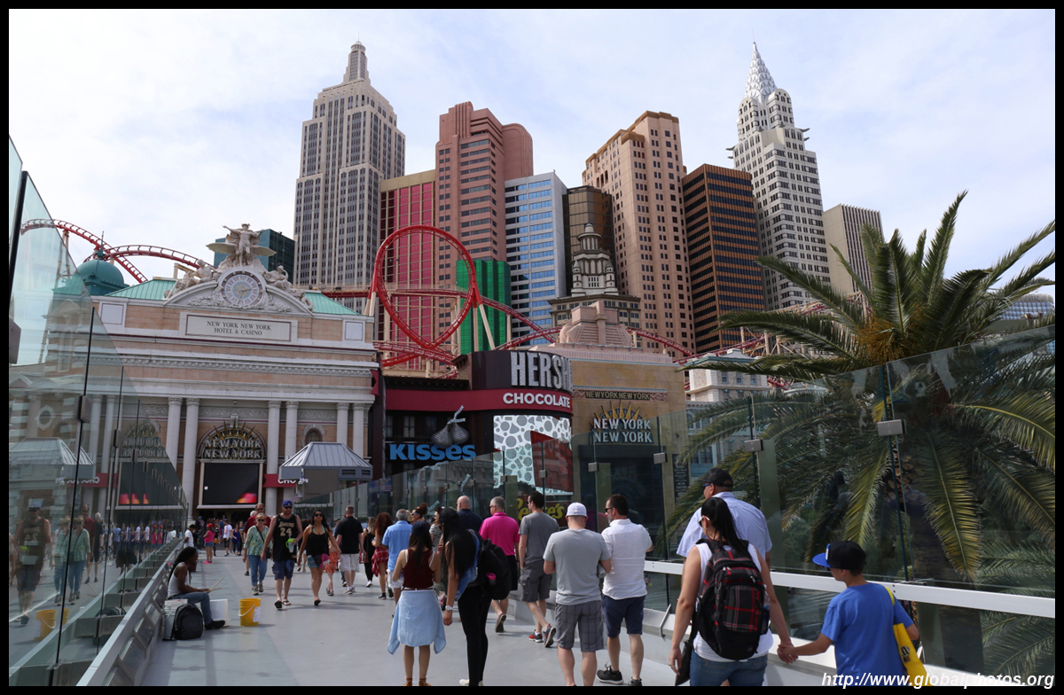 Across the pedestrian bridge, New York New York re-creates part of Manhattan's skyline outside, and its storefronts on the street level and also inside.