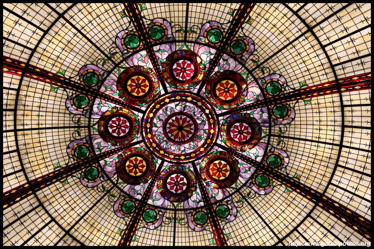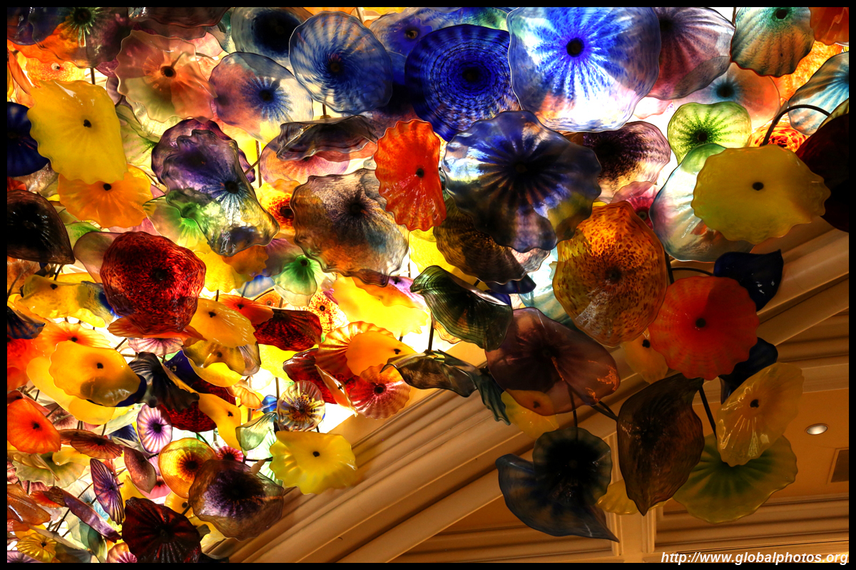 The lobby's ceiling is full of glass flowers by artist Dale Chihuly.