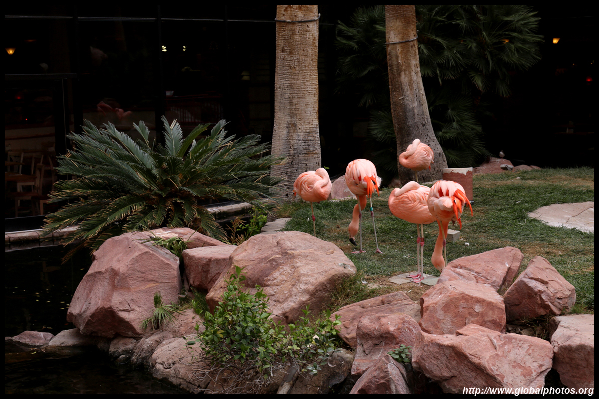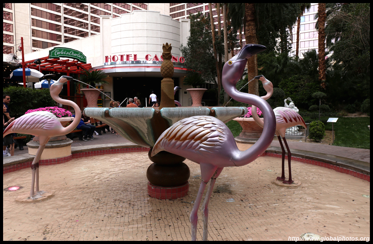 Flamingo lives up to the pink theme outside and also in its courtyard with real flamingos. The original buildings were destroyed as part of the 1996 renovation.