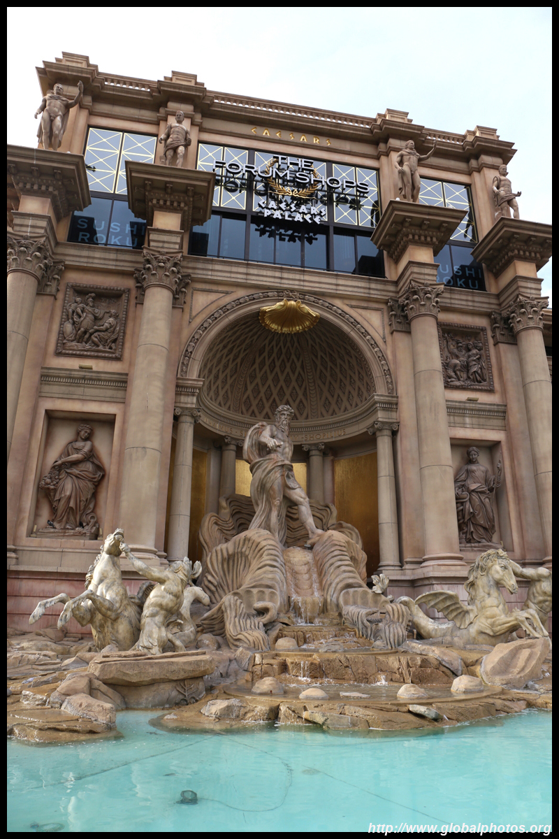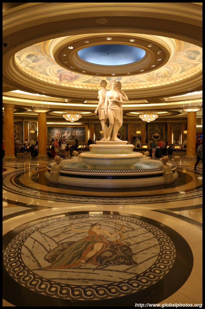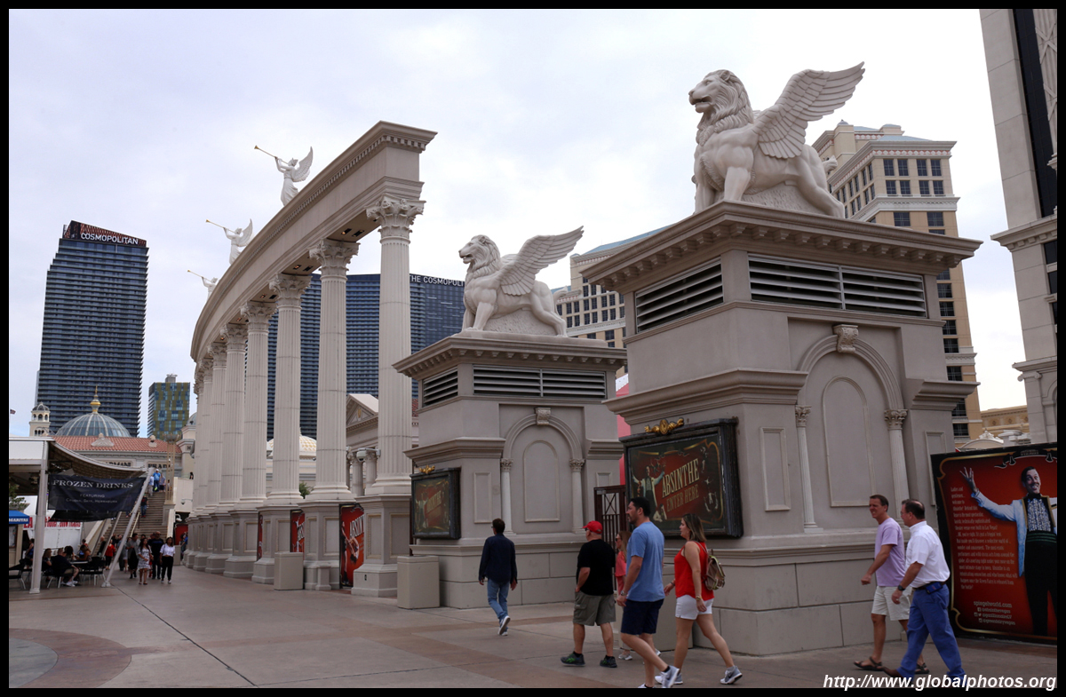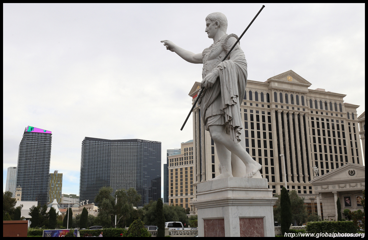 Across the street, Caesars Palace is adorned with marble statues and Roman extravagance.
