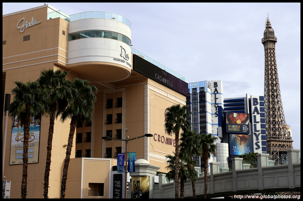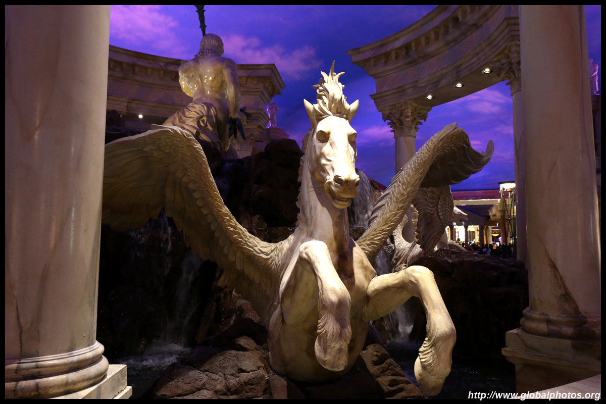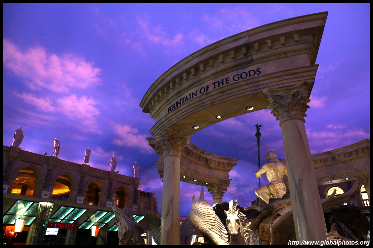 Across the street, Caesars Palace is adorned with marble statues and Roman extravagance.
