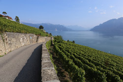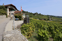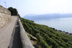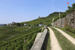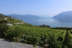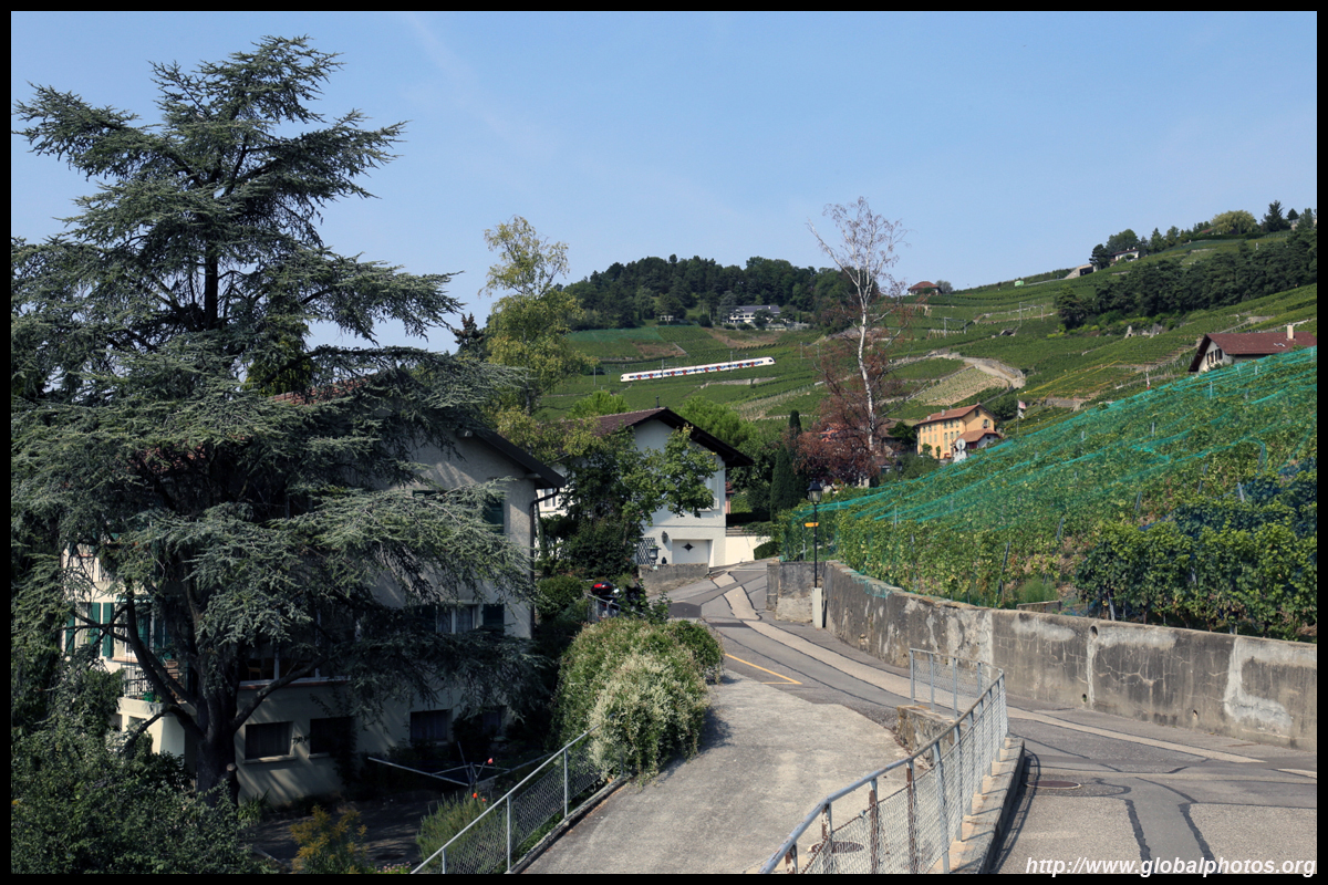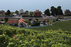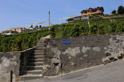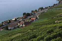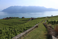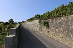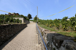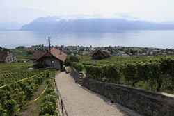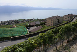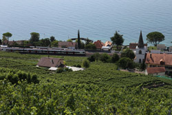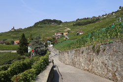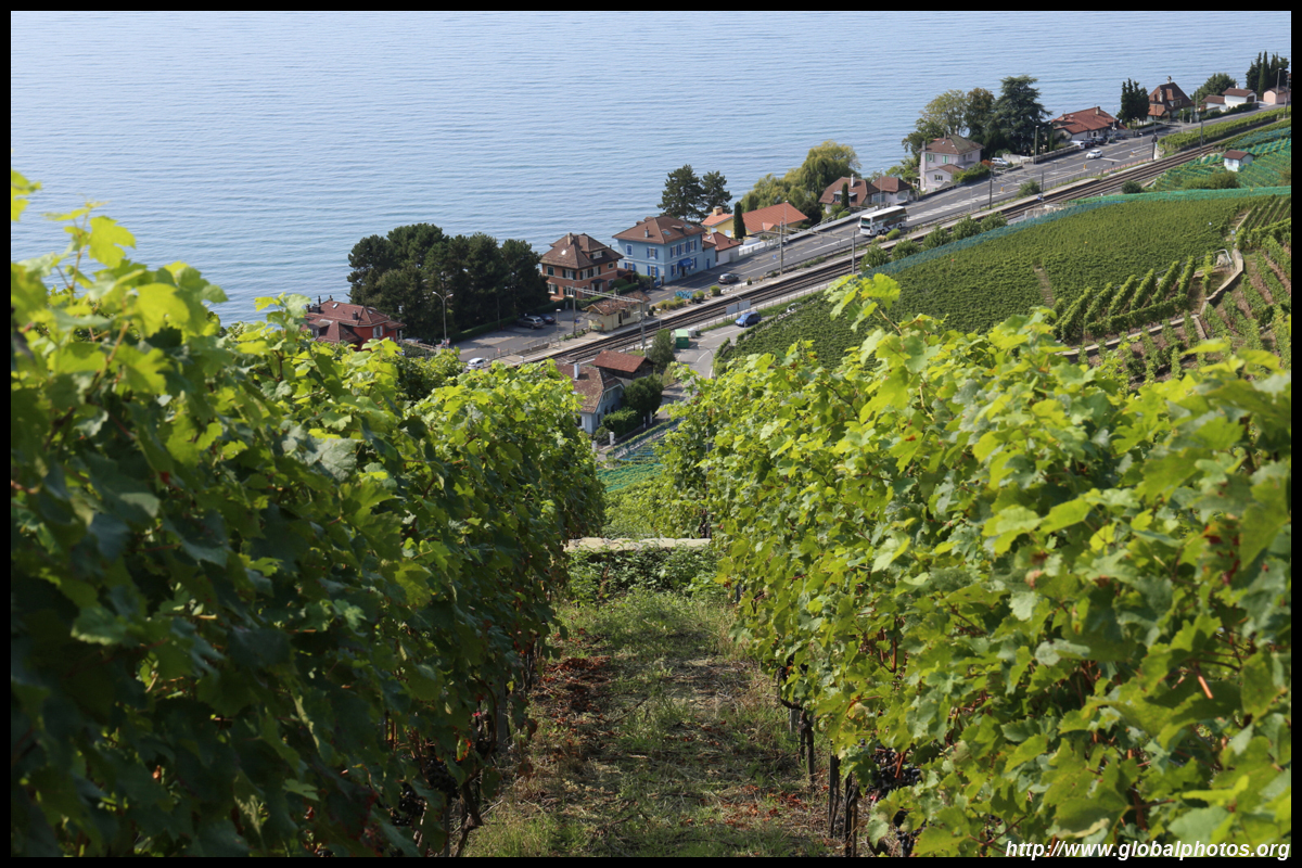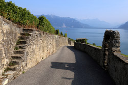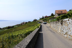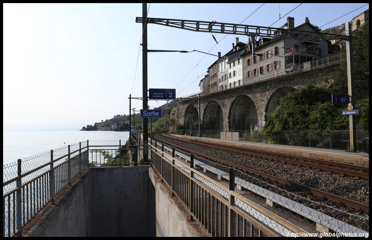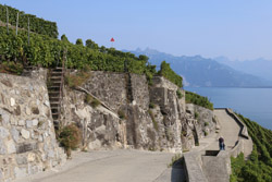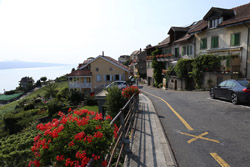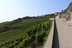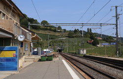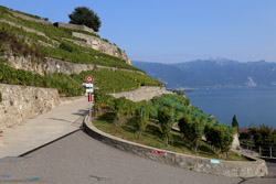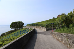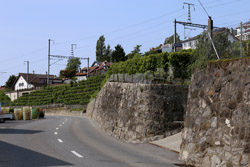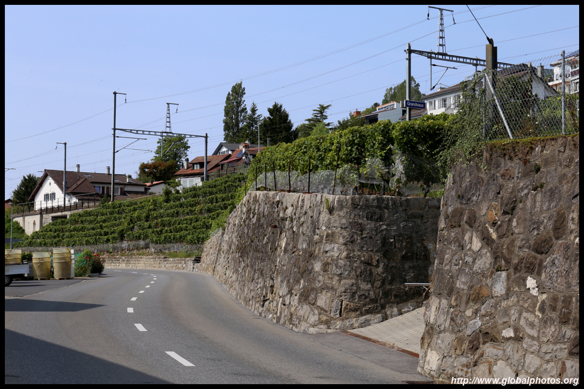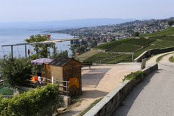 The downhill descent into St-Saphorin was quite comfortable and there are many paved paths along the vineyards. With wonderful mountain and lake views all the way, pick a path and just head downhill. You can't get lost as long as you head downhill keeping an eye on the next town. The railway line runs along the coast with many stops along the way, although it might be a long wait for the next service.