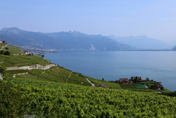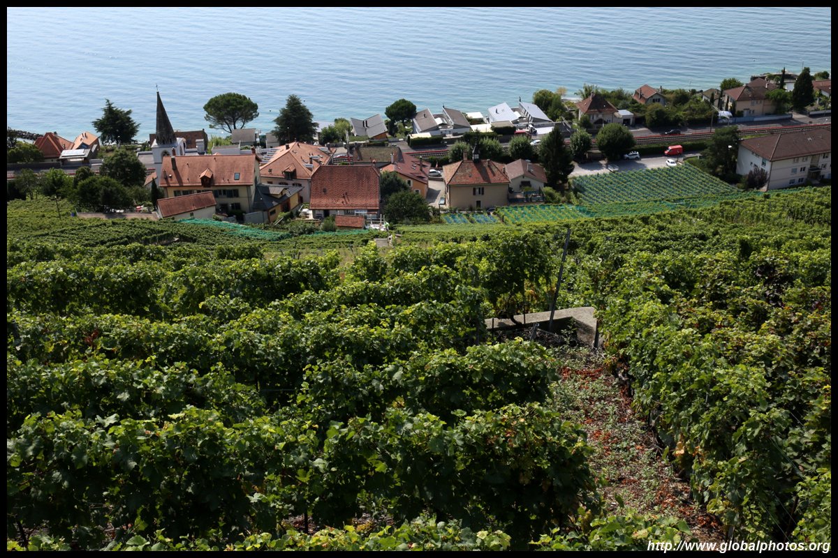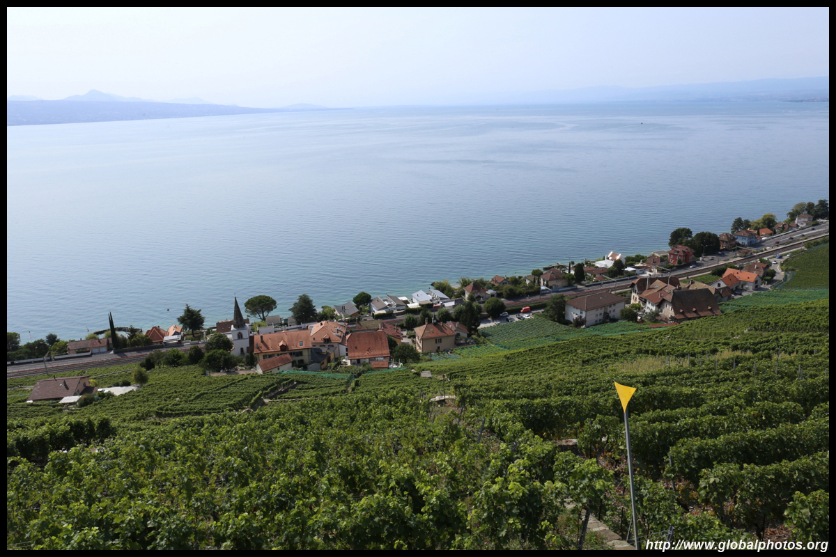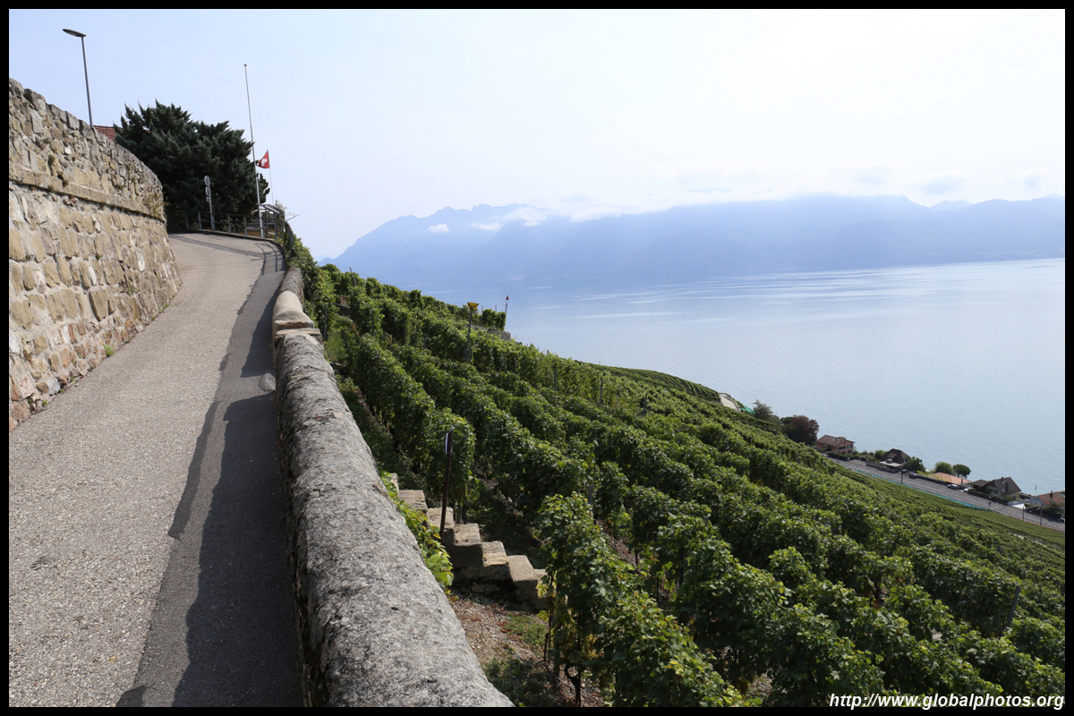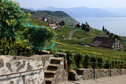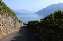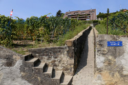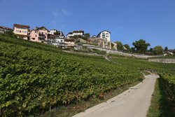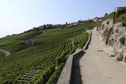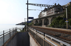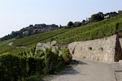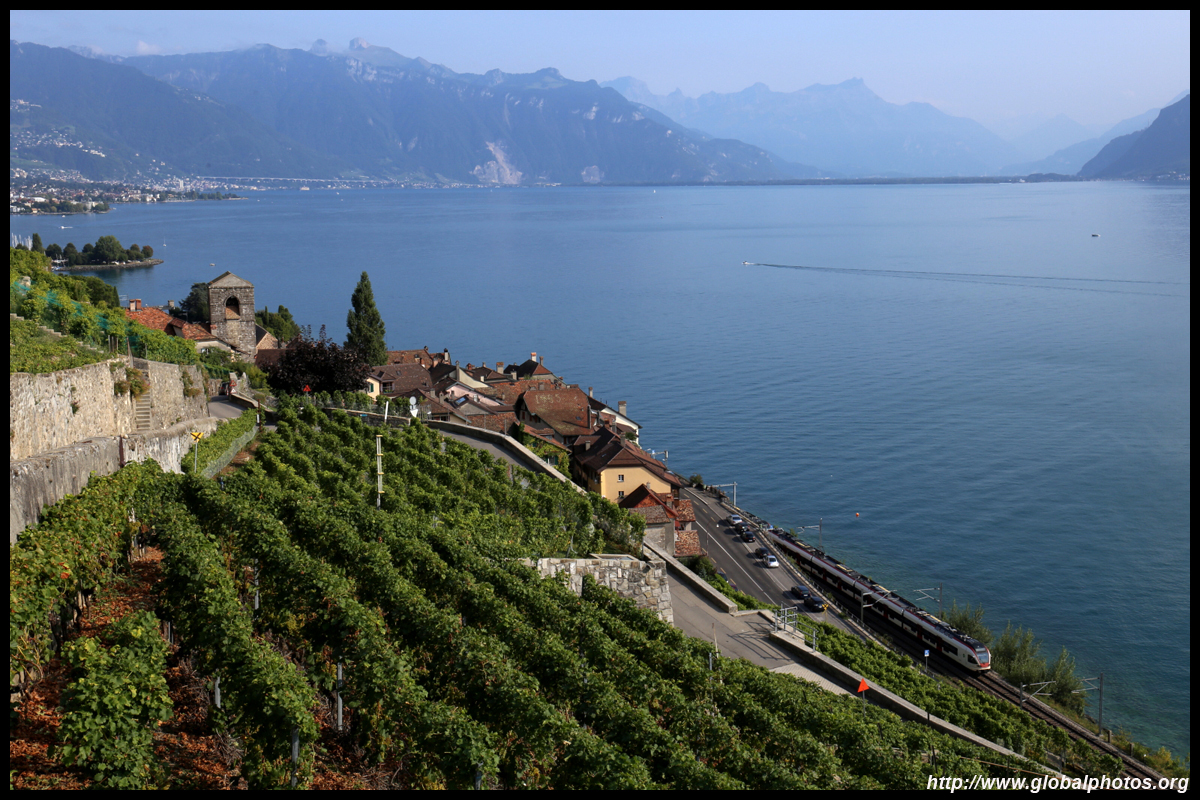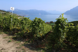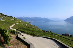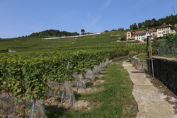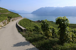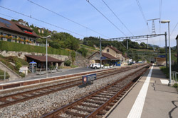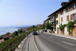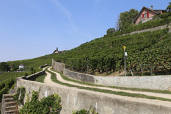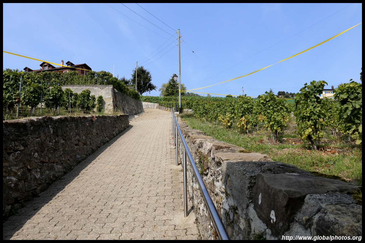 The downhill descent into St-Saphorin was quite comfortable and there are many paved paths along the vineyards. With wonderful mountain and lake views all the way, pick a path and just head downhill. You can't get lost as long as you head downhill keeping an eye on the next town. The railway line runs along the coast with many stops along the way, although it might be a long wait for the next service.