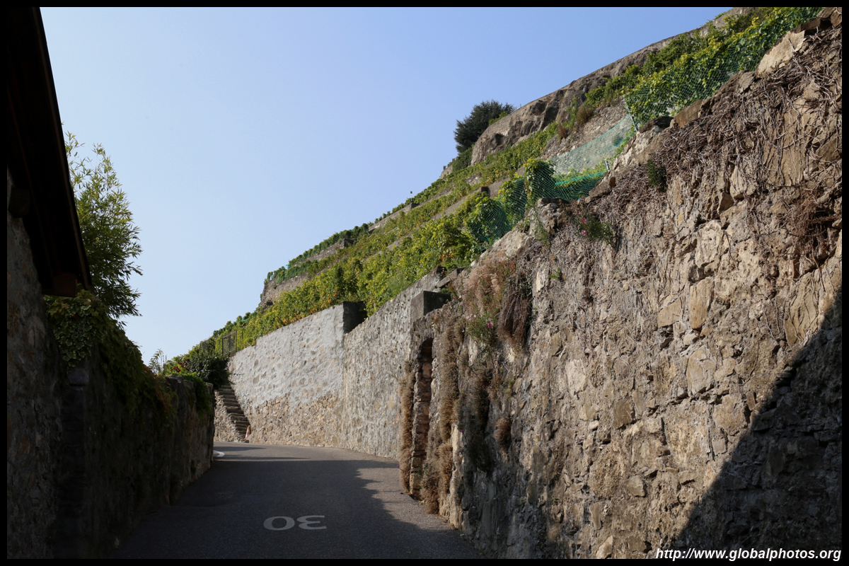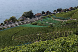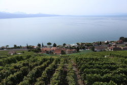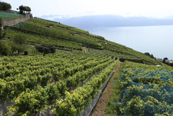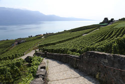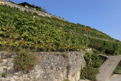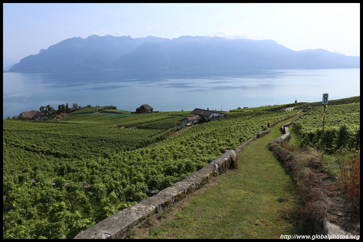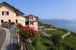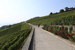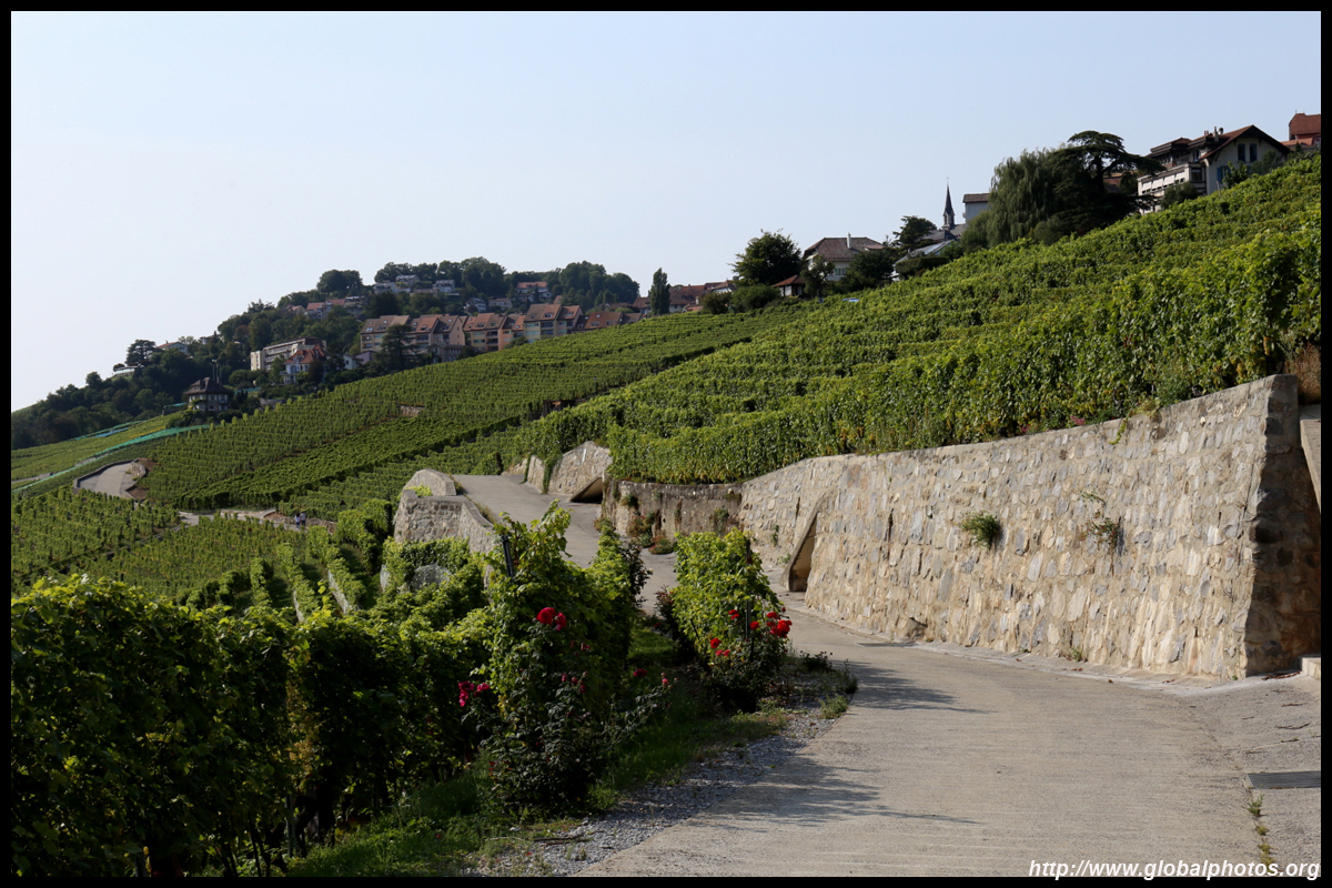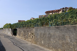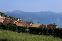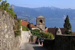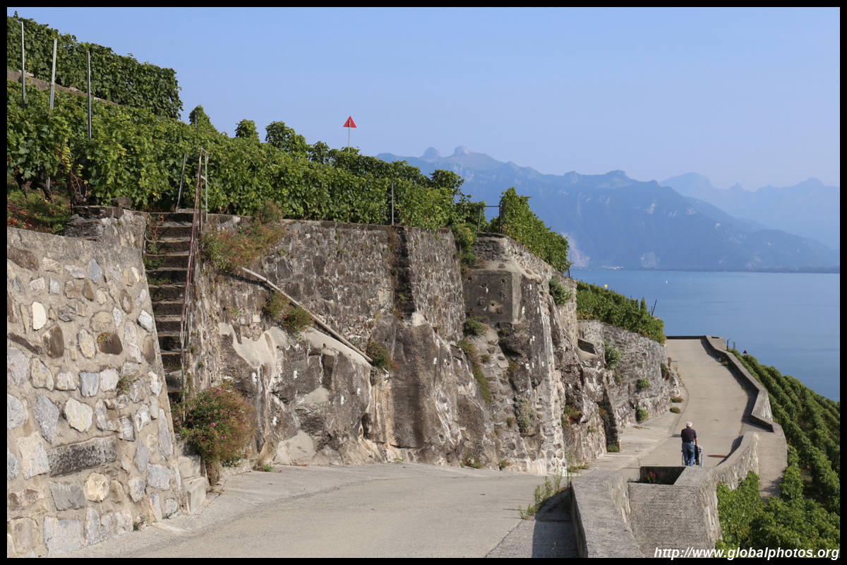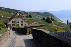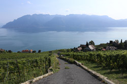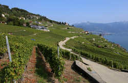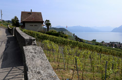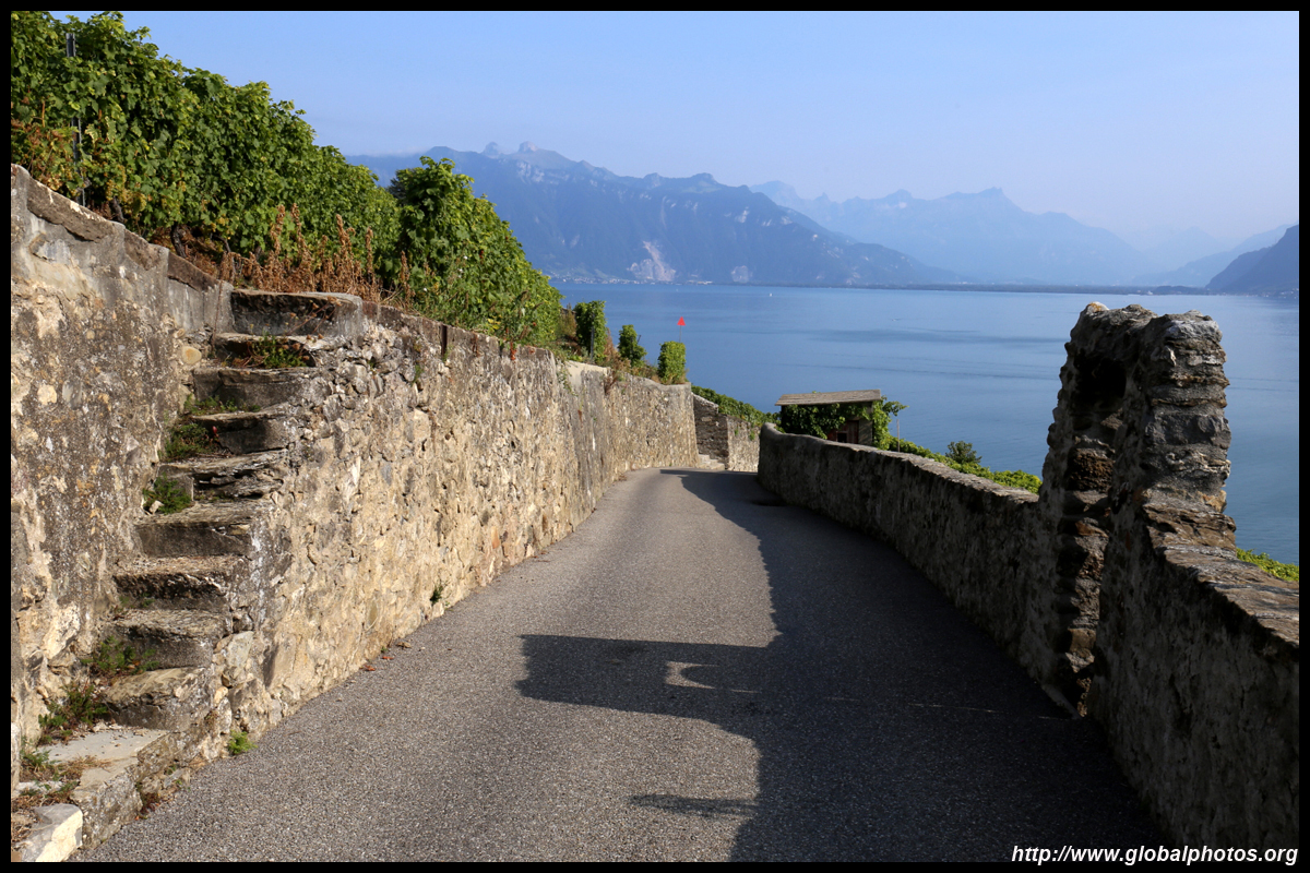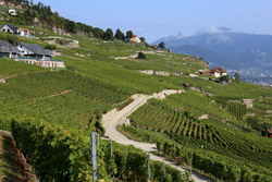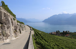 The downhill descent into St-Saphorin was quite comfortable and there are many paved paths along the vineyards. With wonderful mountain and lake views all the way, pick a path and just head downhill. You can't get lost as long as you head downhill keeping an eye on the next town. The railway line runs along the coast with many stops along the way, although it might be a long wait for the next service.