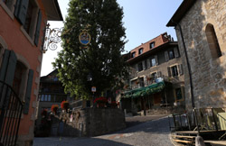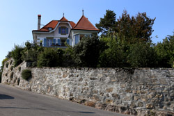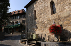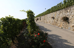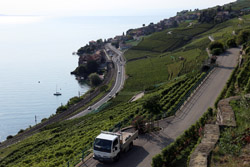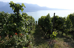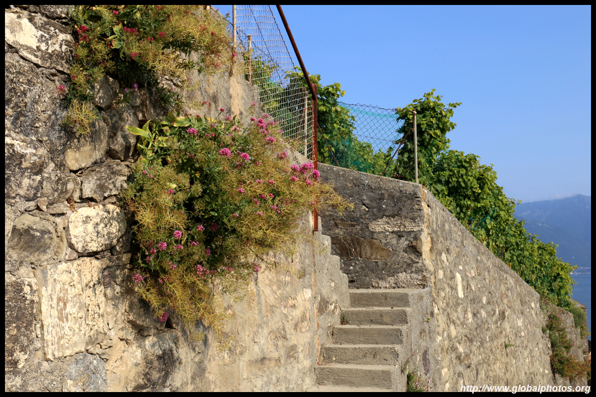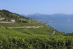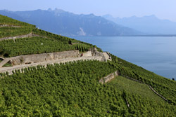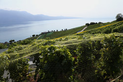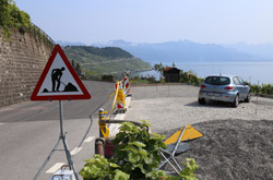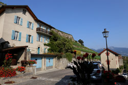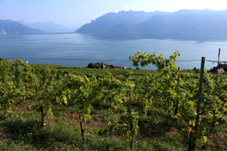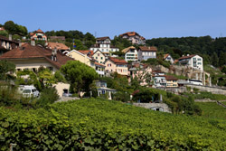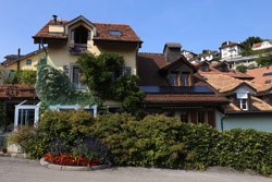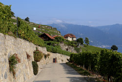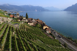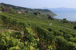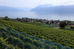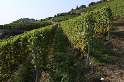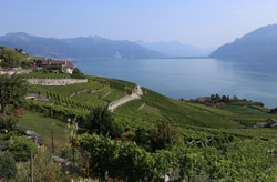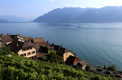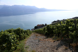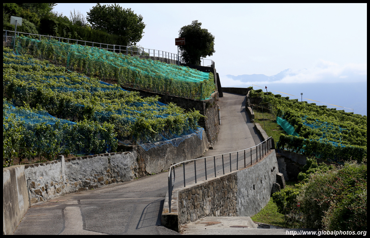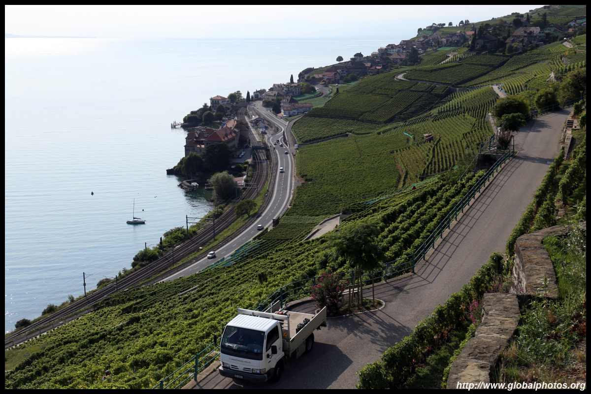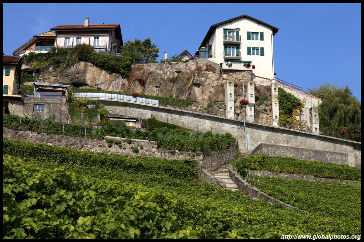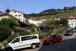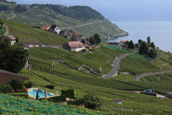 The downhill descent into St-Saphorin was quite comfortable and there are many paved paths along the vineyards. With wonderful mountain and lake views all the way, pick a path and just head downhill. You can't get lost as long as you head downhill keeping an eye on the next town. The railway line runs along the coast with many stops along the way, although it might be a long wait for the next service.