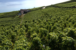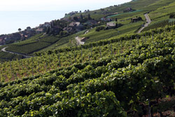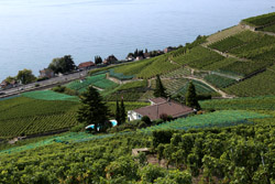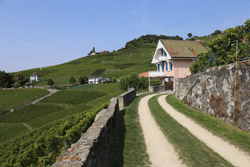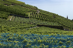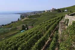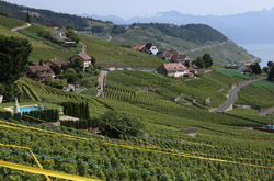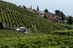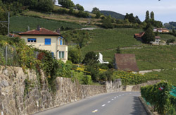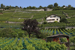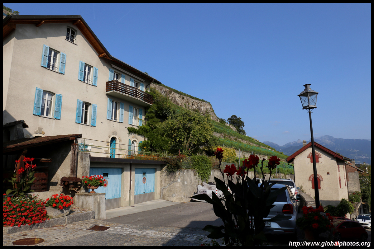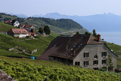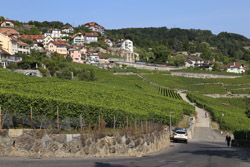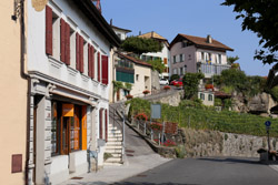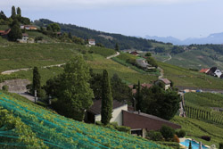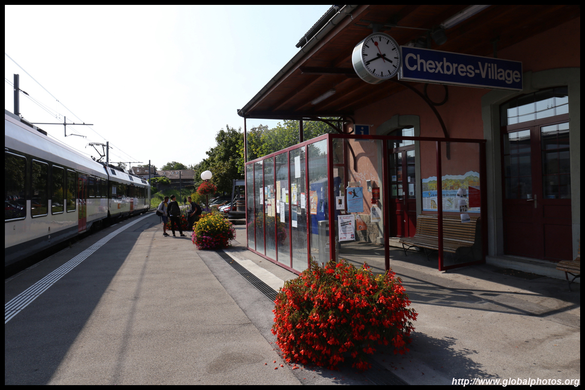 Trains don't run very frequently along these rail lines. Next stop is Chexbres-Village, which has even more vineyard terraces stretching along the hillsides.