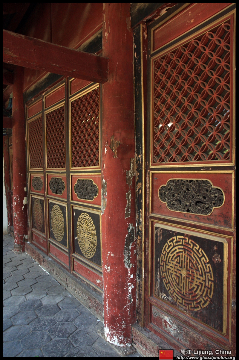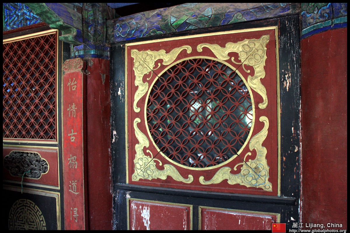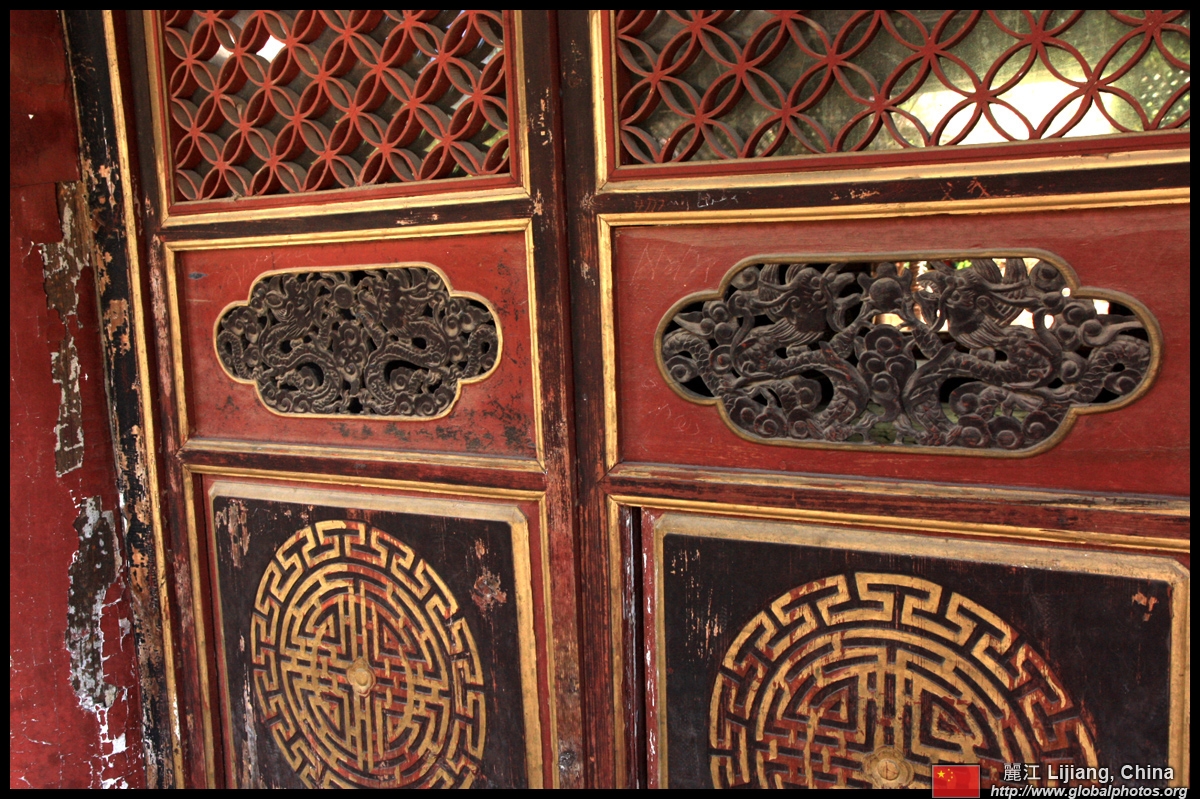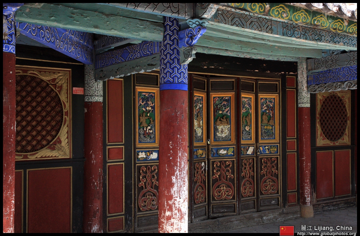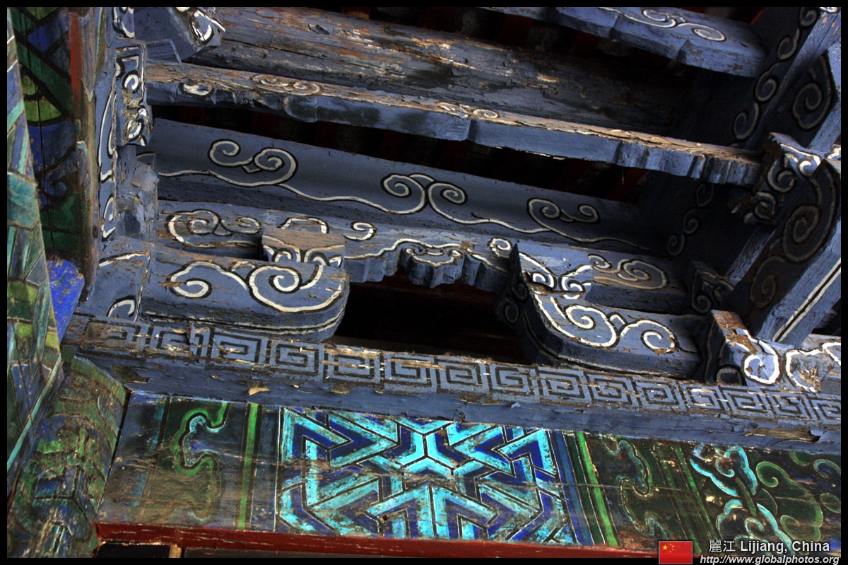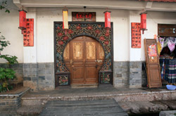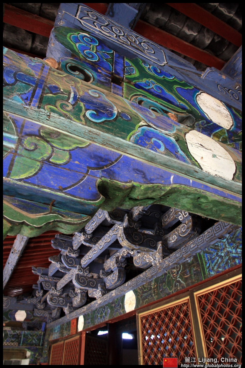 Baisha is famous for its temple frescoes from the Ming and Qing Dynasties. Since photos are not allowed inside the main temple, the frescoes are reproduced on display as an exhibit. The frescoes are influenced by Naxi, Tibetan, Bai, and Han artists to symbolize harmony among the different groups and religions.