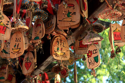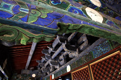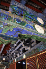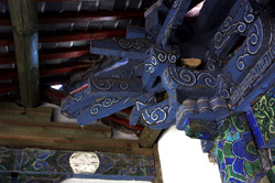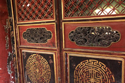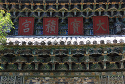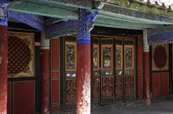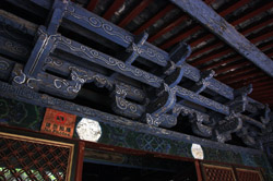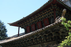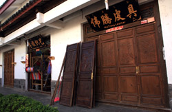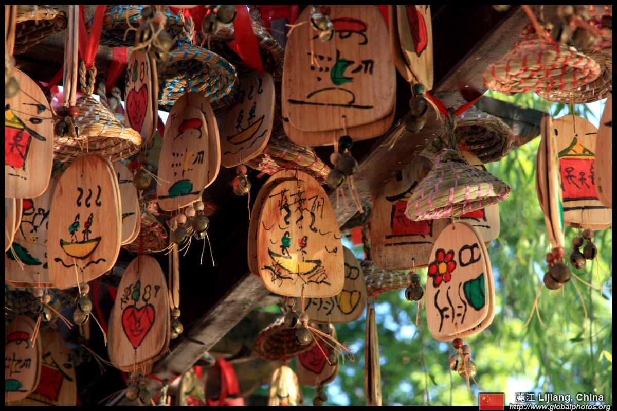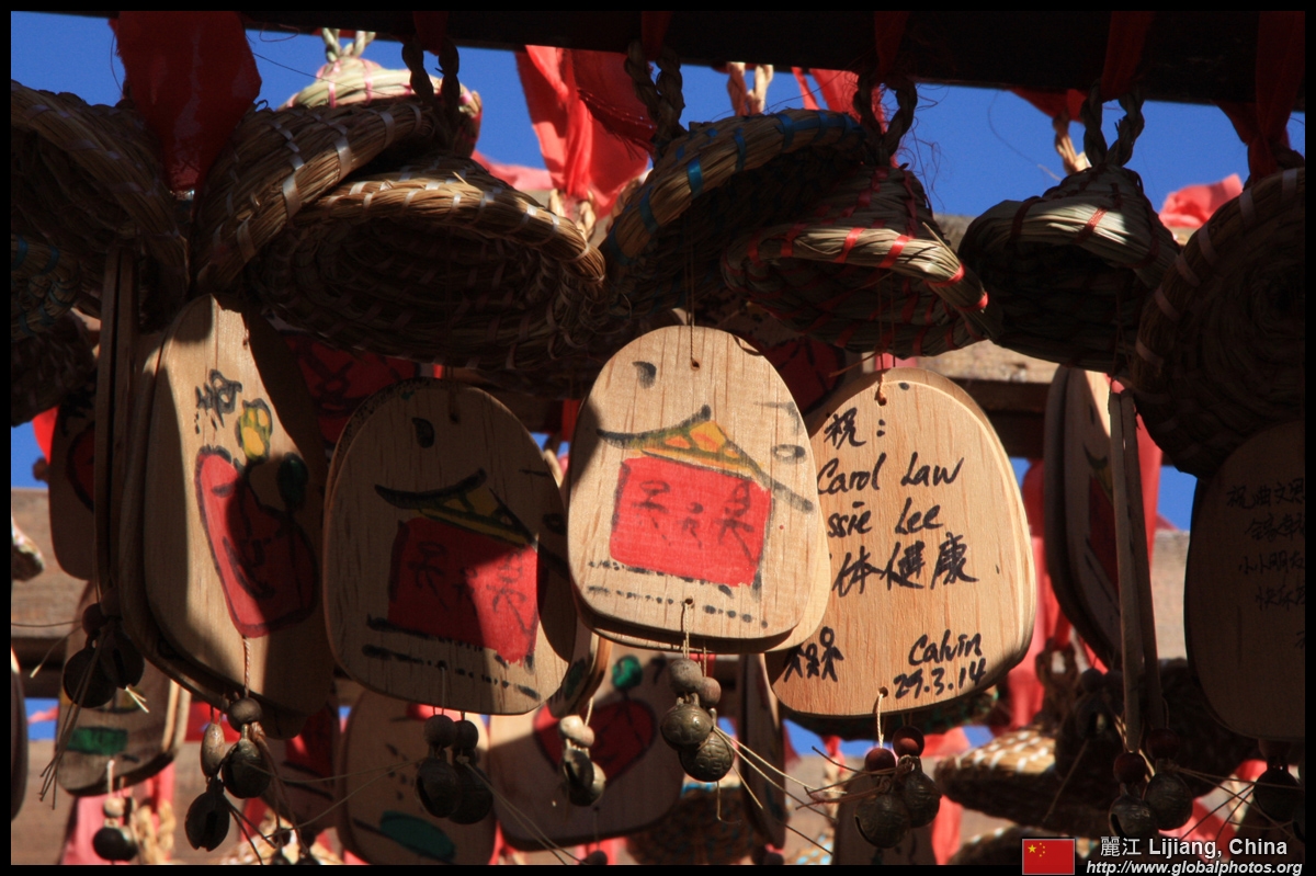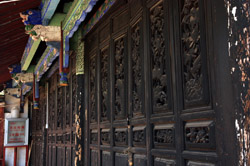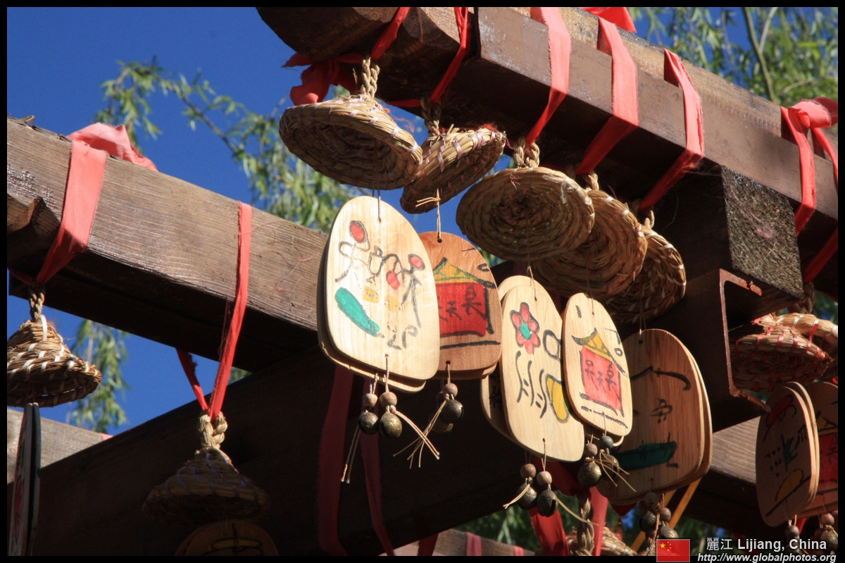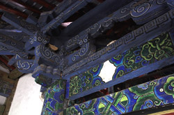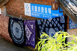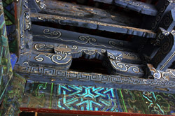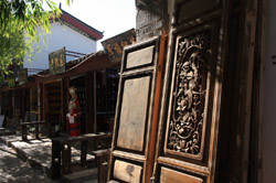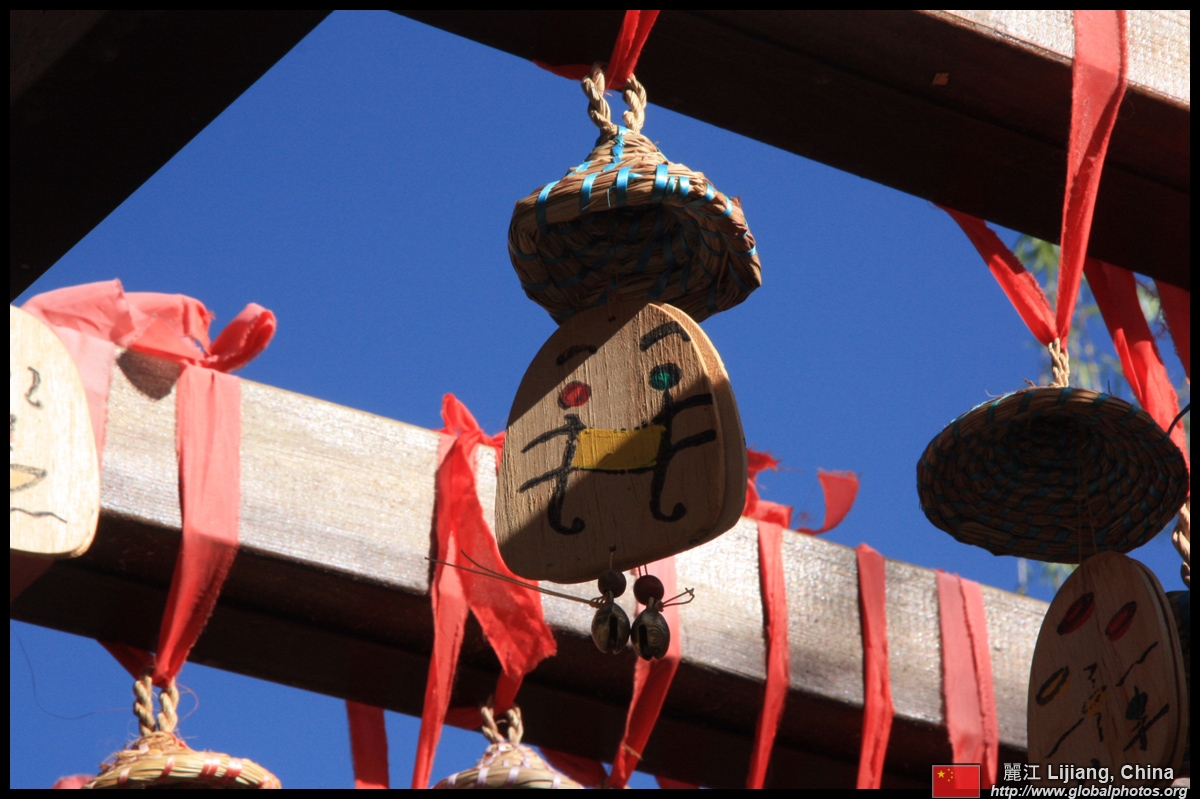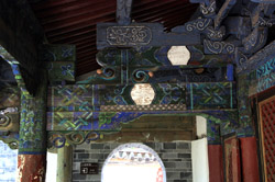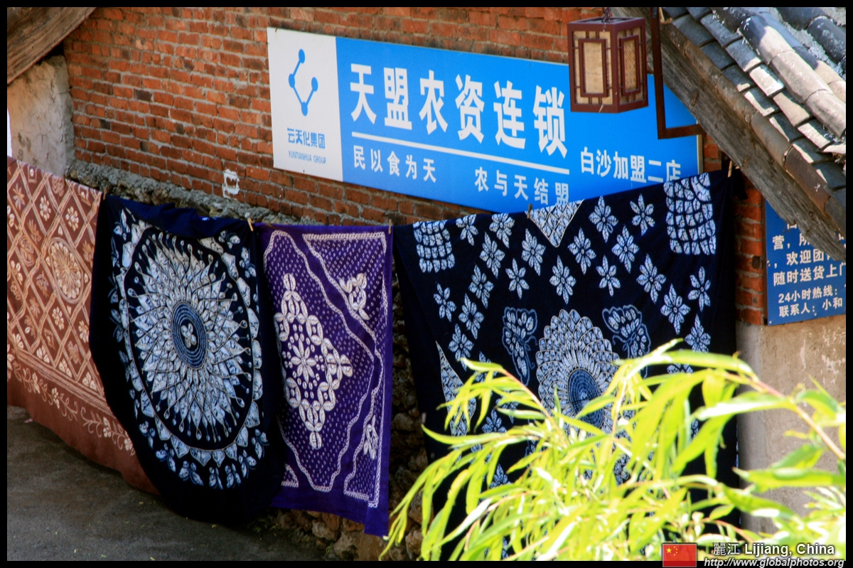 Baisha is famous for its temple frescoes from the Ming and Qing Dynasties. Since photos are not allowed inside the main temple, the frescoes are reproduced on display as an exhibit. The frescoes are influenced by Naxi, Tibetan, Bai, and Han artists to symbolize harmony among the different groups and religions.