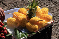 The tourists have not waken up yet, but the locals were already out grocery shopping.