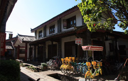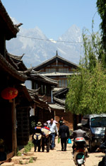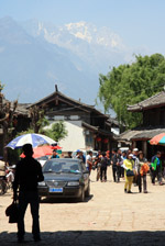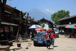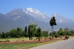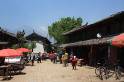 Rent a bike and ride north towards Baisha, a small town near the Jade Dragon Snow Mountain. You share the road with cars and trucks, so be careful!